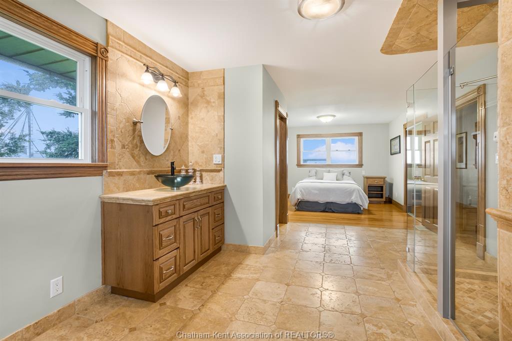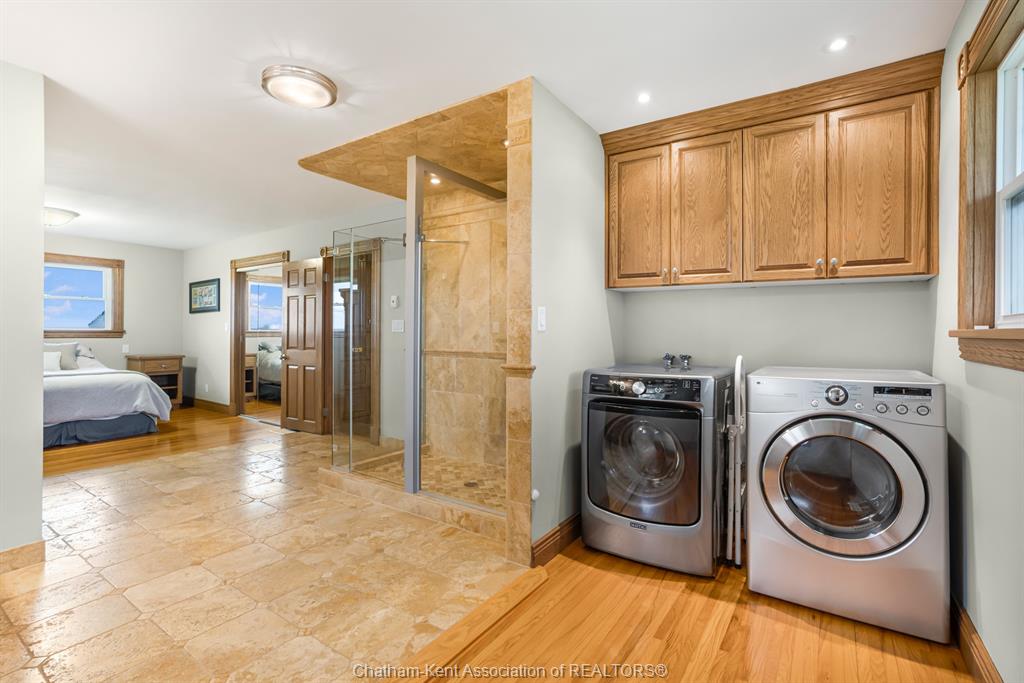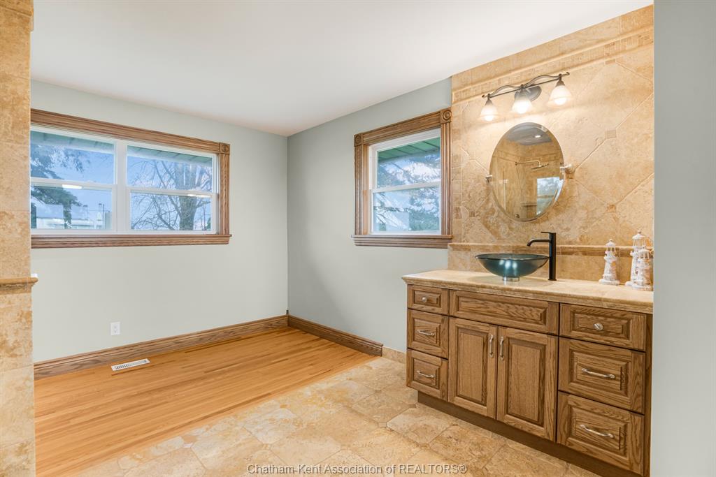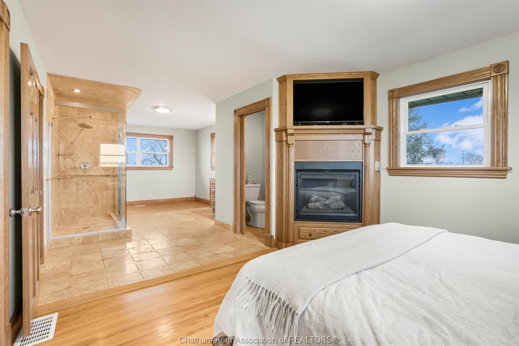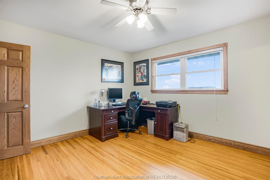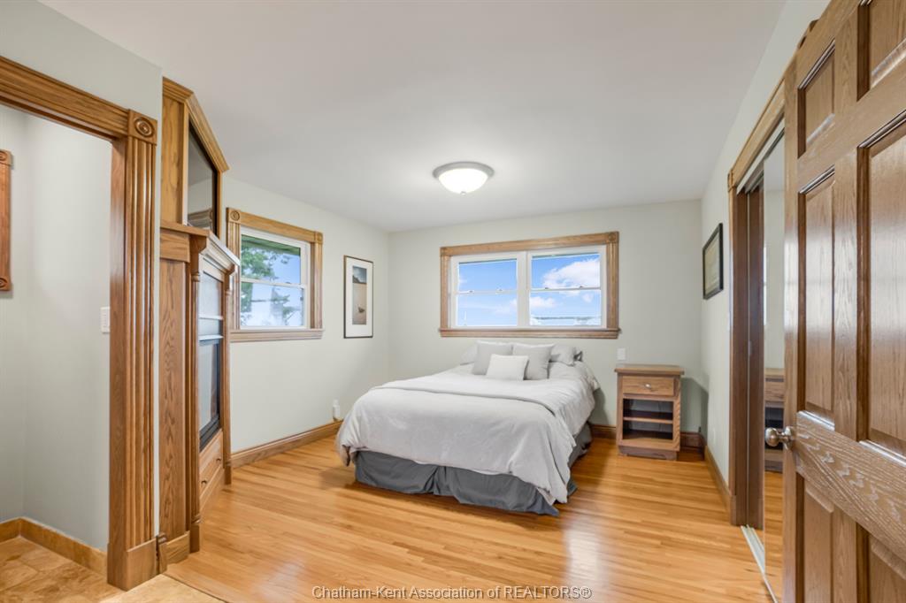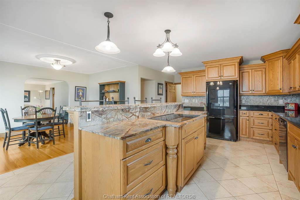 Situated on 1. 4 acres backing onto a creek, the property offers bonus solar income, wildlife, and room to garden or let kids explore. This 3 bedroom, 2 bathroom, well-built brick home is set in the country between wallaceburg and chatham. A spacious kitchen is designed for everyday living and entertaining, complete with a raised countertop that keeps you connected with guests while you cook. This home is exceptionally clean and truly move-in ready from the fridge to the oven, just bring your belongings. You’ll love the main floor laundry, deep closets, and large windows throughout the home, bringing in natural light. The solar panel generates over $14,000 annually in revenue, adding bonus value. A standout feature is the fully insulated garage, equipped with natural gas heating, a hot water heater, water, air conditioning, and automatic openers, ideal for parking, projects, or workspace use. The full unfinished basement provides ample storage and future living space potential, along with a cold cellar under the front steps, perfect for preserving and storage. A solid country property with functional space, income, and room to grow. Fibre optic internet is available.