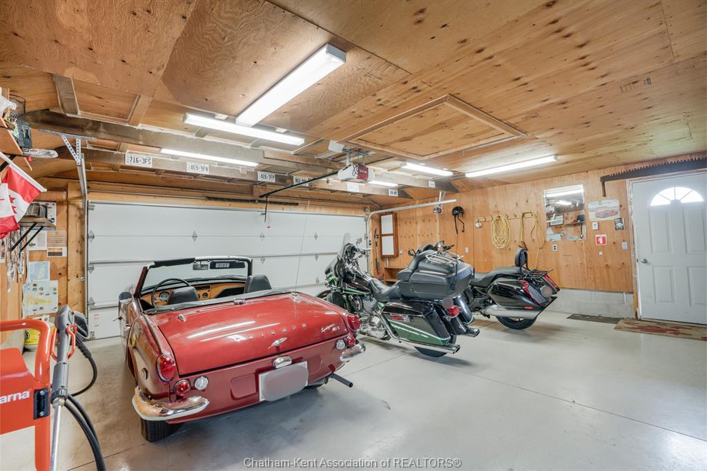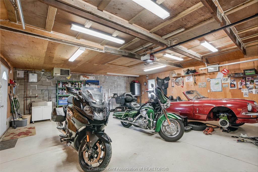 • Insulated garage with heating, air conditioning, and ample workspace.
