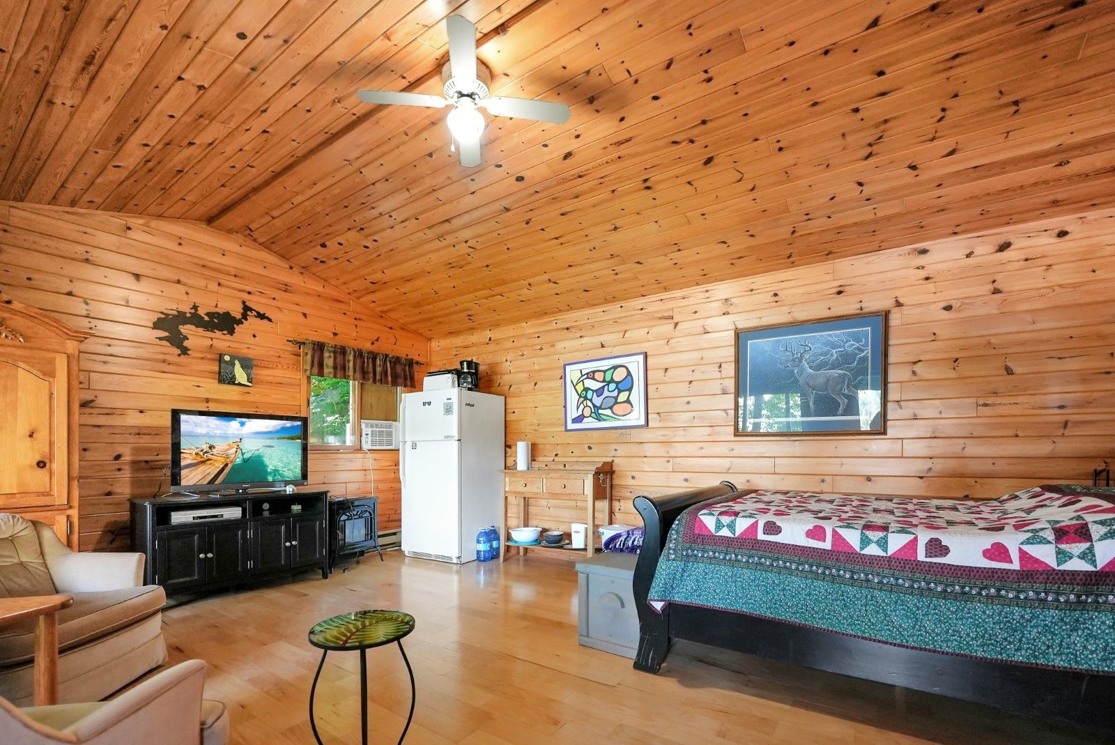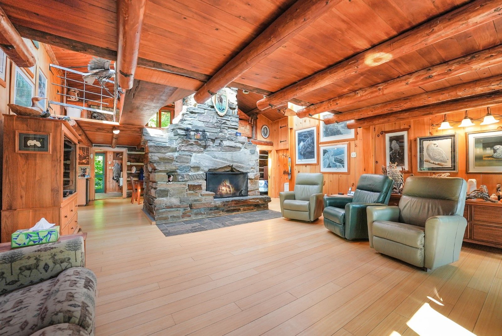 Welcome to "boomstick" - a truly iconic property set along the pristine shores of kennisis lake. Originally built as a historic hunt camp by the owners of haliburton forest, this one-of-a-kind retreat blends rich heritage with thoughtful modern updates, creating a lakeside experience unlike any other. Boasting an impressive 546 feet of sandy waterfront and coveted southwesterly exposure, you'll enjoy all-day sun and unforgettable sunset views stretching across the lake. The main residence offers five bedrooms and two bathrooms, where warm bamboo flooring, custom marquetry cabinetry, and a striking double-sided stone fireplace create a space that is both inviting and full of character. Designed for year-round comfort, the home is equipped with a generac backup system and a new furnace for added peace of mind. Set on 1. 98 acres-with the rare opportunity to acquire an additional 69. 5 acres across the road-this property is a private natural playground. Winding trails, curated outdoor art, and serene forested surroundings make every corner feel intentional and inspiring. A private boat launch provides effortless access to kennisis lake, while the property's outbuildings elevate both function and recreation. These include a 16' x 32' insulated workshop, a 320 sq ft bunkie with composting toilet, and a spacious garage reimagined as an indoor pickleball court with second-level storage. "boomstick" is more than a property-it's a legacy retreat, offering an extraordinary blend of history, privacy, and lakeside living in the heart of haliburton county.
