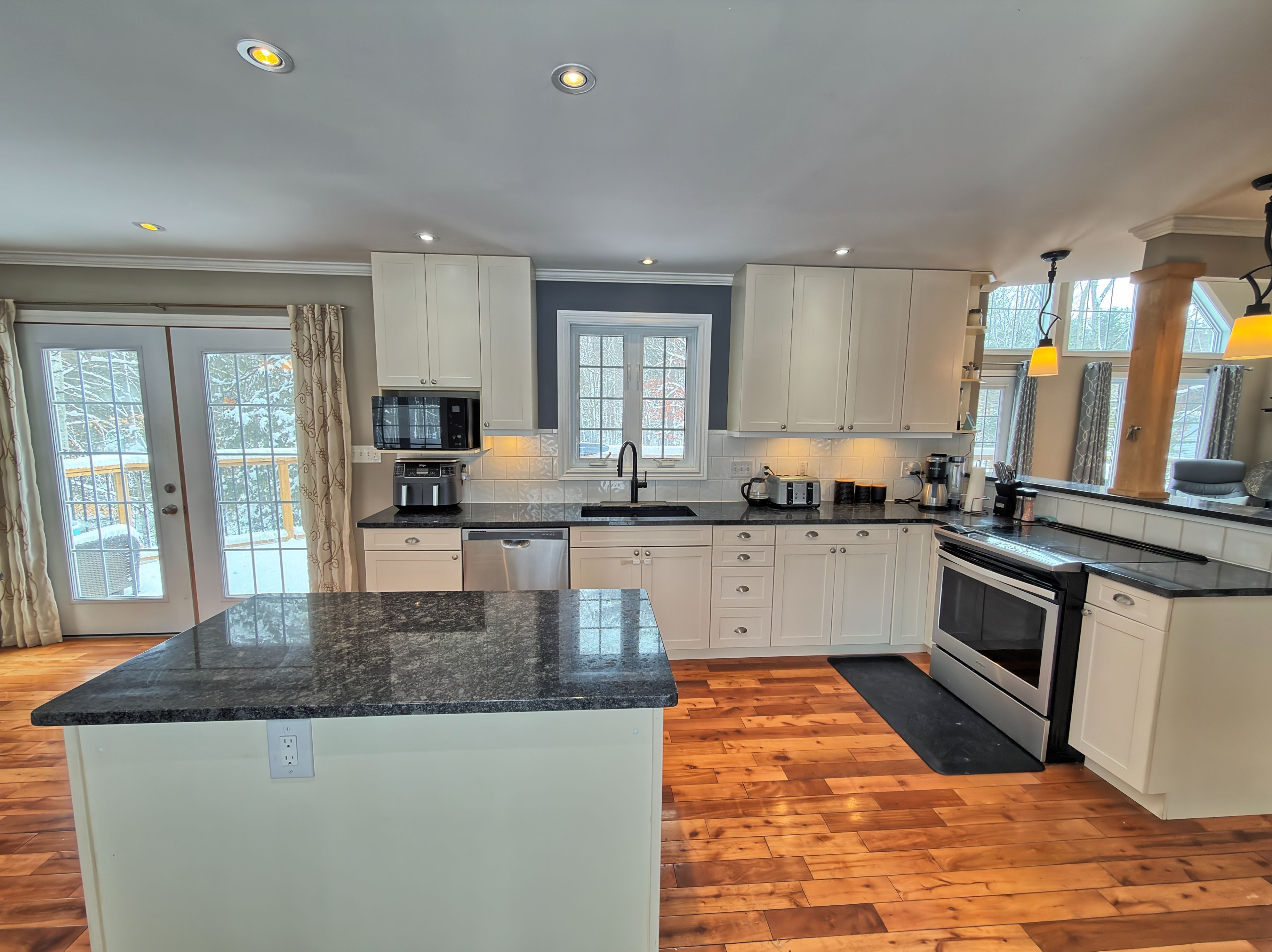• Spacious kitchen with granite countertops, breakfast bar, and multiple walk-outs.