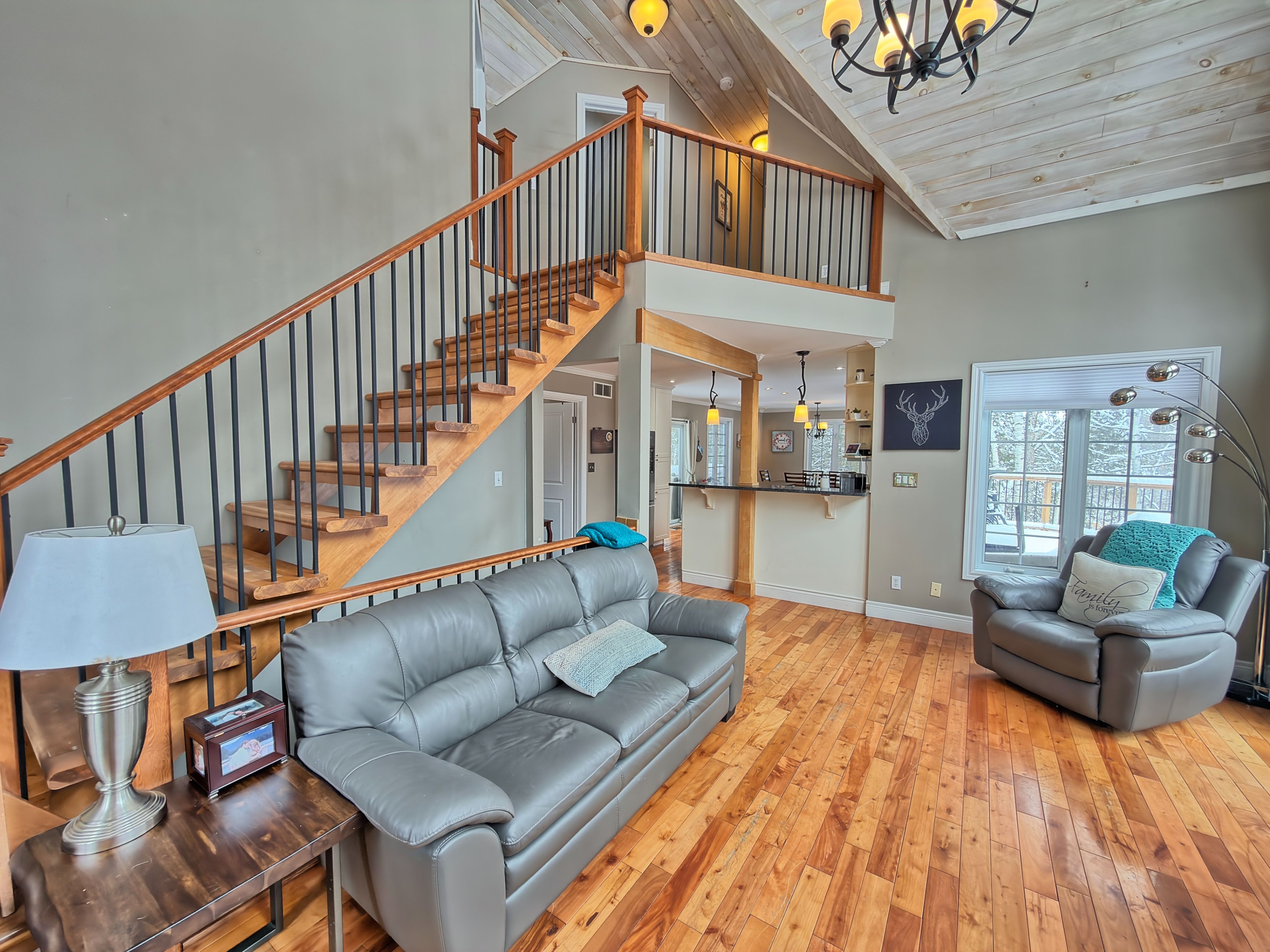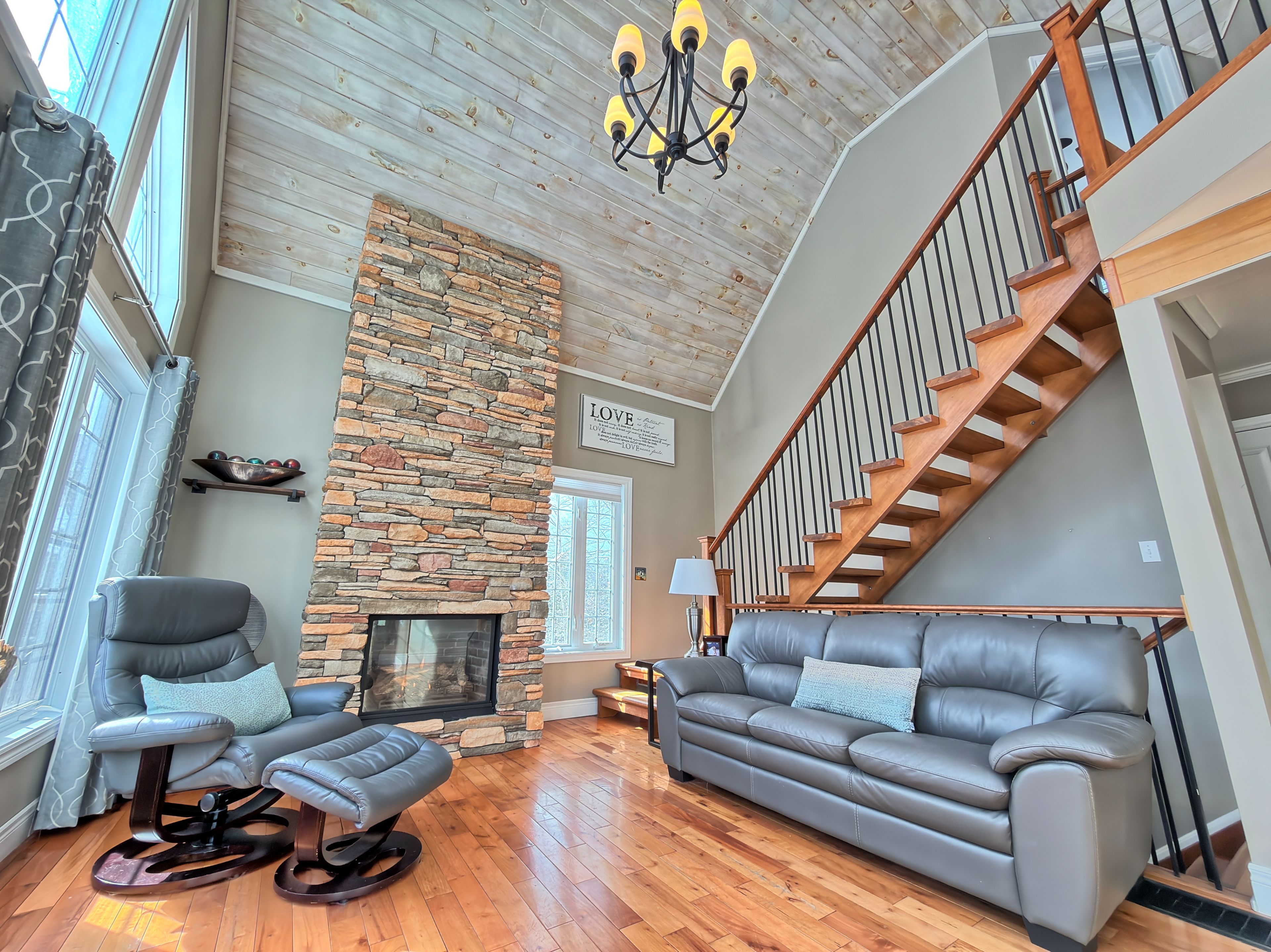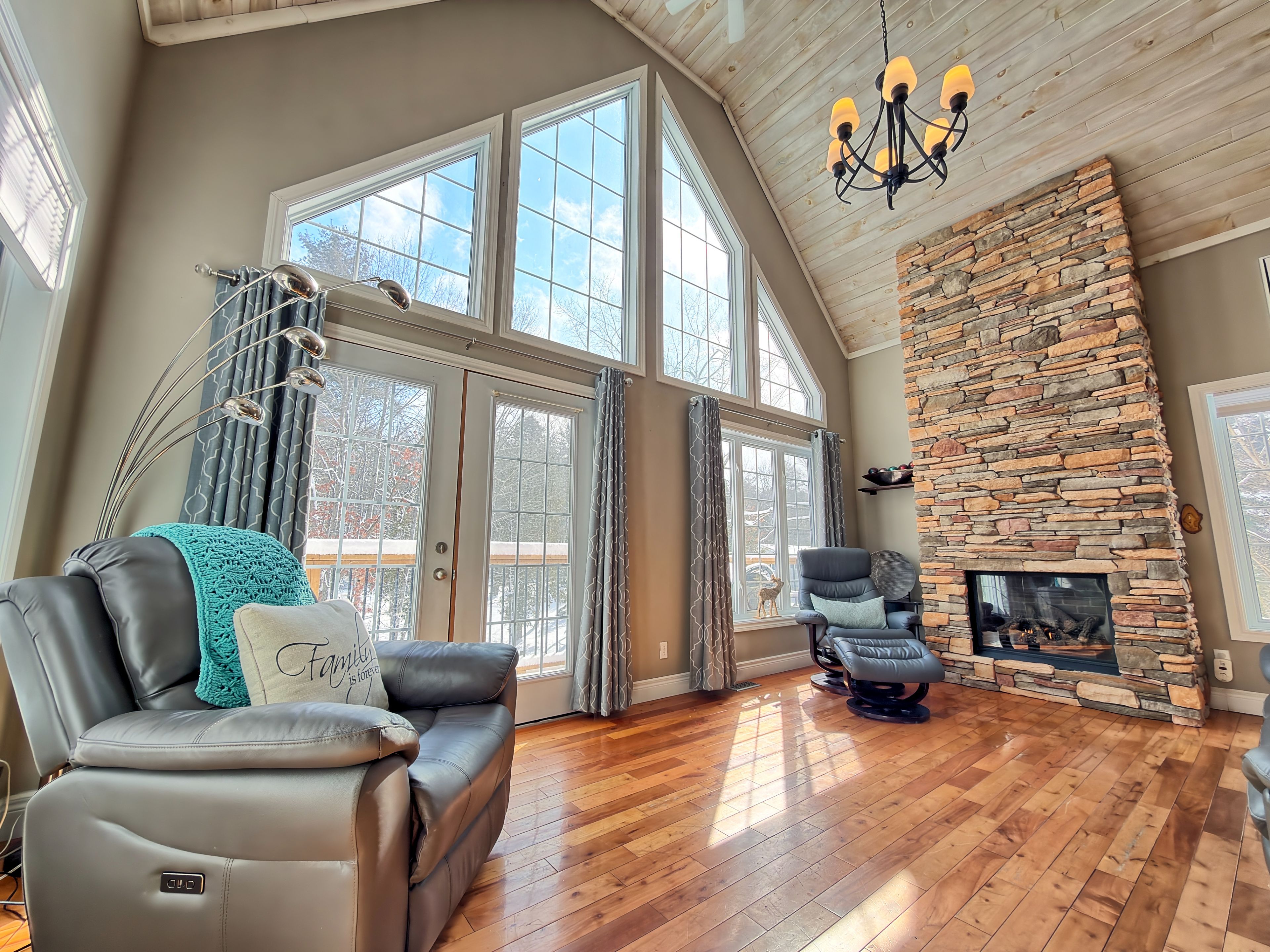 • Main floor features vaulted ceilings and a stunning propane fireplace.