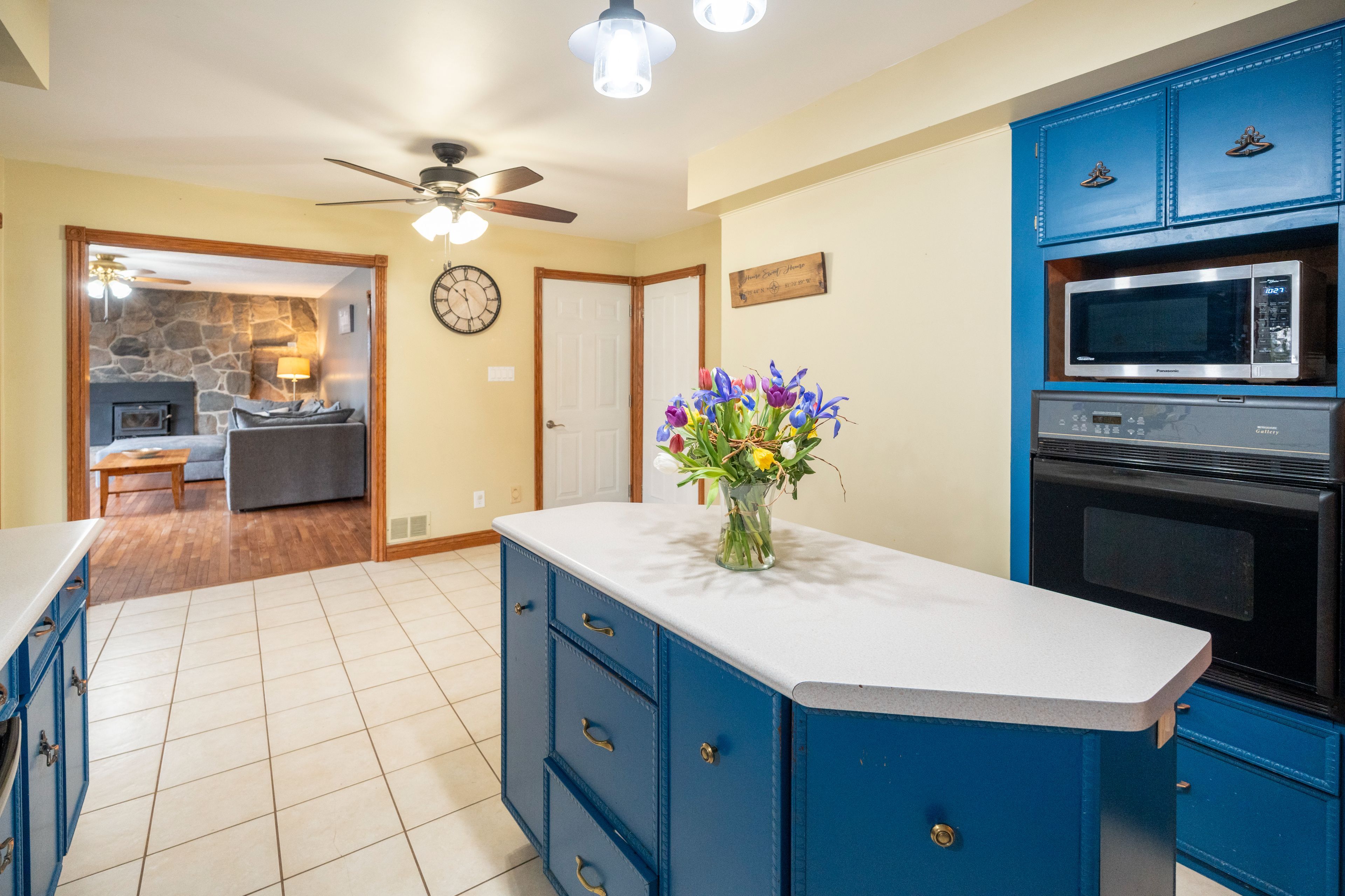 • Bright main floor living spaces with a cozy fieldstone fireplace.
