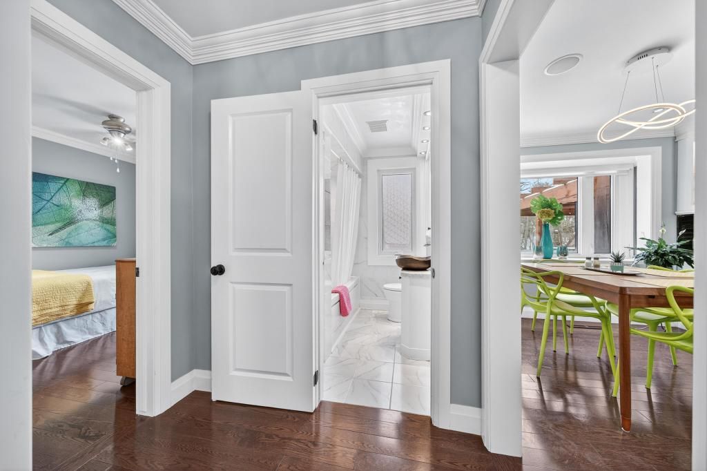 Rare offering in coveted shoreacres, south burlington. This beautifully renovated bungalow backs onto a ravine, offering complete privacy and a tranquil, resort-like setting with an in-ground 18 x 36 kidney shape heated pool and 2 decks with forest views-ideal for family living and entertaining. Extensively updated in 2018, the home features a stunning sunroom addition with soaring 15-ft ceilings and serene views of the backyard oasis. The jaw dropping garage is a mechanic/contractors dream, a 1200 sq ft man cave, 16-ft ceilings, 2 x 10 ft doors, drive through back door, 3-5 carparking, 2 x 220 volt outlets, 200 amp hydro service, fully finished with drywall, furnace and a convenient 2-pc bath, it is truly an unmatched garage space in the city. The main floor offers 3 generous bedrooms, a 4-pc bath, hardwood floors throughout and newer windows (2016), providing comfortable one-level living. The fully finished lower level is well suited for extended family or guests, featuring a bright in-law suite with large windows, separate entrance, a 4th bedroom, stylish 3-pc bath with seamless walk-in shower, finished laundry room and abundant storage. A rare, flexible layout in one of burlington's most desirable neighbourhoods. Country living in the city could not be better.