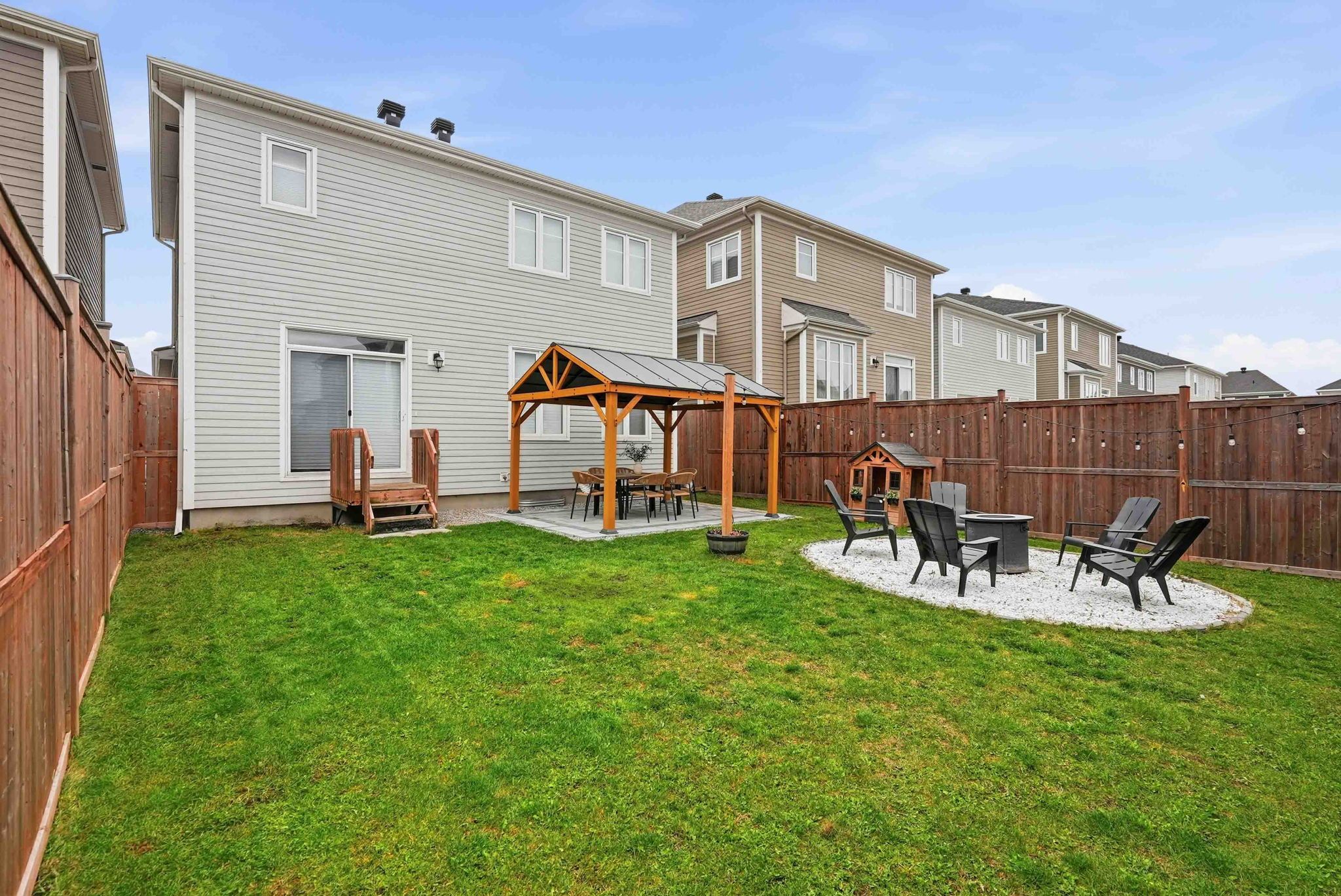 • Fully fenced backyard with patio and gazebo for outdoor enjoyment.
