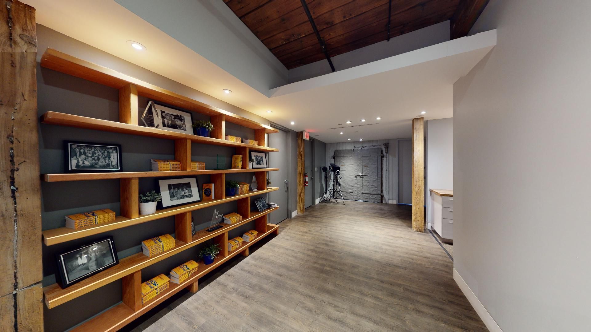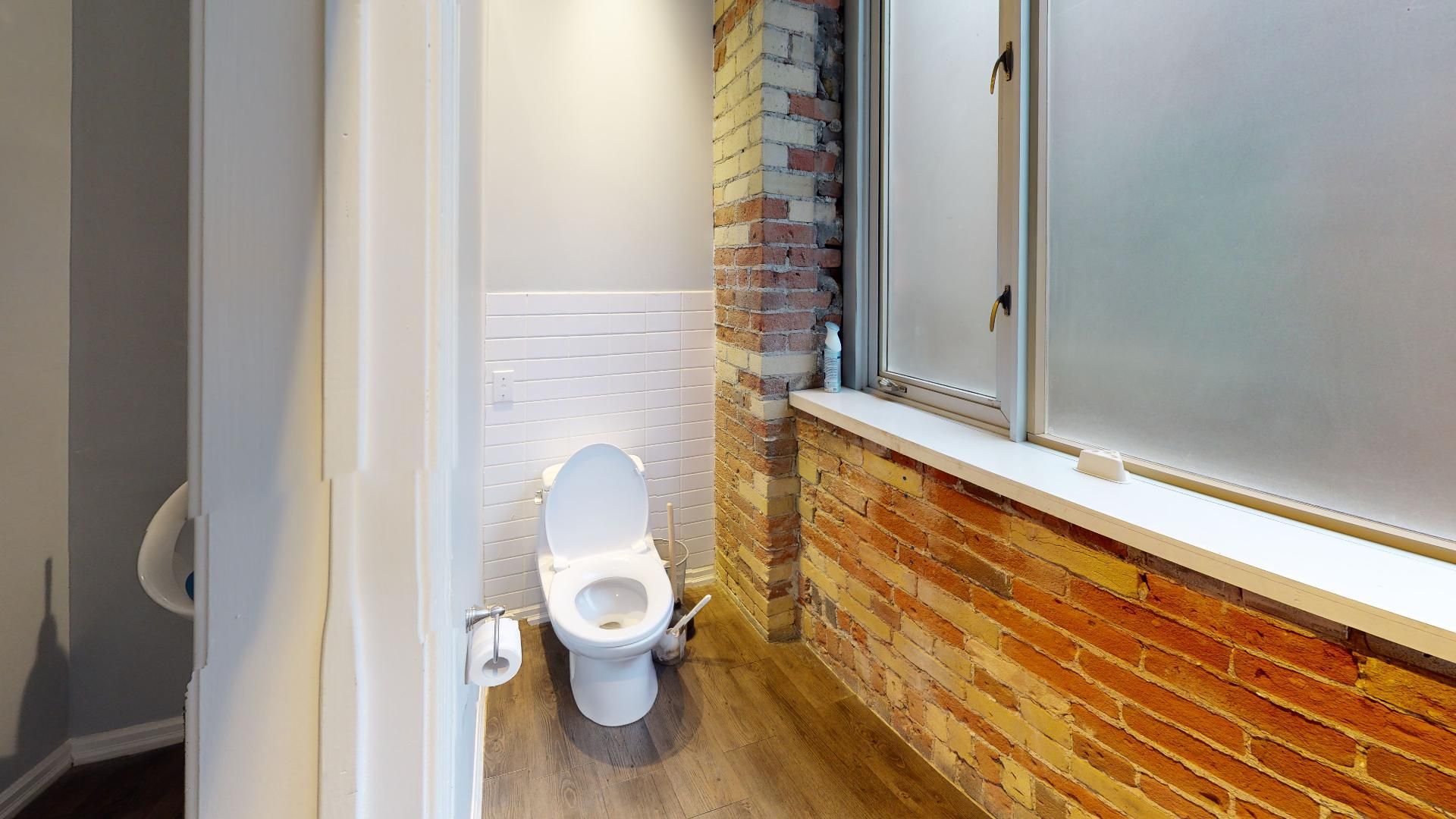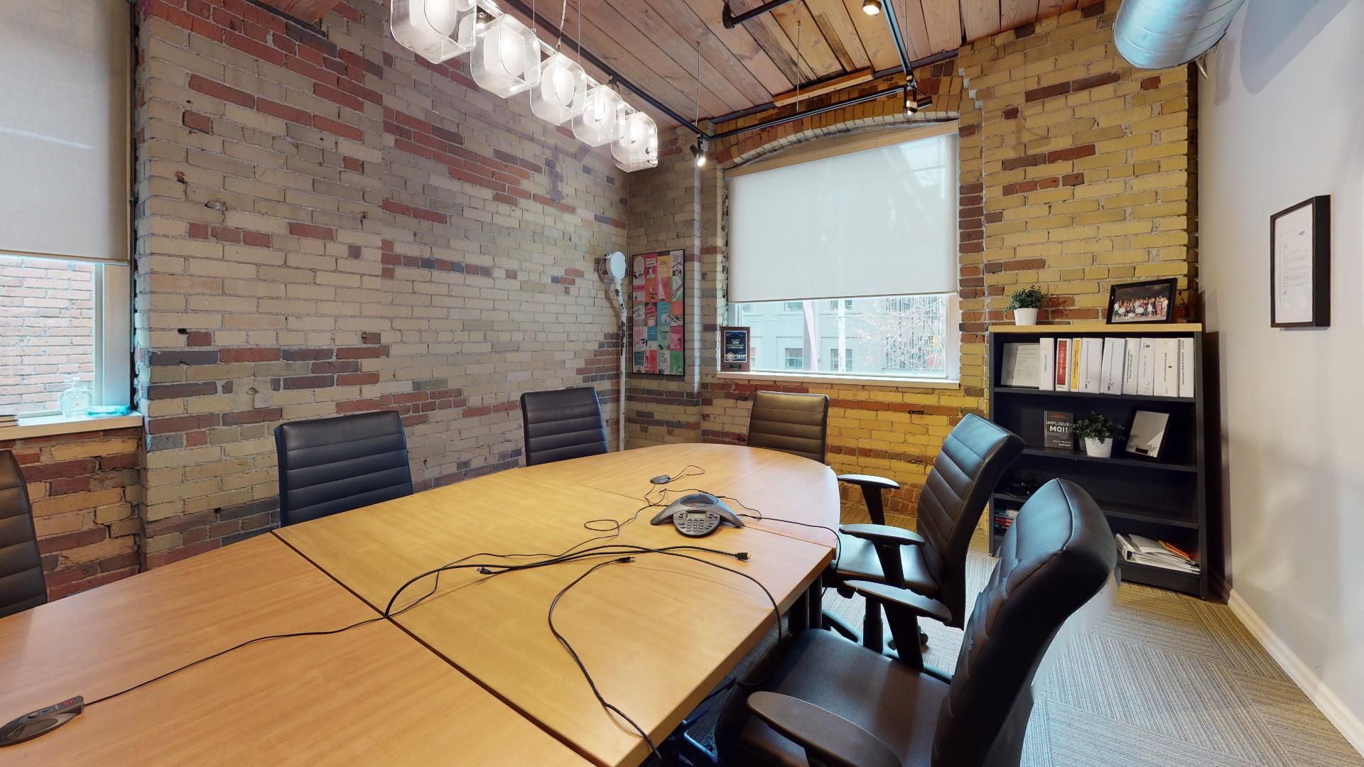 Stunning turnkey modern brick and beam office space over 3 levels, currently two reception areas off main floor foyer, numerous private offices and open concept work spaces. Some with glass and brick walls, wood beams, large open concept workstation areas with multiple cubicles, high profile main presentation rooms, 3 large boardroom/ creative think tank rooms, generous eat in kitchen with appliances, extensive track lighting and blinds throughout, 6 washrooms total over all levels including two showers (one wheelchair accessible). Upper floors not wheelchair accessible, freight elevator is not operational. Main level was physio clinic, parking available up to 5 spaces, hydro and insuite janitorial extra. Landlord is open to hostel/shelter use.