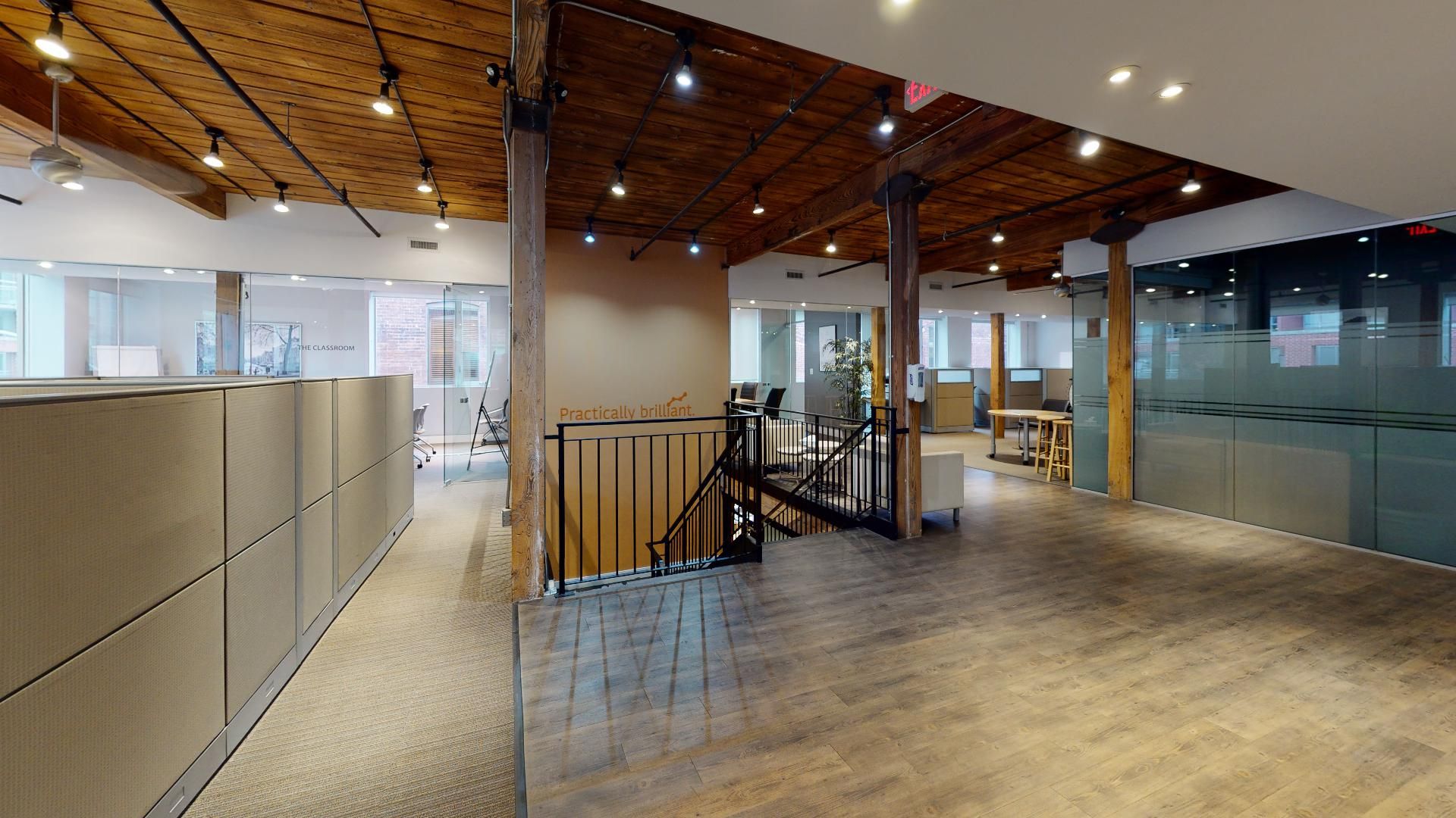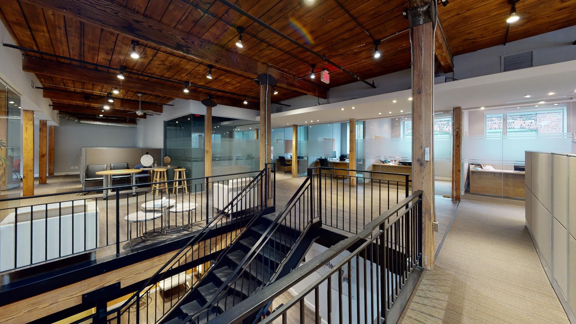 Standalone building available. Stunning turnkey modern brick and beam office space over 2 upper levels, main floor can house retail, commercial or office use. Currently two reception areas off main floor foyer, second and 3rd floors have numerous private offices and open concept work spaces. Some with glass and brick walls, wood beams, large open concept workstation areas with multiple cubicles, high profile main presentation rooms, 3 large boardroom/ creative think tank rooms, generous eat in kitchen with appliances, extensive track lighting and blinds throughout, 6 washrooms total over all levels including two showers (one wheelchair accessible). Upper floors not wheelchair accessible, freight elevator is not operational. Main level was physio clinic, parking available up to 5 spaces, hydro and insuite janitorial extra. Landlord is open to medical/hostel/shelter use.