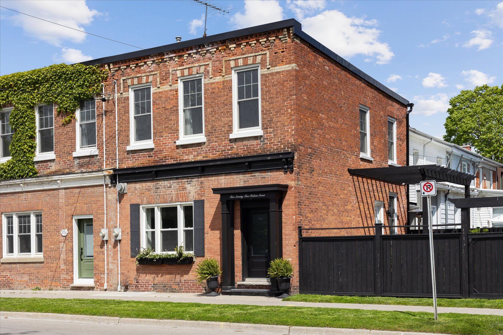 Heritage elegance meets modern refinement in the heart of port hope. Built in 1870 and fully restored with impeccable attention to detail, this distinguished red brick residence is a rare offering in the historic old english town of port hope. Nestled among mature trees and just a short stroll from the boutiques, cafes, and charm of downtown, it offers both timeless appeal and everyday convenience. Inside, 10-foot ceilings, original high baseboards and casings, and oversized south-facing windows preserve the homes historic character, while luxurious finishes provide modern sophistication. The open-concept living and dining area features a classic fireplace and flows effortlessly into a custom kitchen with quartz countertops, a striking black herringbone marble backsplash, centre island, and drawer-in-drawer cabinetry designed for seamless organization. Upstairs, natural light pours into three spacious bedrooms. The spa-inspired main bathroom is a true retreat, complete with heated floors, an oversized custom glass shower and herringbone marble tile, rainfall head, and a toto washlet for added comfort. Every modern detail has been carefully considered - smart switches and outlets, updated plumbing to the main hookup, and new electrical in the kitchen and baths ensure effortless day-to-day living. Step outside into a beautifully landscaped backyard sanctuary. A generous deck is perfect for barbecuing and entertaining, while mature hydrangeas and spotlighted trees create an enchanting atmosphere at night. Whether hosting guests or enjoying a quiet morning with the birdsong, the outdoor space feels both intimate and expansive. Fully renovated since 2020, this home masterfully blends the soul of a century home with the design, technology, and comfort of today. For a full list of premium upgrades and thoughtful features, please refer to the detailed feature sheet.