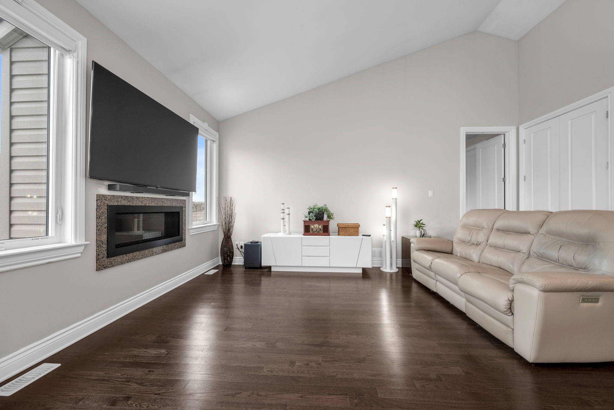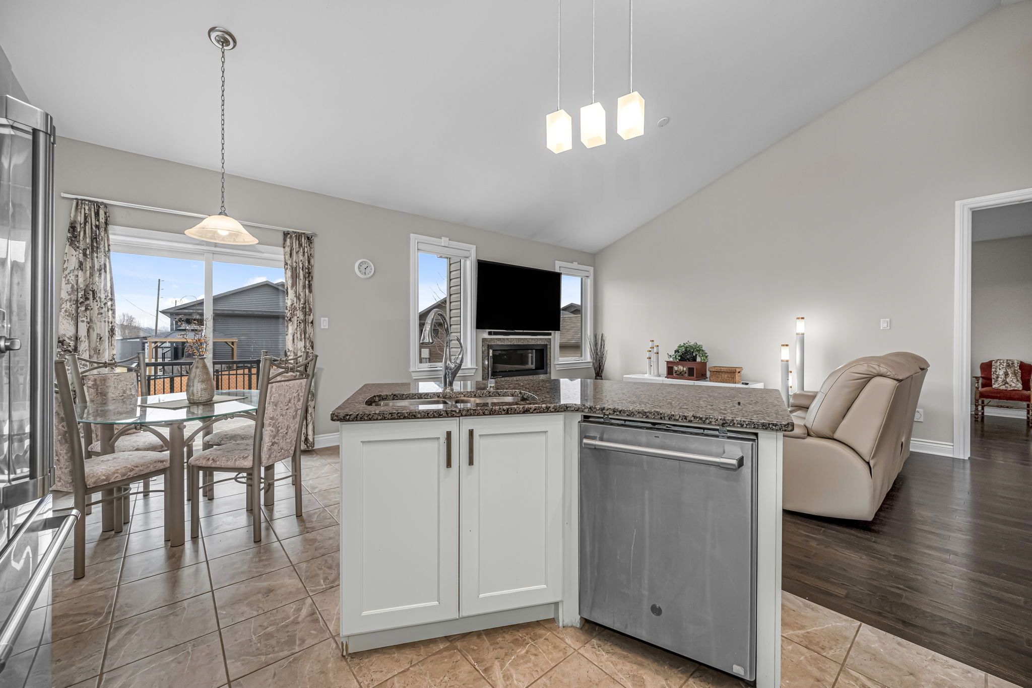 • Bright main living area with cathedral ceilings for an airy feel.