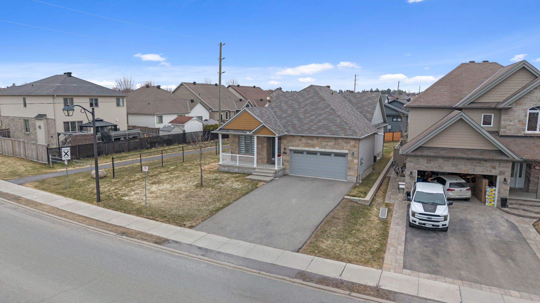 Welcome to 272 sterling in the heart of rockland, an inviting and well-appointed bungalow offering the perfect blend of comfort, space, and lifestyle. This beautifully maintained 2+1bedroom, 3 full bathroom home features an impressive main living area with soaring cathedral ceilings, creating a bright and airy atmosphere ideal for both everyday living and entertaining. The thoughtfully designed layout includes a spacious living room, a separate dining area for hosting, and a charming breakfast nook in the kitchen-perfect for relaxed mornings. The primary bedroom serves as a private retreat, complete with a generous walk-in closet and a luxurious 5-piece ensuite. A second bedroom and full bathroom complete the main level. The fully finished lower level expands your living space with a third bedroom, a dedicated craft room, a theatre room for movie nights, and a large storage area-offering flexibility for families, hobbies, and guests alike. Step outside to a fully fenced backyard featuring a large deck, patio area, and a storage shed-ideal for outdoor entertaining and enjoying the warmer months. For added peace of mind, the home is also equipped with a briggs and stratton generator. Located in a sought-after, family-friendly neighbourhood, this home is just steps from a walking path and close to schools, parks, and local amenities. A well-rounded property offering comfort, functionality, and an exceptional location-272 sterling is ready to welcome you home.