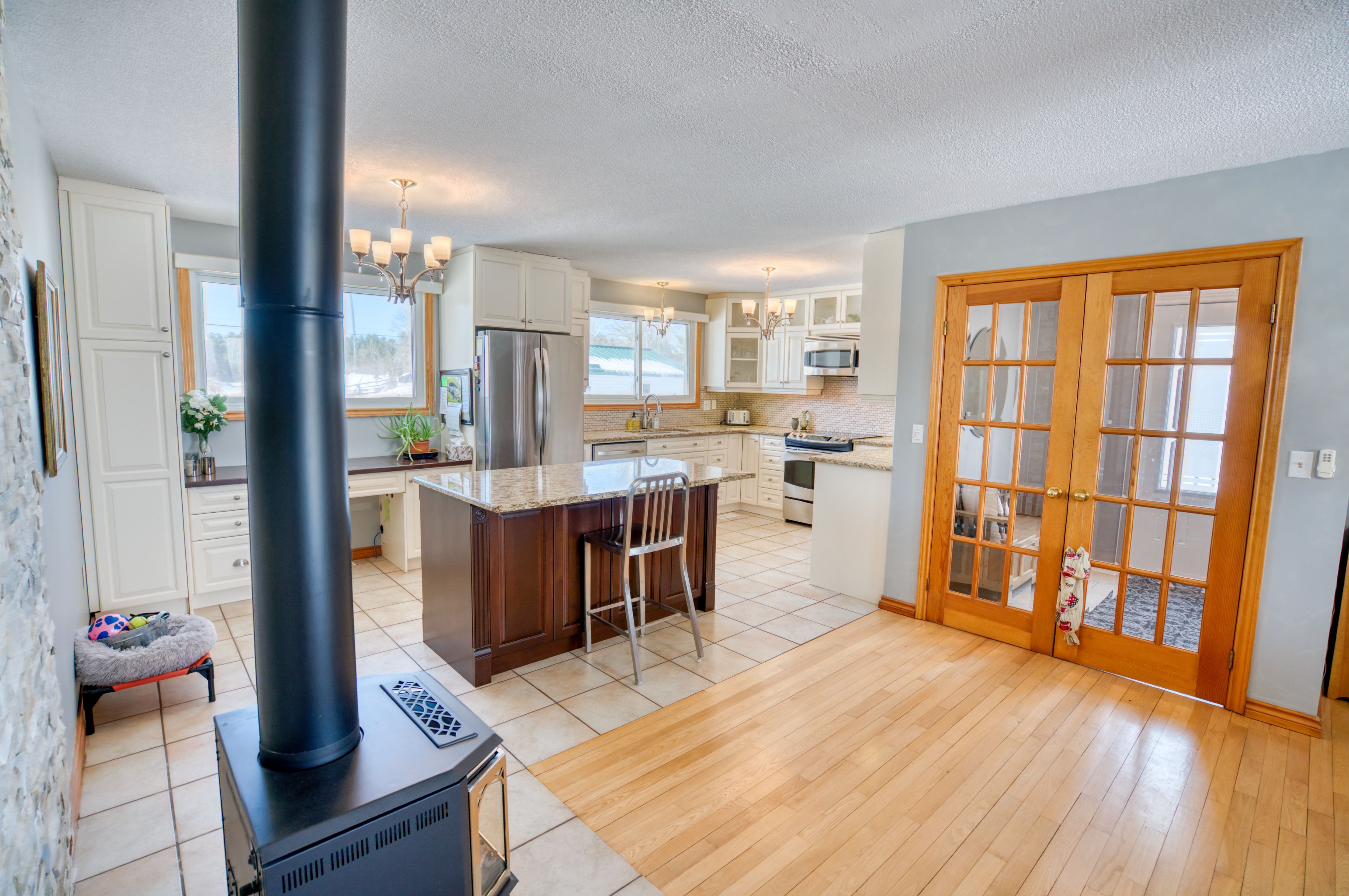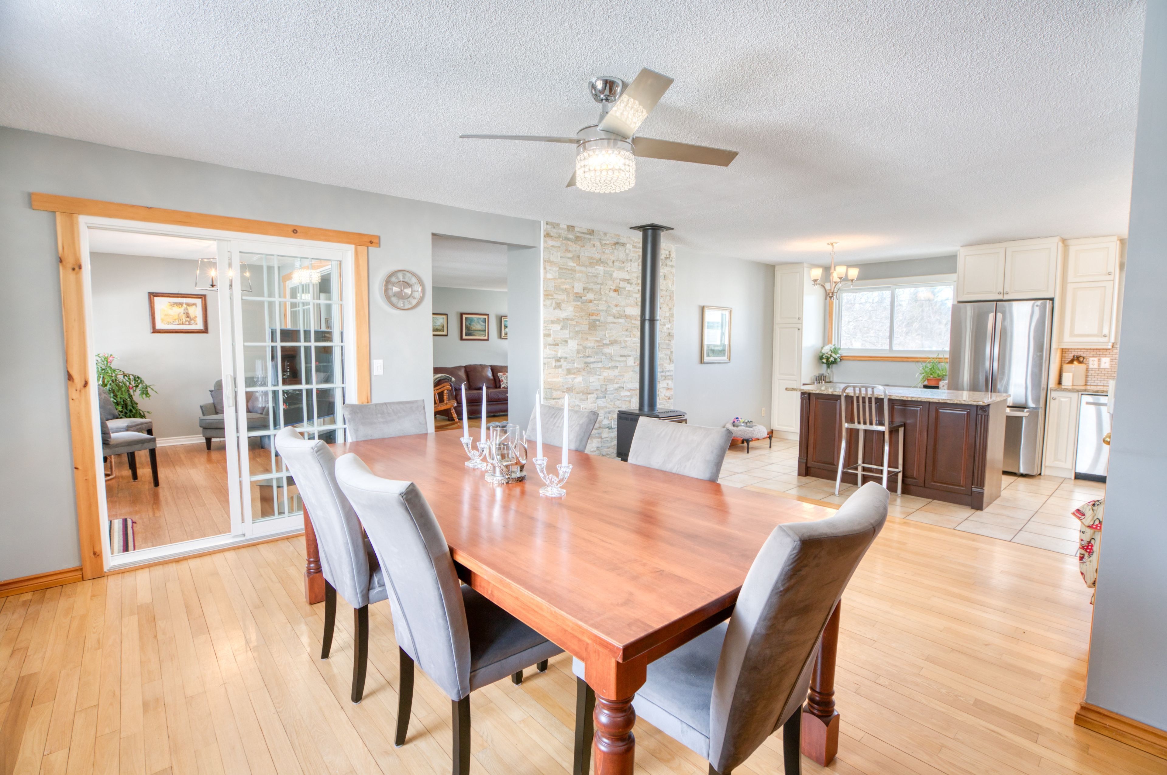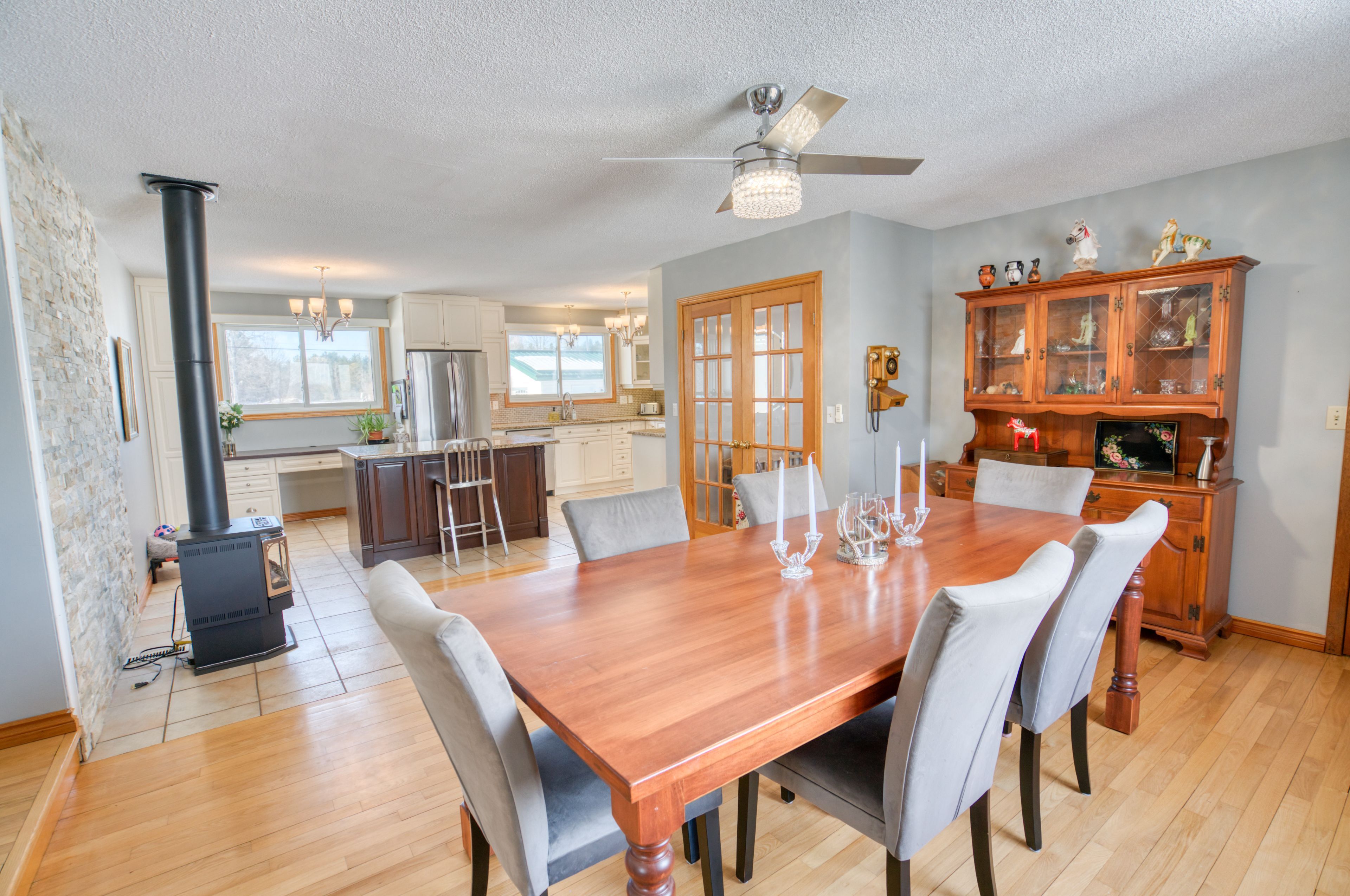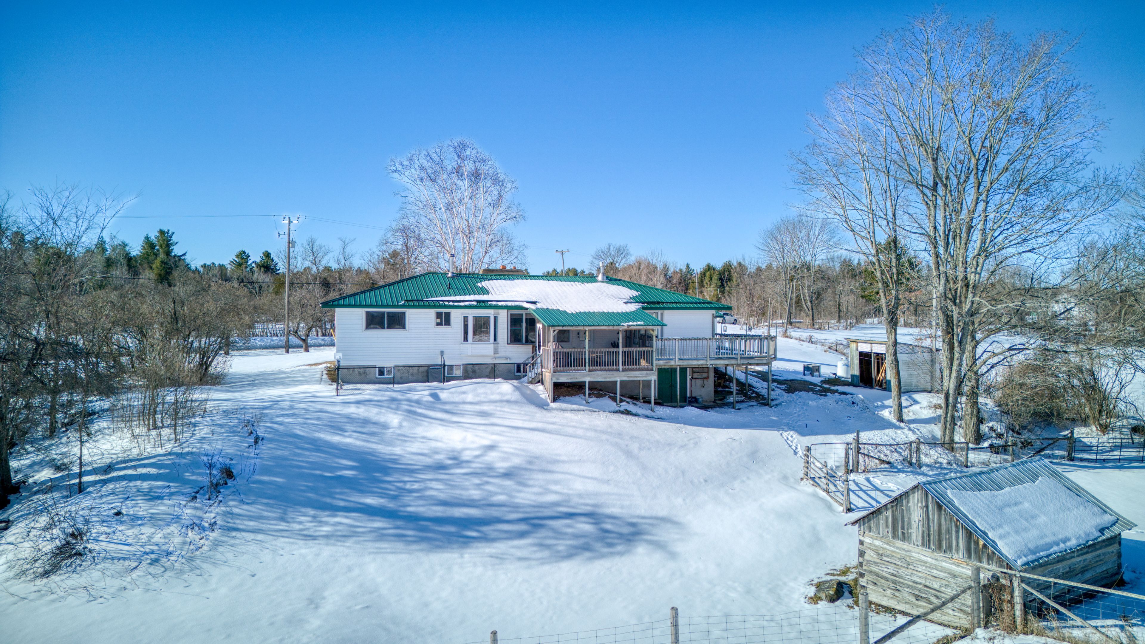 Welcome to your own private 107 acre country escape just minutes from the village of sharbot lake. This well-maintained 4 bedroom, 2 bathroom bungalow offers the perfect blend of rural living, space, and opportunity. Set back from the road and surrounded by a beautiful mix of rolling fields, pasture, and mature trees, the property delivers exceptional privacy. The home offers approximately 1,700 sq. Ft. Of main floor living space with a functional layout, including a bright kitchen, spacious living area, and a main floor primary bedroom. Multiple heating options include a wood-burning fireplace, wood stove in the basement, propane stove in the kitchen area, and propane forced air, along with central air conditioning for year-round comfort. A full unfinished walkout basement provides excellent potential for additional living space, workshop, or storage. Outside, you'll find a detached garage, barn with hydro, and several outbuildings. While not operated as an active farm for many years, the property offers excellent potential for hobby farming, recreational use, or simply enjoying wide open space. Explore your own 107 acres featuring a mix of open land and forest, with maple trees toward the back of the property and a stream meandering through - adding to the natural beauty and peaceful setting. Located close to local amenities, lakes, and trails, this is a rare opportunity to own a substantial piece of the frontenacs.