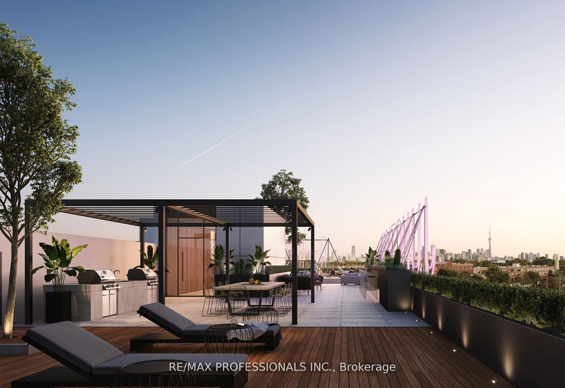 Welcome to junction house. This stylish 1-bedroom loft-style condo offers 524 sq. Ft. Of functional living space in the heart of the junction. The open-concept layout features a scavolini kitchen with paneled appliances, a gas cooktop, a porcelain-tile backsplash, and ample cabinetry. Bright west-facing floor-to-ceiling windows, high concrete ceilings, and engineered hardwood floors create a modern urban feel throughout. Enjoy a private balcony with gas bbq hookup, a bedroom with generous closet space and blackout blinds, and an upgraded bathroom with a glass-enclosed shower featuring rain and handheld fixtures. Includes in-suite laundry and individual climate control. Building amenities include a fitness centre, co-working space, concierge, bike storage, visitor parking, and a rooftop terrace with bbqs and lounge areas. Steps to cafés, restaurants, shops, parks, and ttc. Pet-friendly. Tenant to pay utilities. Photos are from the previous listing.