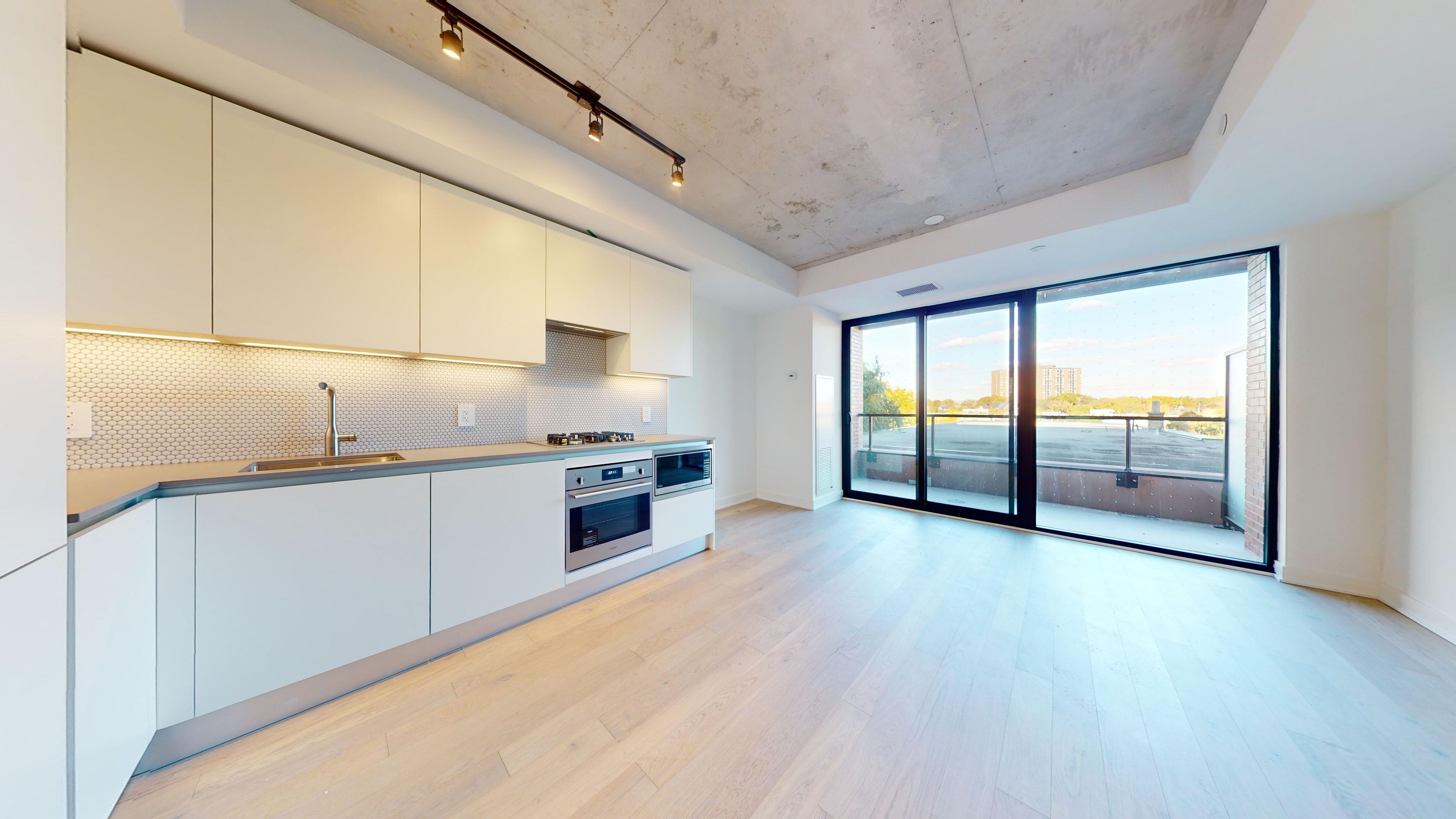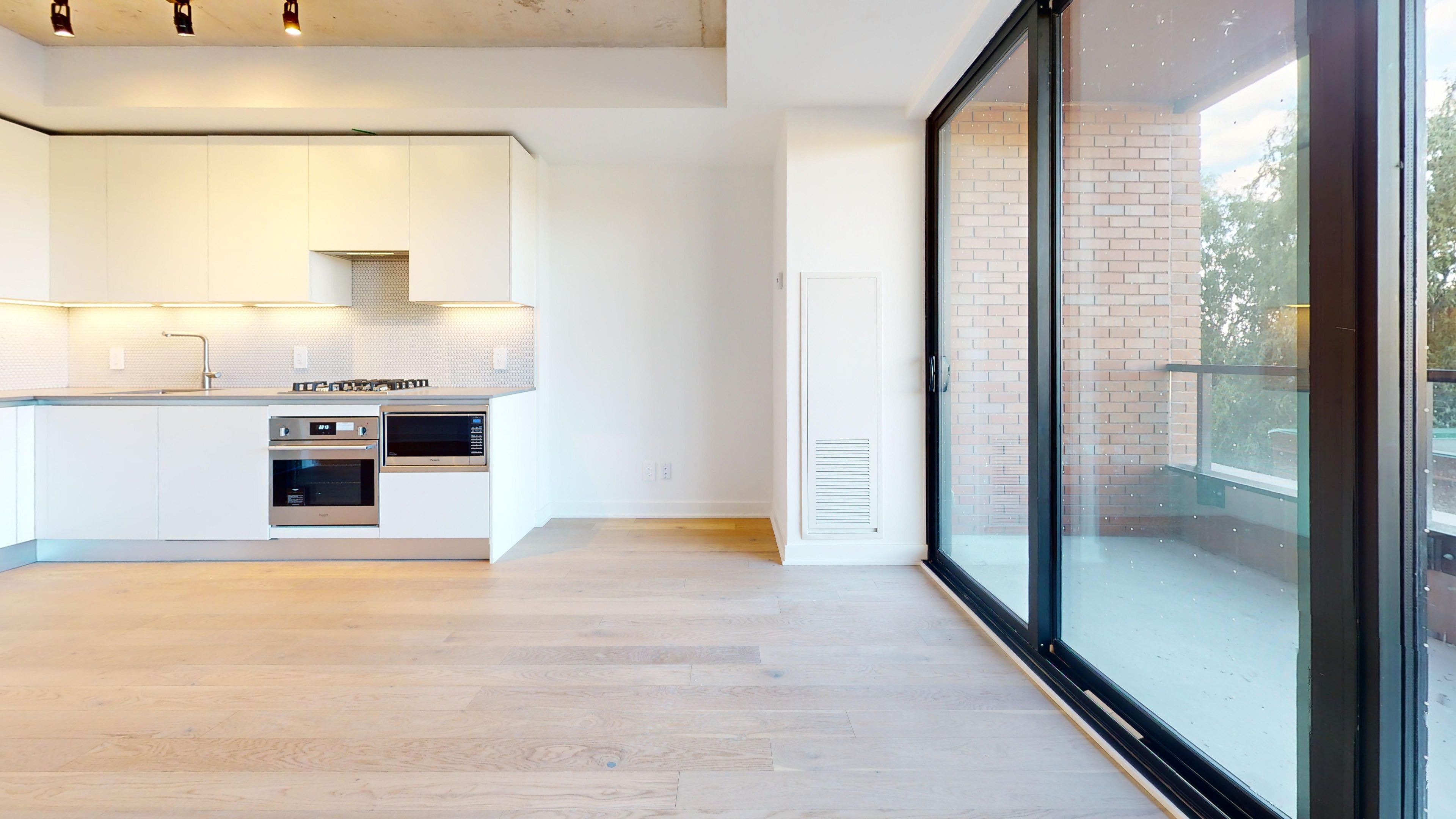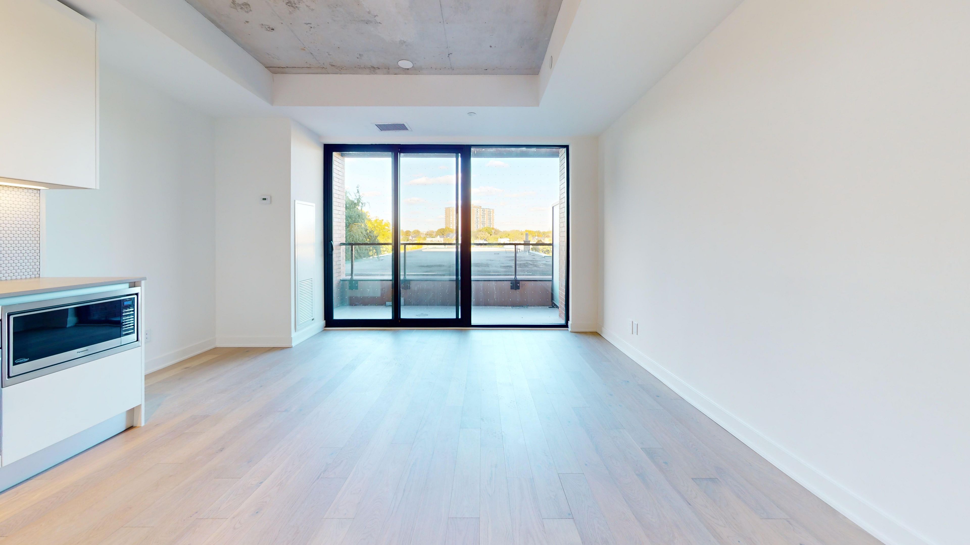 • Open-concept living area with natural light and a large balcony.