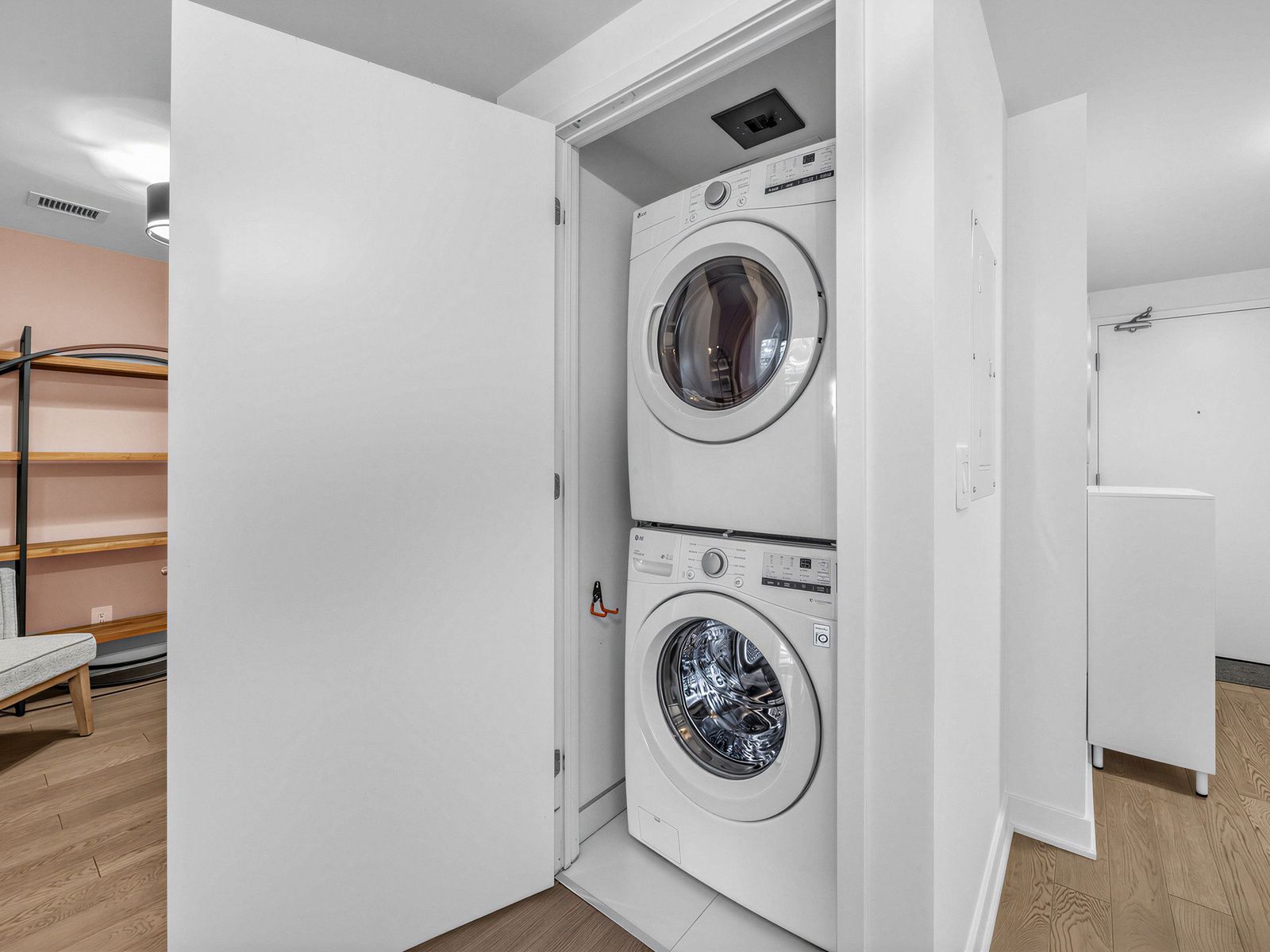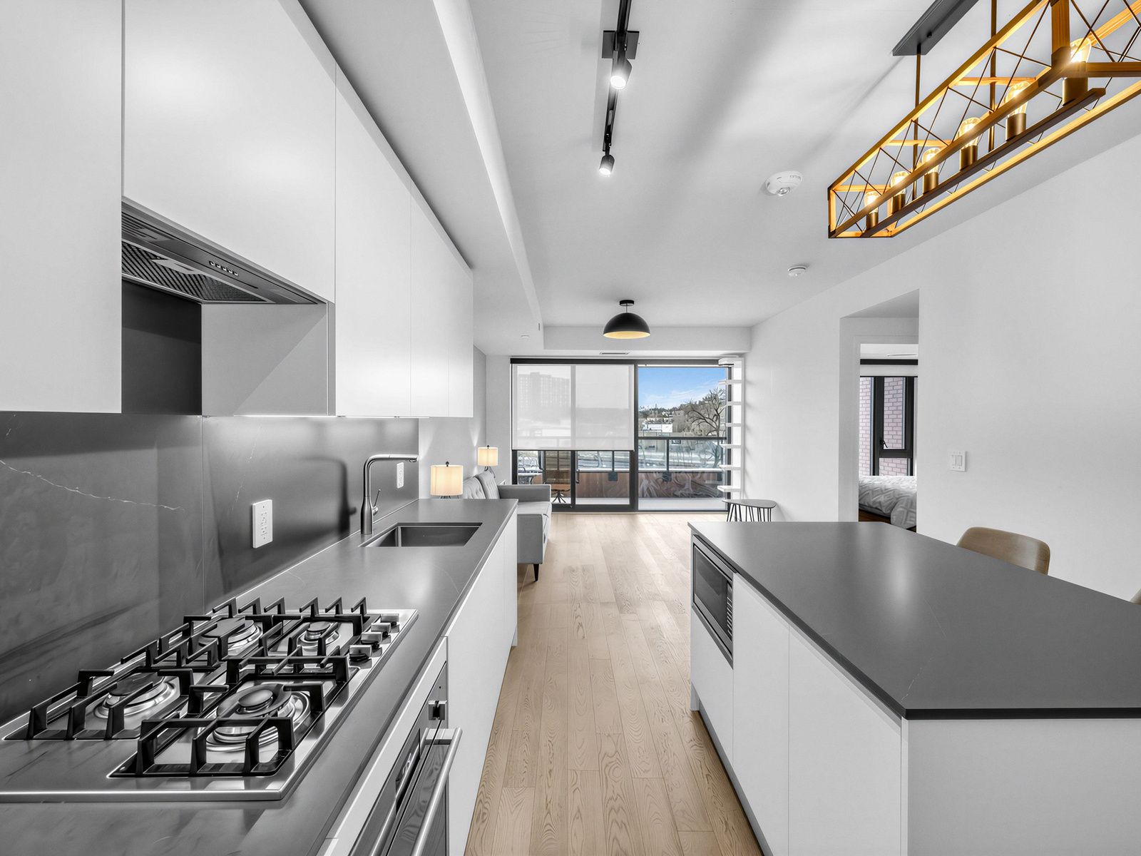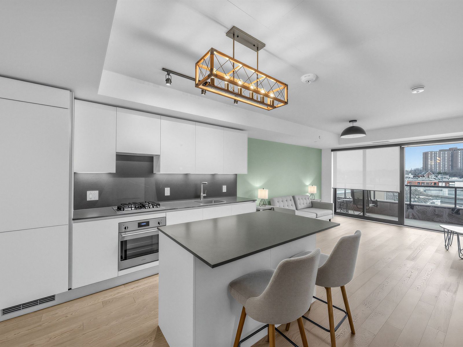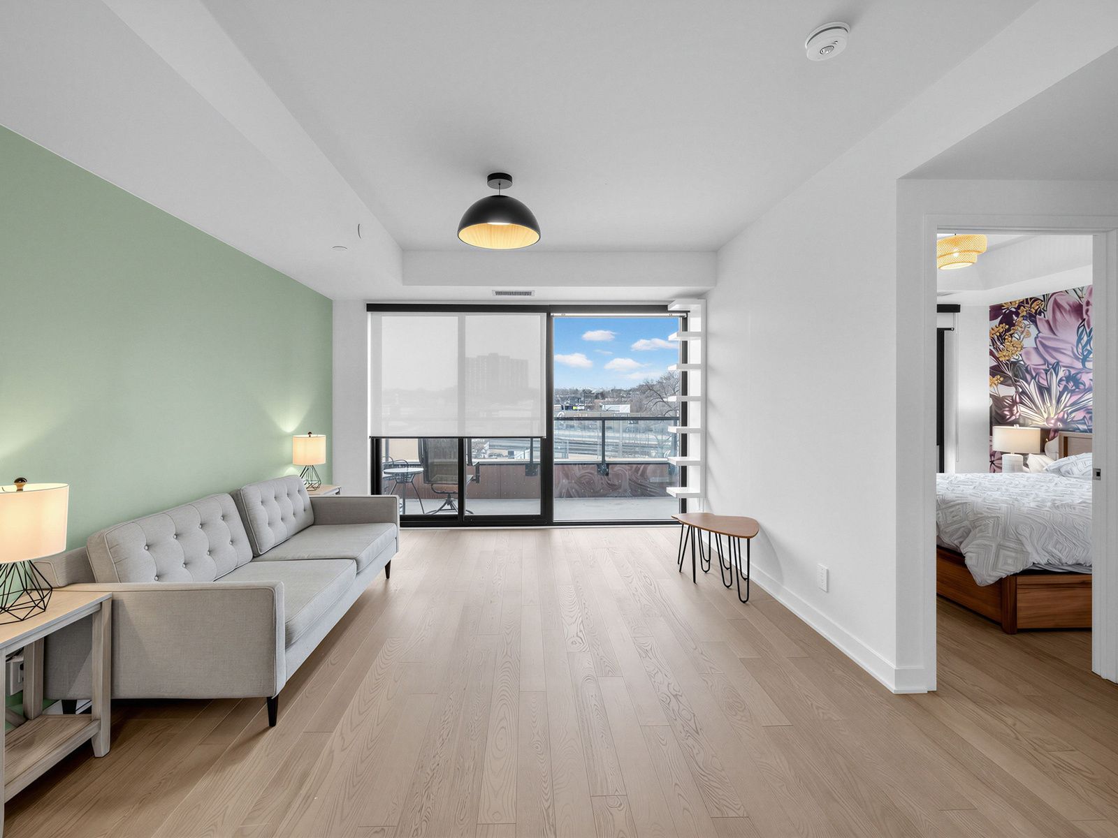 Bright & spacious 1 bed + den & 1 bath in the junction! Beautifully designed with stunning artistic touches throughout. Premium & modern finishes. A stunning kitchen featuring a large stone-top centre island, backsplash, gas cooktop & stainless steel appliances. The den features laminate flooring, built-in shelving & gorgeous wallpaper. Combined living & dining spaces illuminate the unit with an abundance of natural light with large window & walk-out to balcony. In the primary bedroom, you can find a large closet with organizers, a tall window & beautiful wallpaper. The modern bathroom features a stand up glass-enclosed shower, tile flooring, floating vanity & built-in storage with shelves. 1 stacked parking space. Can be rented furnished or non-furnished.