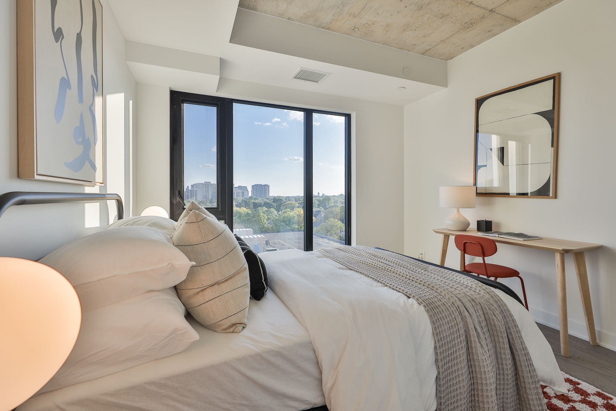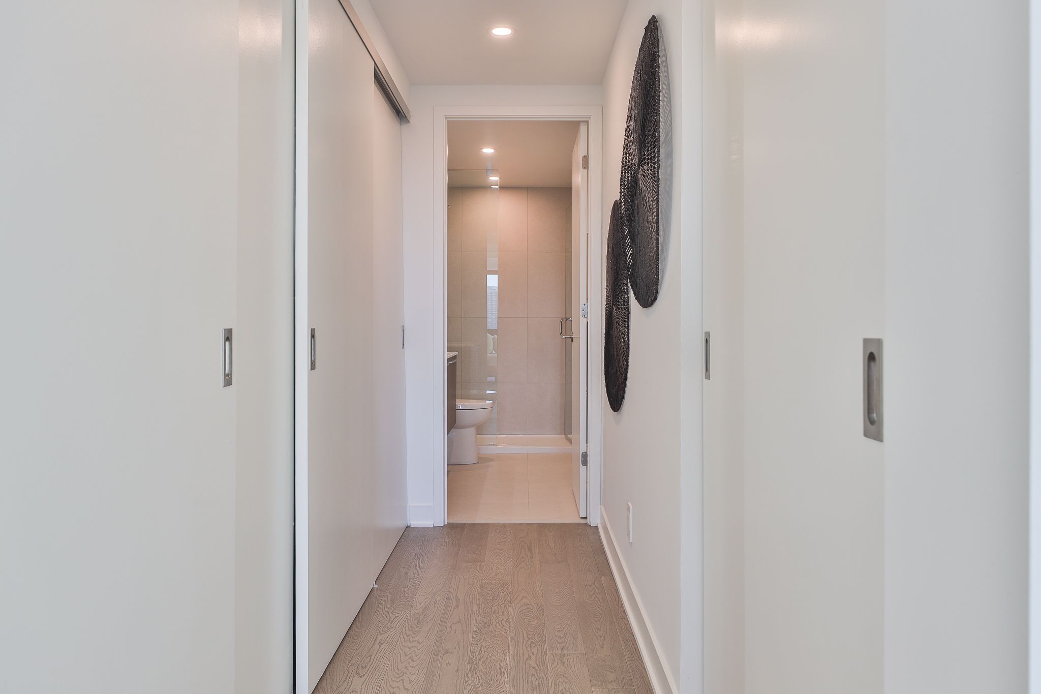** hst rebate eligible | builder suite ** be first to call this ultra-spacious suite "home" - and save in the process! The largest 2 storey home at junction house is available direct from the builder. A true townhome in the sky, offering 1,366 square feet inside, plus a private and south-facing 150 square foot terrace with sweeping views of the city and towards the lake. The terrace is complete with a bbq connection and water service, making it ideal for effortless entertaining. Inside, generous and sun-filled living spaces with an extra wide main floor featuring a scavolini kitchen with an oversized island, gas cooktop, integrated appliances and tremendous storage. A discrete powder room is also located at this level. Upstairs, 2 full bedrooms, including a bright primary suite with walk-through closet and an ensuite with dual vanities and walk-in shower. Spacious second bedroom, main bathroom and laundry on the second level. Underground parking and locker storage is included. Note that purchase price is inclusive of hst.