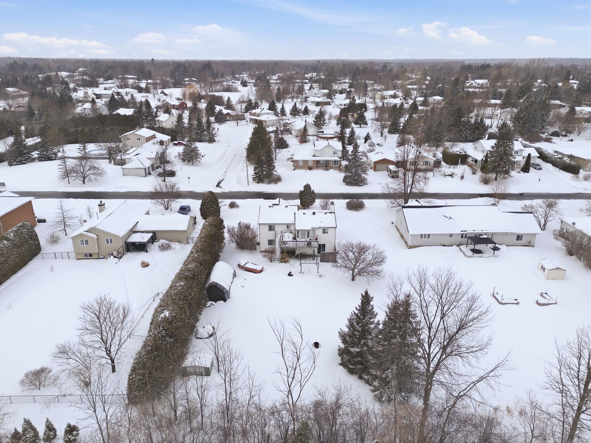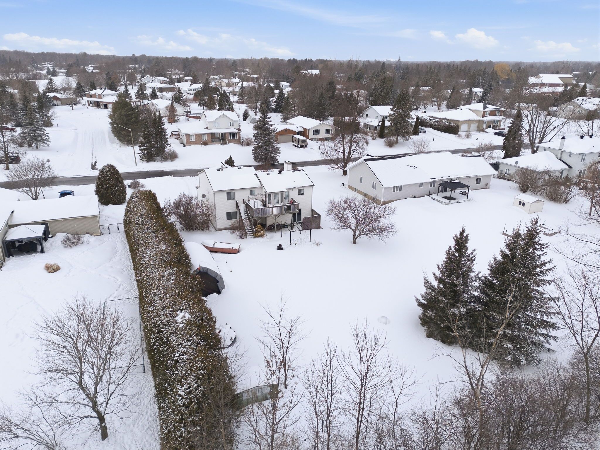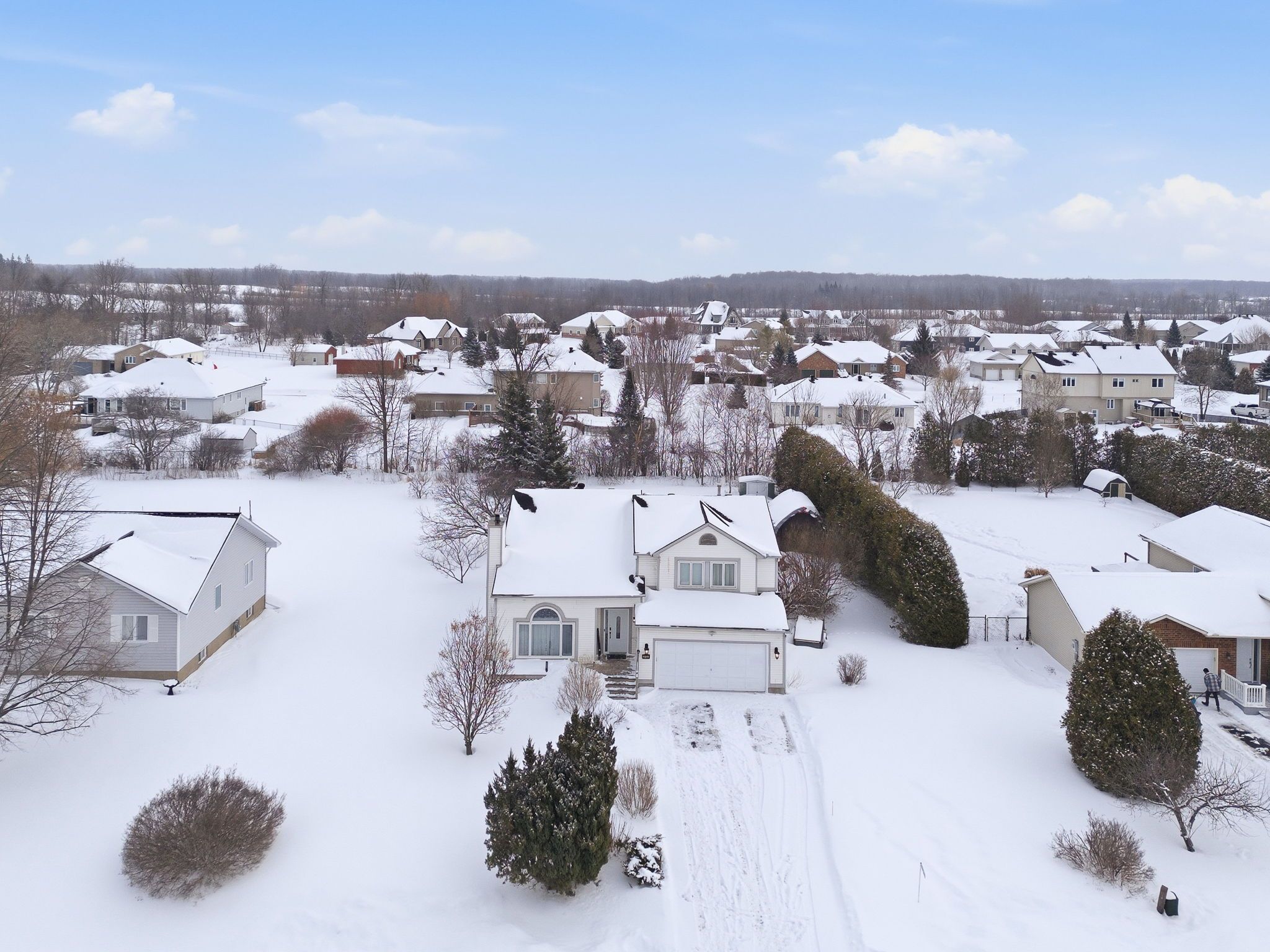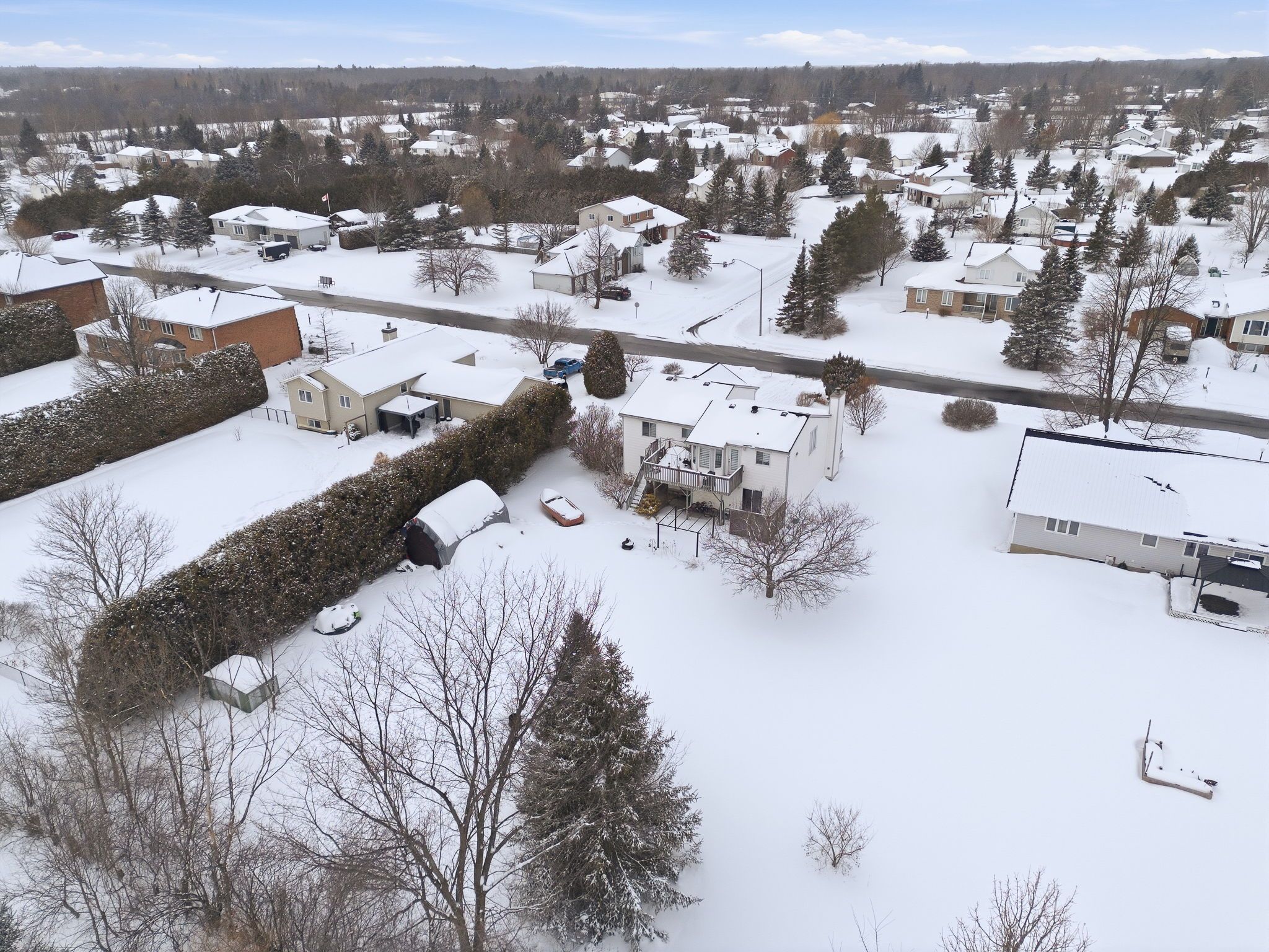 Welcome to this immaculate two-storey home filled with timeless charm and character, perfectly designed for comfortable family living. From the moment you arrive, the double-car garage and inviting curb appeal set the tone for what awaits inside. Step into the welcoming foyer and be greeted by a stunning grand wood staircase that leads to the second level, adding warmth and elegance to the heart of the home. The upper floor offers a spacious, thoughtfully designed kitchen featuring abundant cabinetry, generous counter space, and room to gather. The primary bedroom is a peaceful retreat complete with a private 3-piece ensuite, while two additional well-sized bedrooms and a 4-piece bathroom provide comfort and functionality for family or guests. The main level is both inviting and practical, highlighted by beautiful french doors that lead from the living room into a cozy family room complete with a large walk-in closet. Expansive windows throughout the home flood each space with natural light. The living room features a charming wood-burning fireplace and patio doors that open to the backyard, creating the perfect setting for relaxing evenings or entertaining. Convenient main-floor laundry and ample storage add everyday ease. Outside, enjoy your own private oasis - a peaceful backyard surrounded by mature trees, offering exceptional privacy. The spacious deck is ideal for summer gatherings, and the shed provides additional storage for all your outdoor needs. A rare blend of character, space, and serenity - this beautiful home is truly move-in ready and waiting to welcome its next chapter.