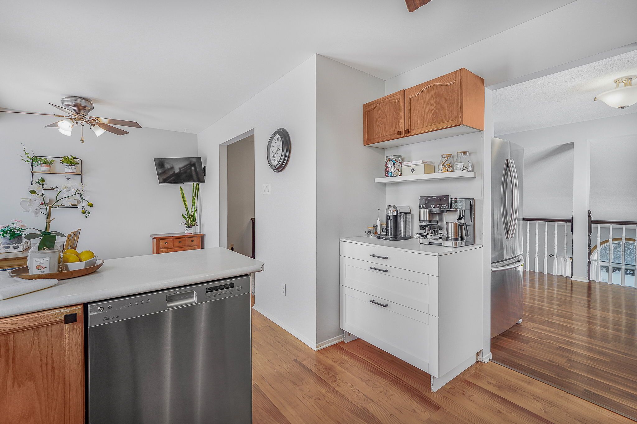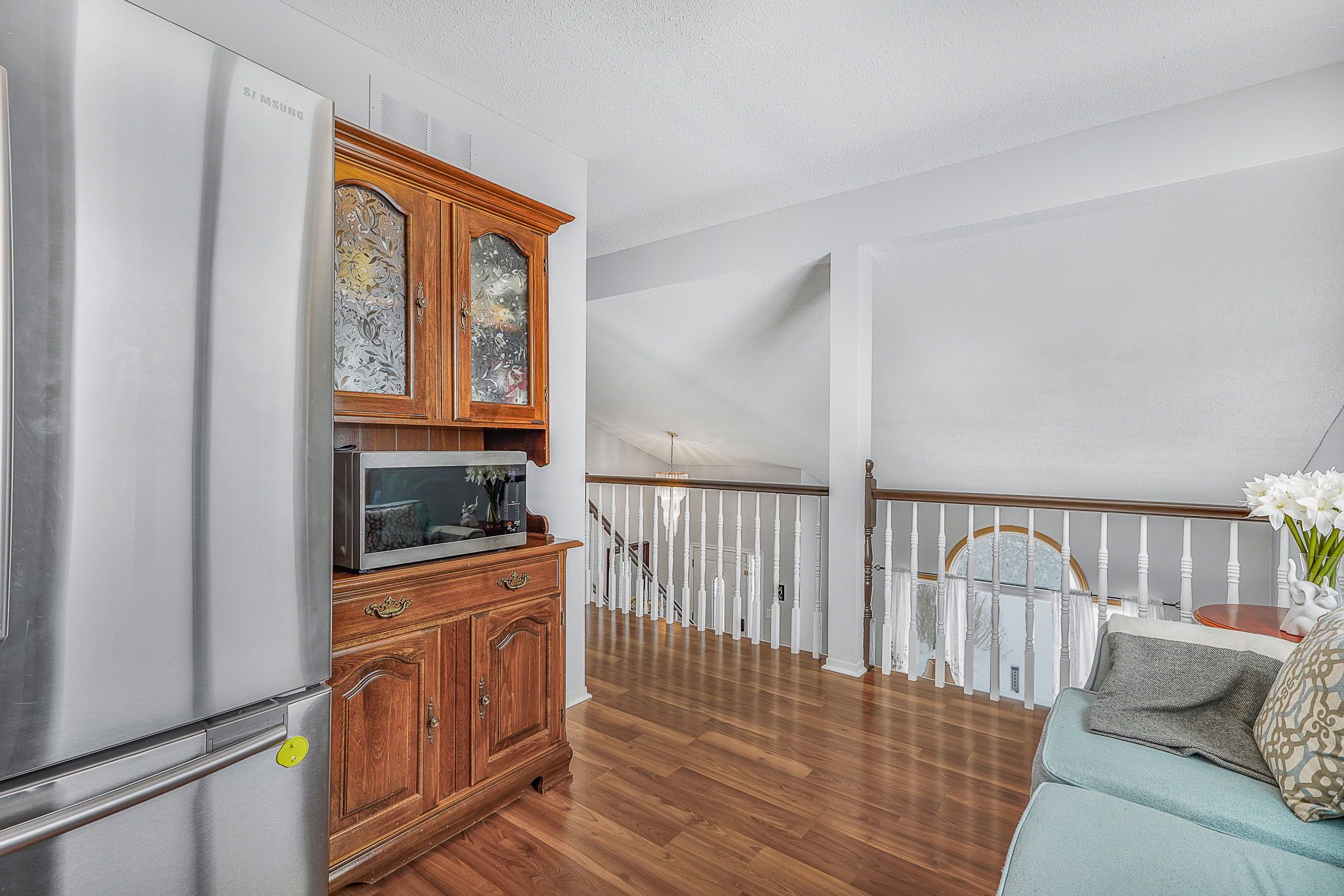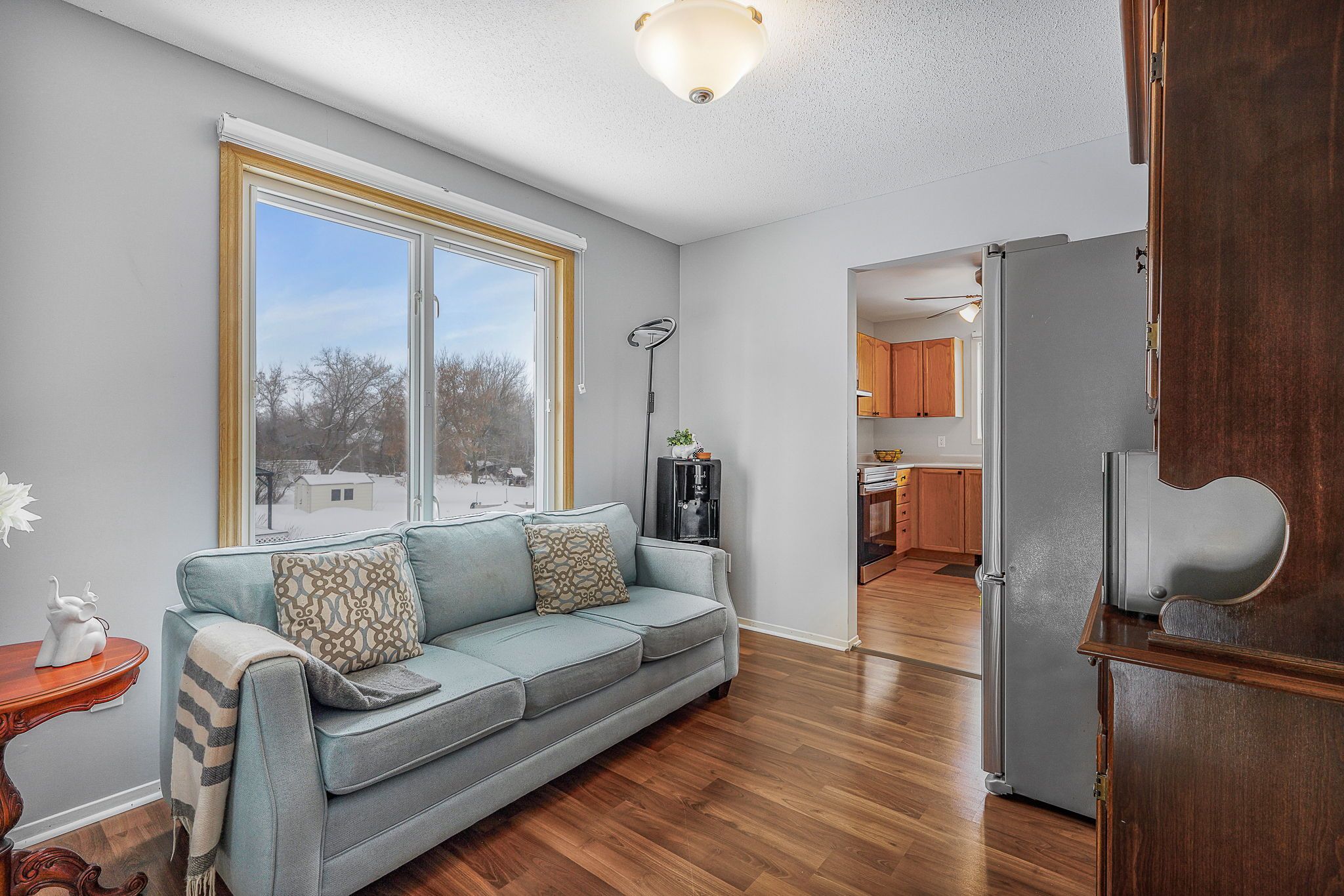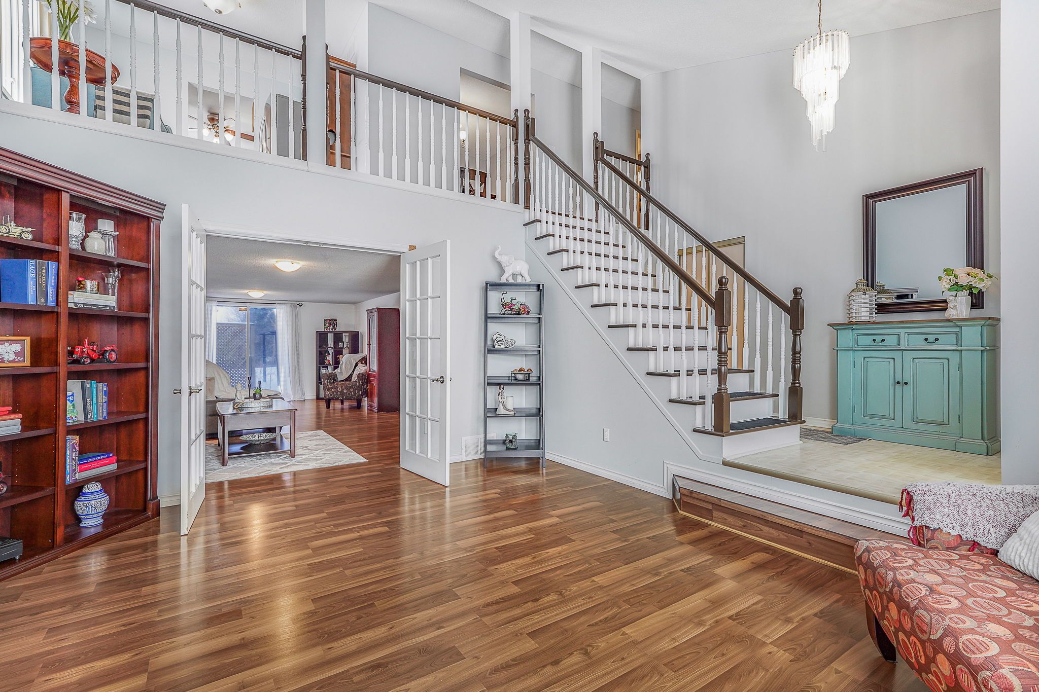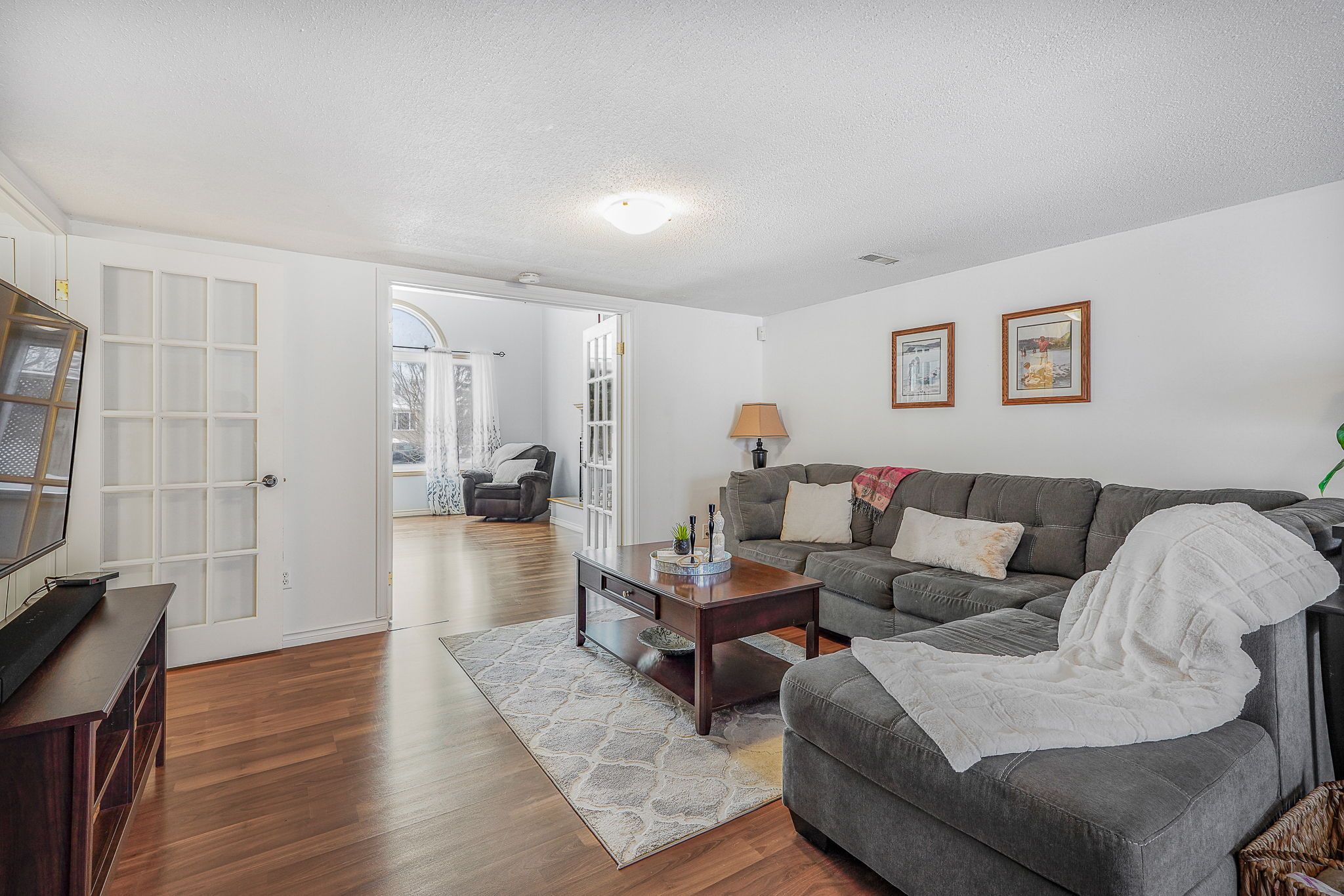 Welcome to this immaculate two-storey home filled with timeless charm and character, perfectly designed for comfortable family living. From the moment you arrive, the double-car garage and inviting curb appeal set the tone for what awaits inside. Step into the welcoming foyer and be greeted by a stunning grand wood staircase that leads to the second level, adding warmth and elegance to the heart of the home. The upper floor offers a spacious, thoughtfully designed kitchen featuring abundant cabinetry, generous counter space, and room to gather. The primary bedroom is a peaceful retreat complete with a private 3-piece ensuite, while two additional well-sized bedrooms and a 4-piece bathroom provide comfort and functionality for family or guests. The main level is both inviting and practical, highlighted by beautiful french doors that lead from the living room into a cozy family room complete with a large walk-in closet. Expansive windows throughout the home flood each space with natural light. The living room features a charming wood-burning fireplace and patio doors that open to the backyard, creating the perfect setting for relaxing evenings or entertaining. Convenient main-floor laundry and ample storage add everyday ease. Outside, enjoy your own private oasis - a peaceful backyard surrounded by mature trees, offering exceptional privacy. The spacious deck is ideal for summer gatherings, and the shed provides additional storage for all your outdoor needs. A rare blend of character, space, and serenity - this beautiful home is truly move-in ready and waiting to welcome its next chapter.