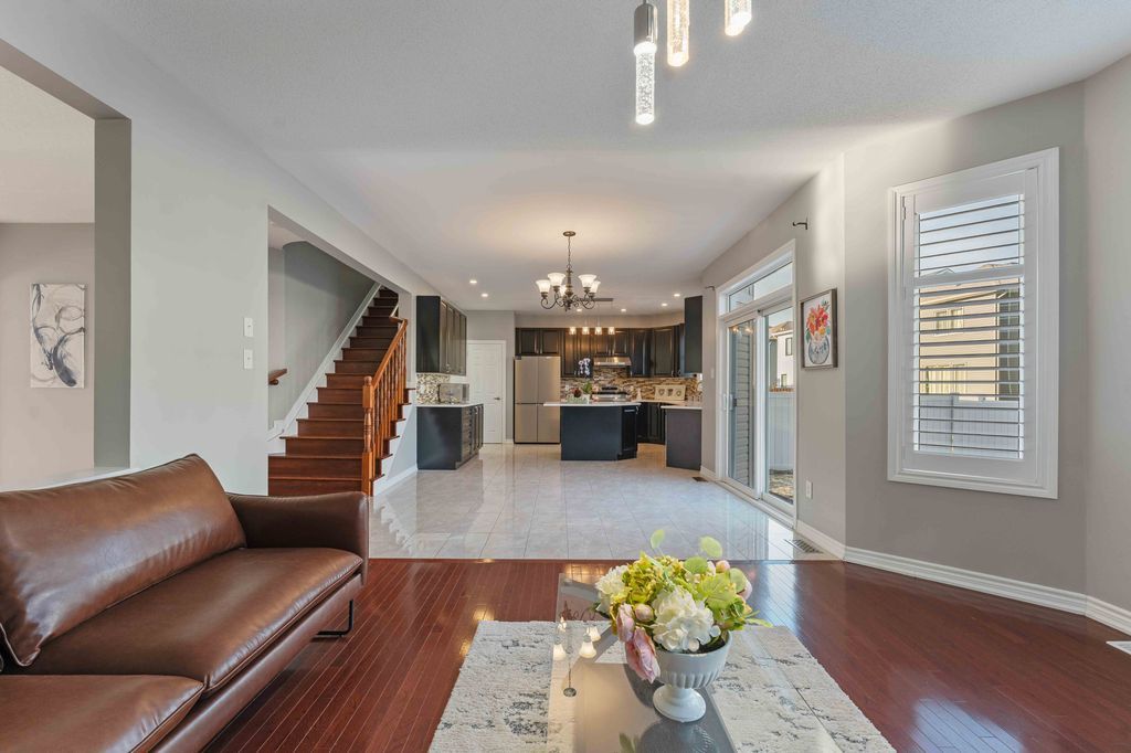 Welcome to this beautiful 4 bed / 4 bath/carpet free/with balcony and double car garage detached home (2,619 sqft as per builder), located in prestigious half moon bay--one of ottawa's most desirable communities. This thoughtfully designed home features a spacious foyer with a large closet, a bright living room, formal dining area, and an inviting family room with a cozy gas fireplace. Main floor has hardwood flooring and 9-foot ceiling, entertainment space filled with daylight. The well-appointed kitchen offers granite countertops, ample cabinetry and a sun-filled eating area with patio doors leading to the backyard. Upstairs, hardwood flooring throughout. The huge primary bedroom boasts two walk-in closets and a luxurious 4-piece ensuite. Two additional bedrooms share a full bath, while the fourth bedroom features its own private 3-piece ensuite and walk-in closet, ideal for guests or multi generational living. The second floor also has a balcony, perfect for morning coffee and enjoying the views. The unfinished basement with a bathroom rough-in provides excellent potential for future customization. Close to stonebridge golf club, minto recreation complex, top-rated schools, parks, and shopping, this home offers both comfort and convenience in a highly sought-after neighbourhood and presents long-term value for families, investors, or anyone seeking upscale suburban living. Don't hesitate! Book your private showing today!