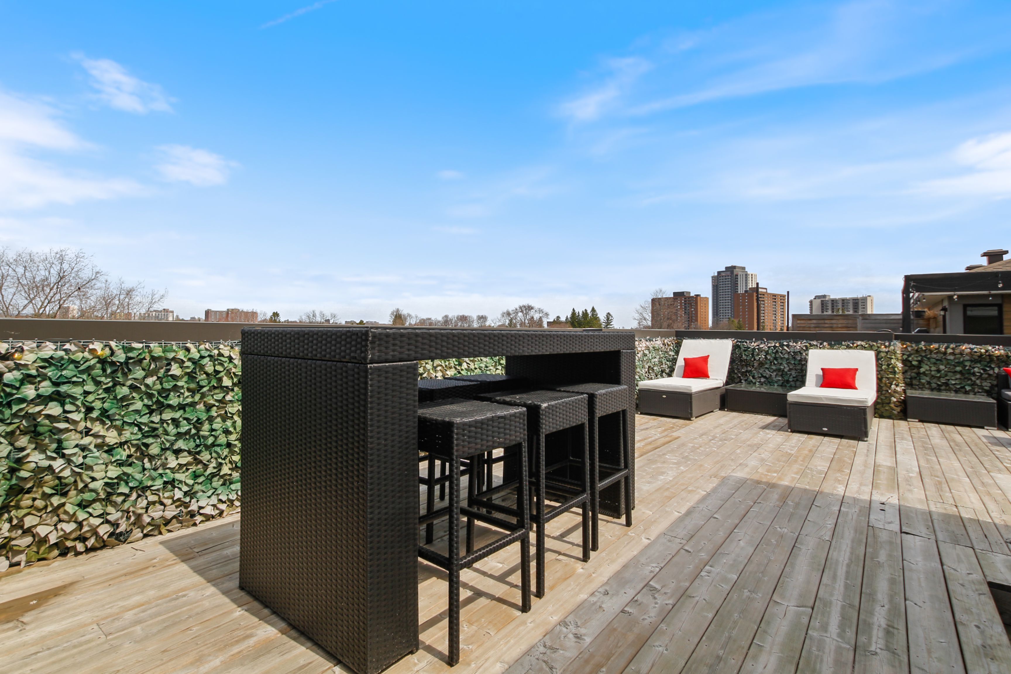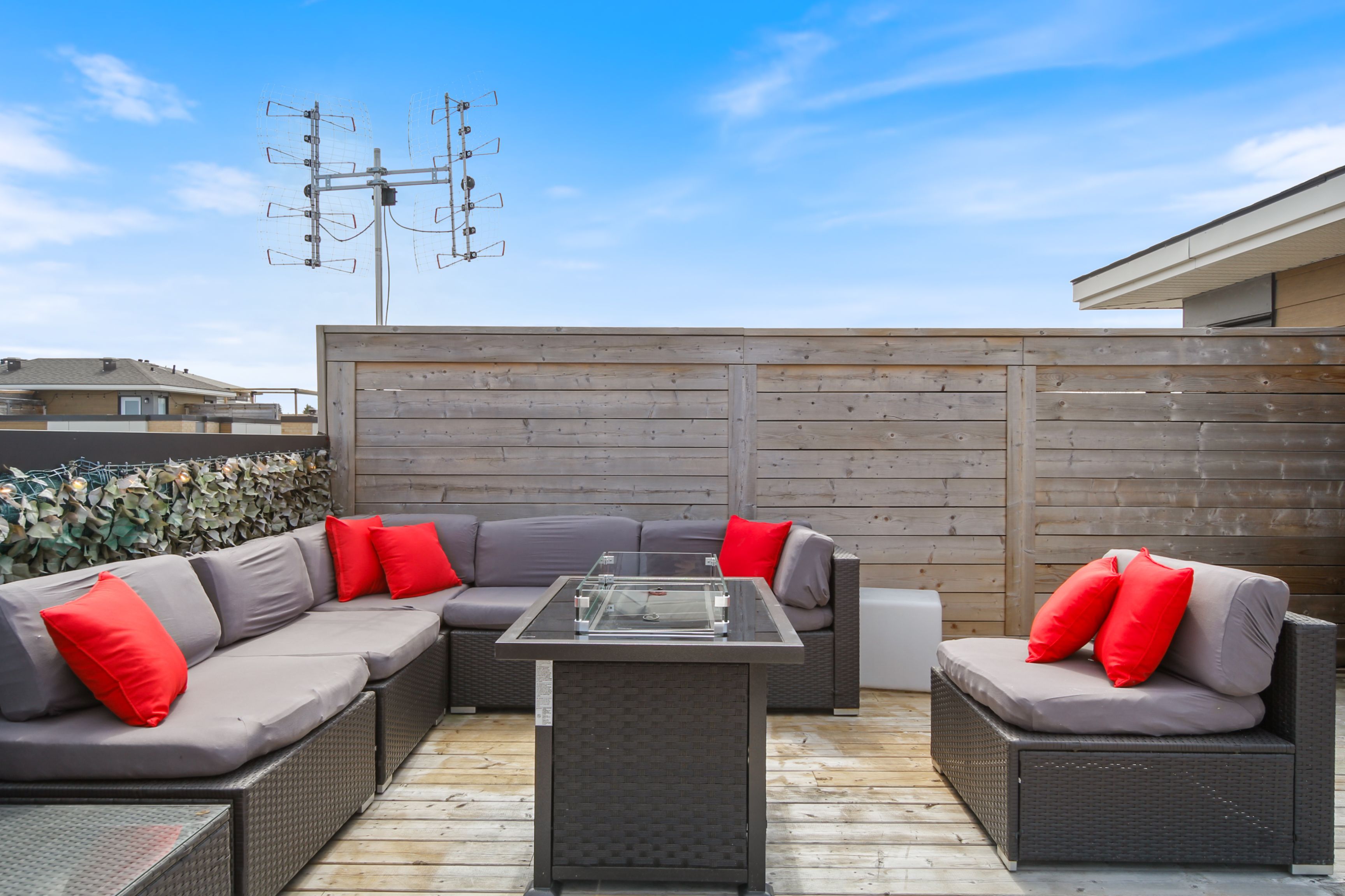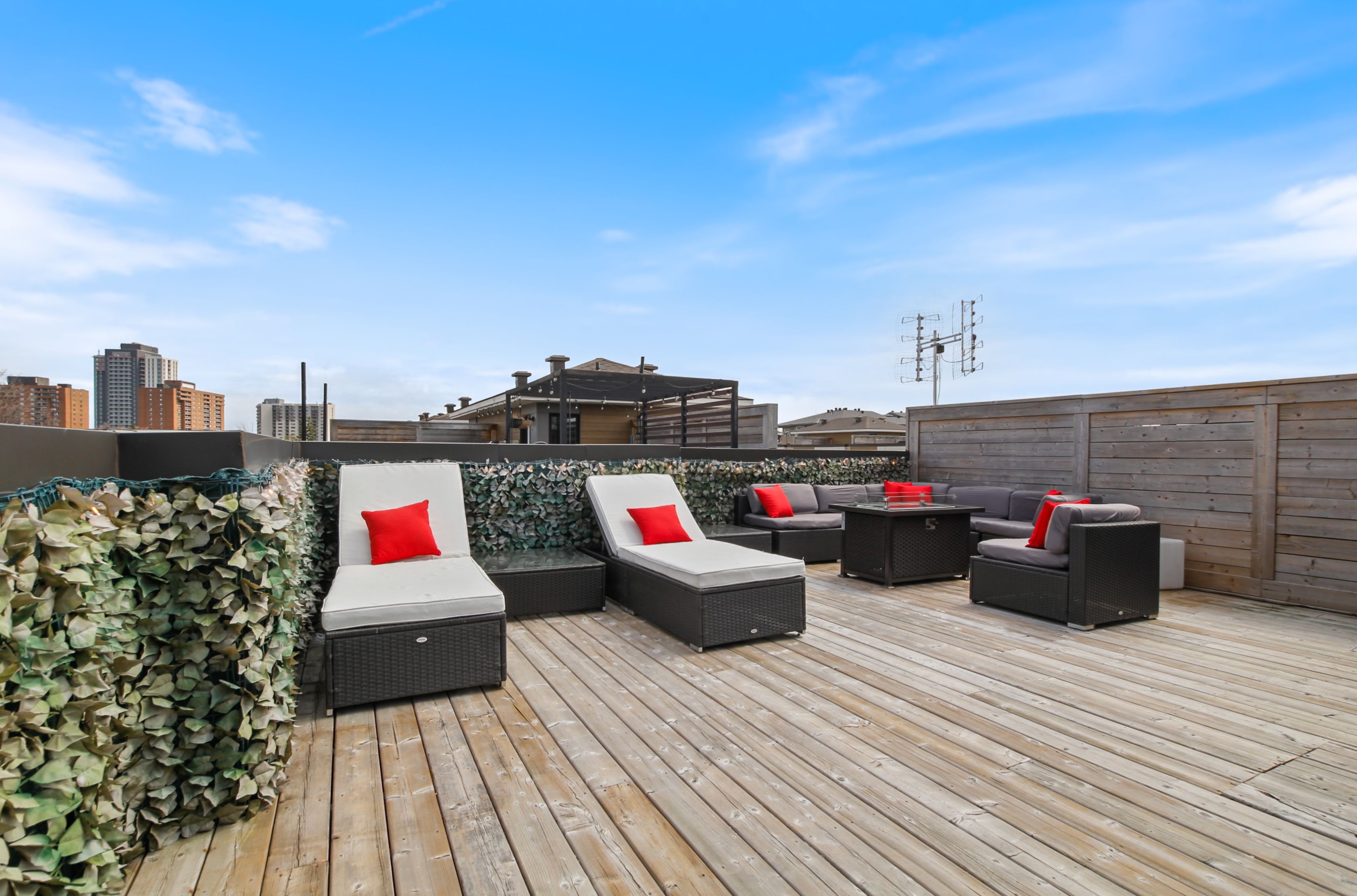 Experience elevated living in this beautifully designed end unit where style and functionality come together seamlessly. From the moment you enter, you're greeted by a bright, welcoming foyer featuring a versatile office or den and a convenient powder room-ideal for both work and everyday living. The second level offers a thoughtfully designed open-concept layout that effortlessly connects the kitchen, dining, and living areas-perfect for entertaining or relaxing at home. The kitchen is truly the heart of the space, showcasing modern finishes, ample cabinetry, and an efficient layout that balances form and function. Expansive windows fill the home with natural light, creating a warm and inviting atmosphere throughout. Upstairs, the primary suite provides a peaceful retreat, complete with a walk-in closet and a well-appointed ensuite. Two additional bedrooms and a full bathroom offer flexibility for family, guests, or additional workspace. The top level features a stunning rooftop terrace designed for exceptional outdoor living. Complete with greenery, ambient lighting, and a gas hookup for your bbq, this private space is perfect for entertaining or unwinding while enjoying panoramic views and long summer evenings. Thoughtfully maintained, this home reflects pride of ownership in every detail. The landscaped front yard offers a low-maintenance lifestyle without compromising curb appeal. Ideally located close to schools, shopping, and everyday amenities, this property delivers the perfect blend of comfort, convenience and modern design. A truly exceptional opportunity you won't want to miss. Association fee $121. 72/month. Property is video monitored. Open house saturday april 25, 2026 2-4pm