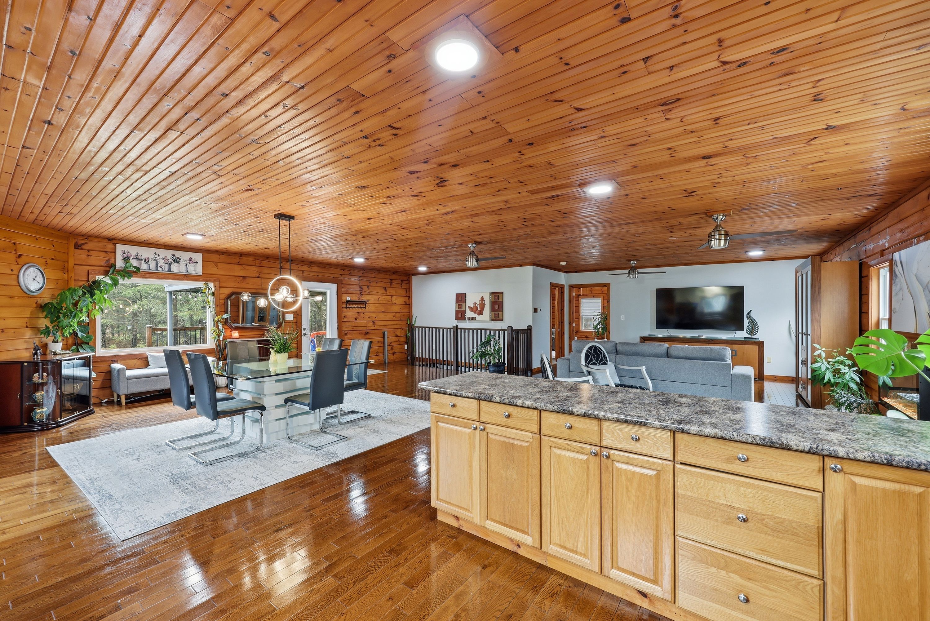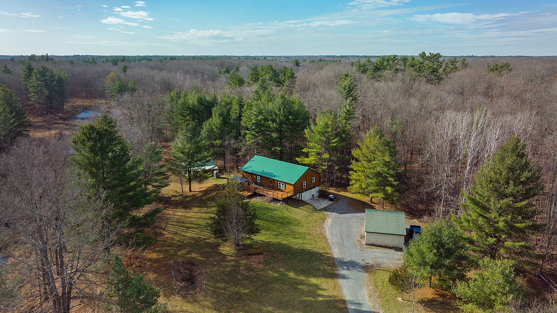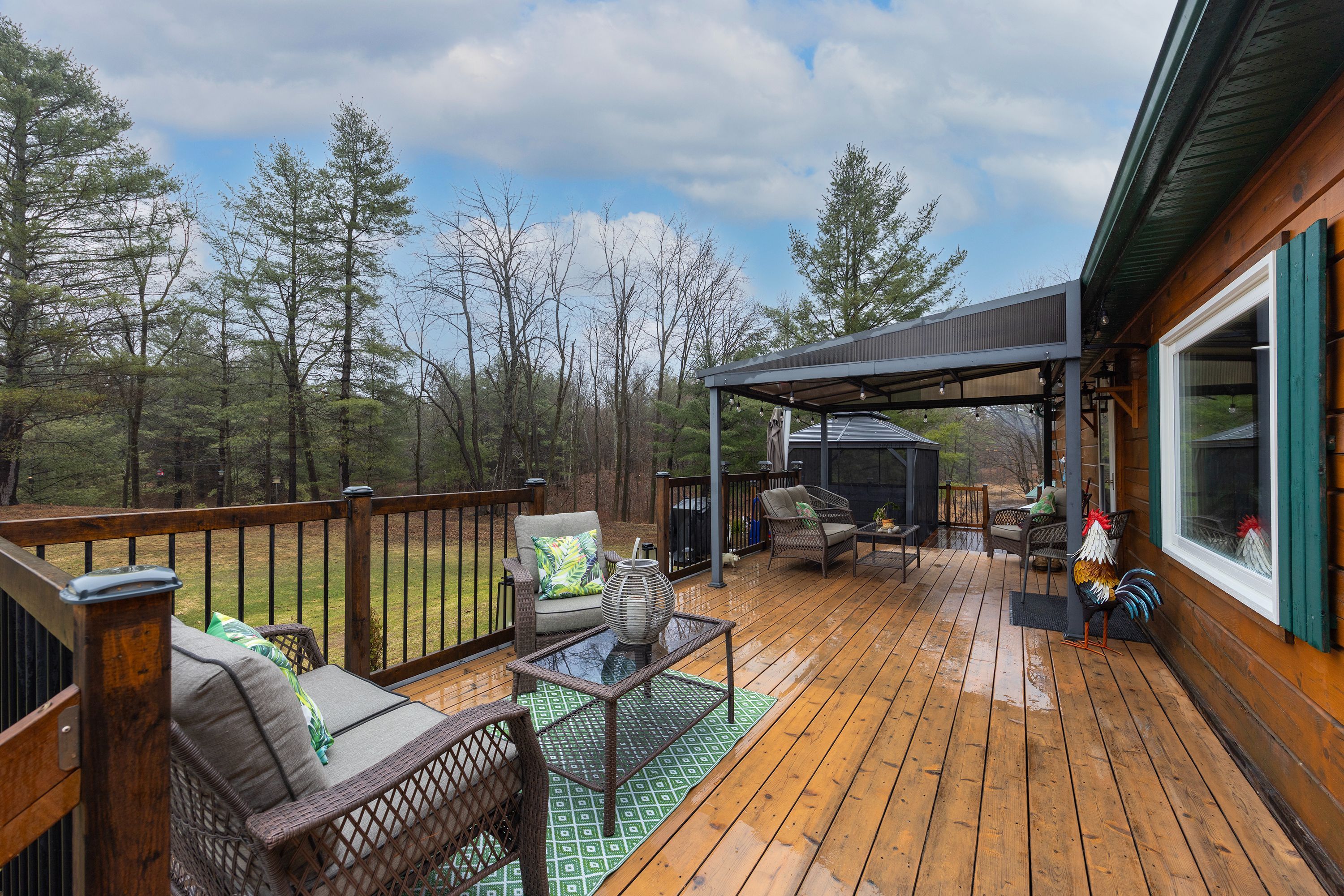 Welcome to your own private escape-59 acres of wooded paradise complete w/serene ponds, winding trails, and abundant wildlife. This exceptional property is a dream for nature lovers, offering unmatched privacy just 35 mins. From kingston and mins. To frontenac provincial park. A beautiful square log home sits among the trees. Main level features open-concept design where the kitchen, dining, and living areas flow seamlessly together. Expansive windows at both front and rear invite the outdoors in, showcasing breathtaking views in every season. Spacious w/i pantry adds convenience to the kitchen offering ample cabinetry and working counter space. Large primary bdrm. Offers a true retreat with a w/i closet, cheater ensuite, and direct access to a private balcony. M/f laundry offers added convenience. Fully finished lower level w/walkout is suited for an in-law suite or extended family living. Includes partial kitchen, two bdrms., generous full bathroom, separate laundry, and cozy living area w/wood stove. The walkout patio door allows you to enjoy outdoor views. A separate entrance offers convenient access to parking. Outdoors, the possibilities are endless. Enjoy the expansive front deck, unwind in the hot tub (as is), or explore your own network of private trails. A detached double car garage and an impressive insulated, heated quonset hut with car hoist provide incredible space for hobbies and storage. Additional features include a new chicken coop, dedicated workshop, wood storage, large open shelter and an outdoor wood-burning furnace. Wildlife enthusiasts will appreciate the frequent visits from deer and other wildlife. There is access to 12 lakes within a 15-min. Drive, this property is a rare opportunity to experience the best of rural living without sacrificing convenience. Recent updates include a new propane furnace (2024), outdoor wood furnace (2019), and central a/c (2020). A truly unique offering -where privacy, nature, and lifestyle come together.