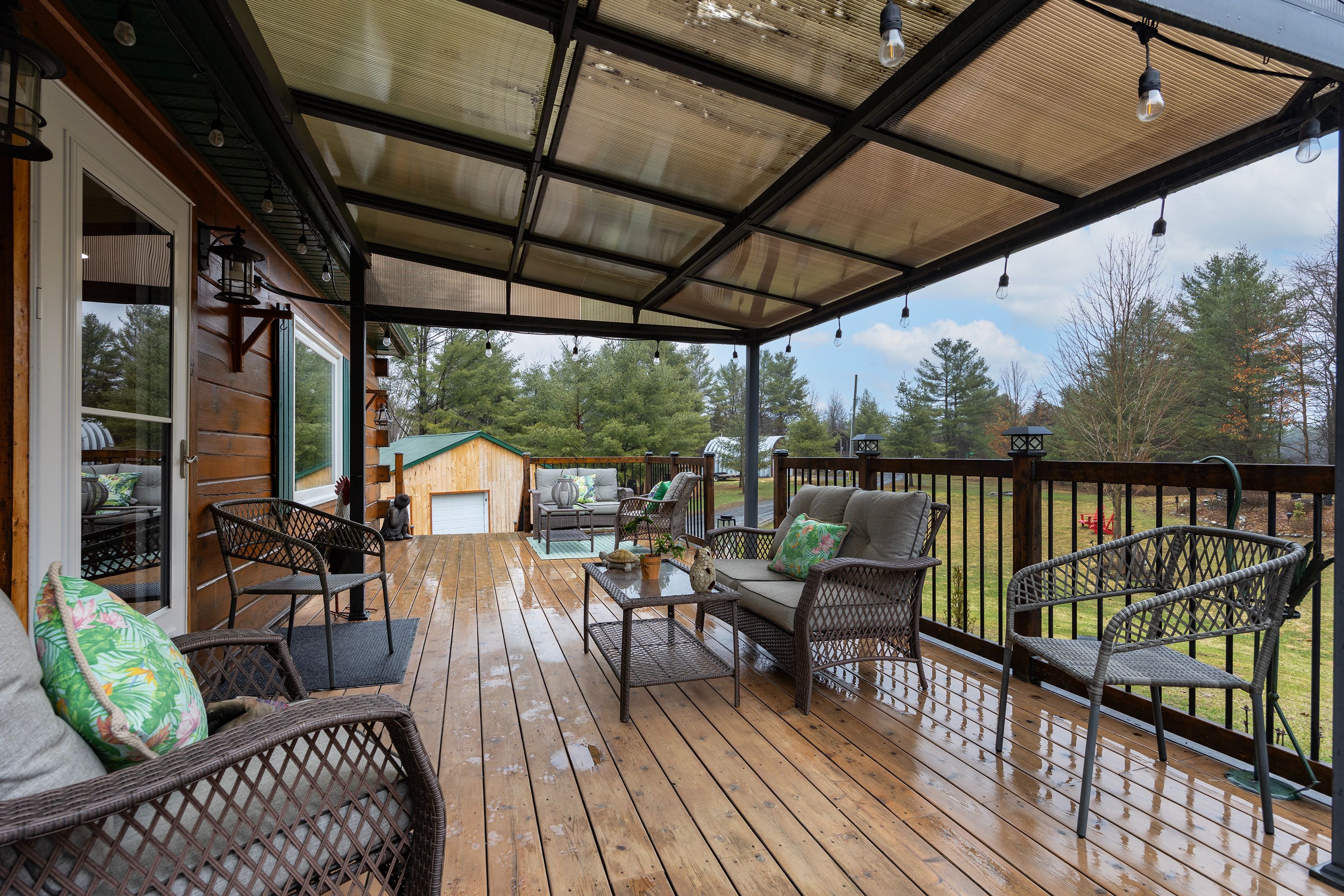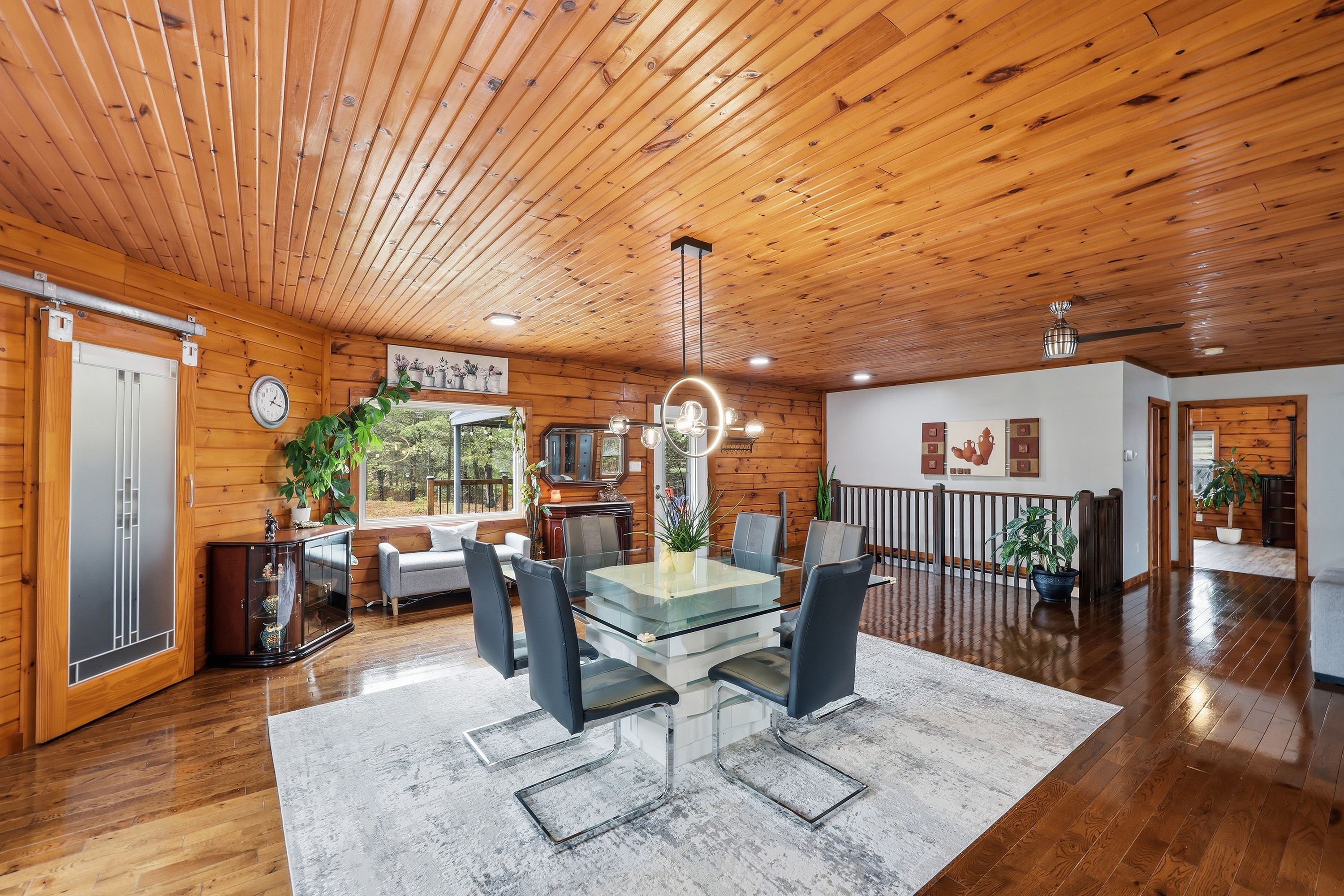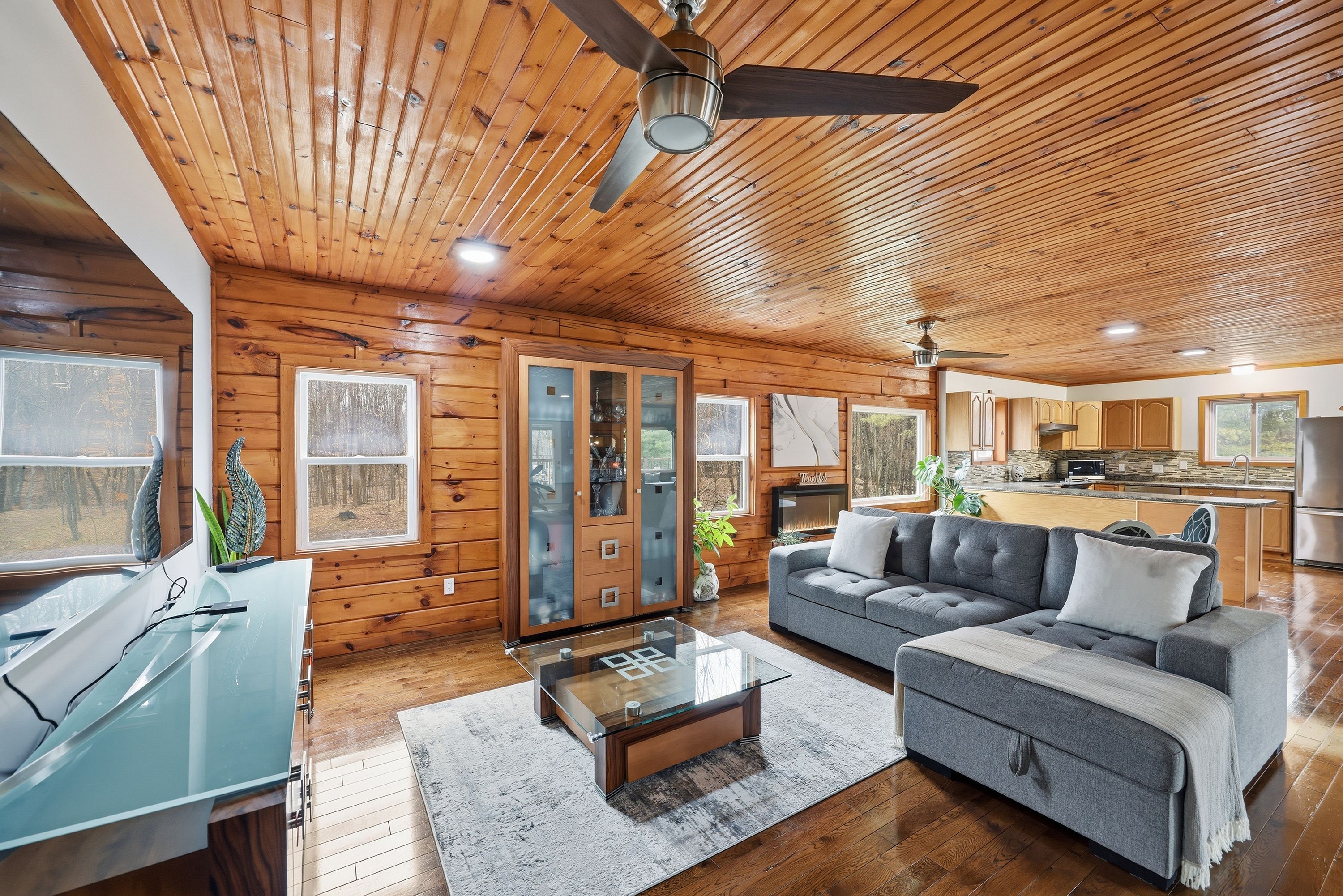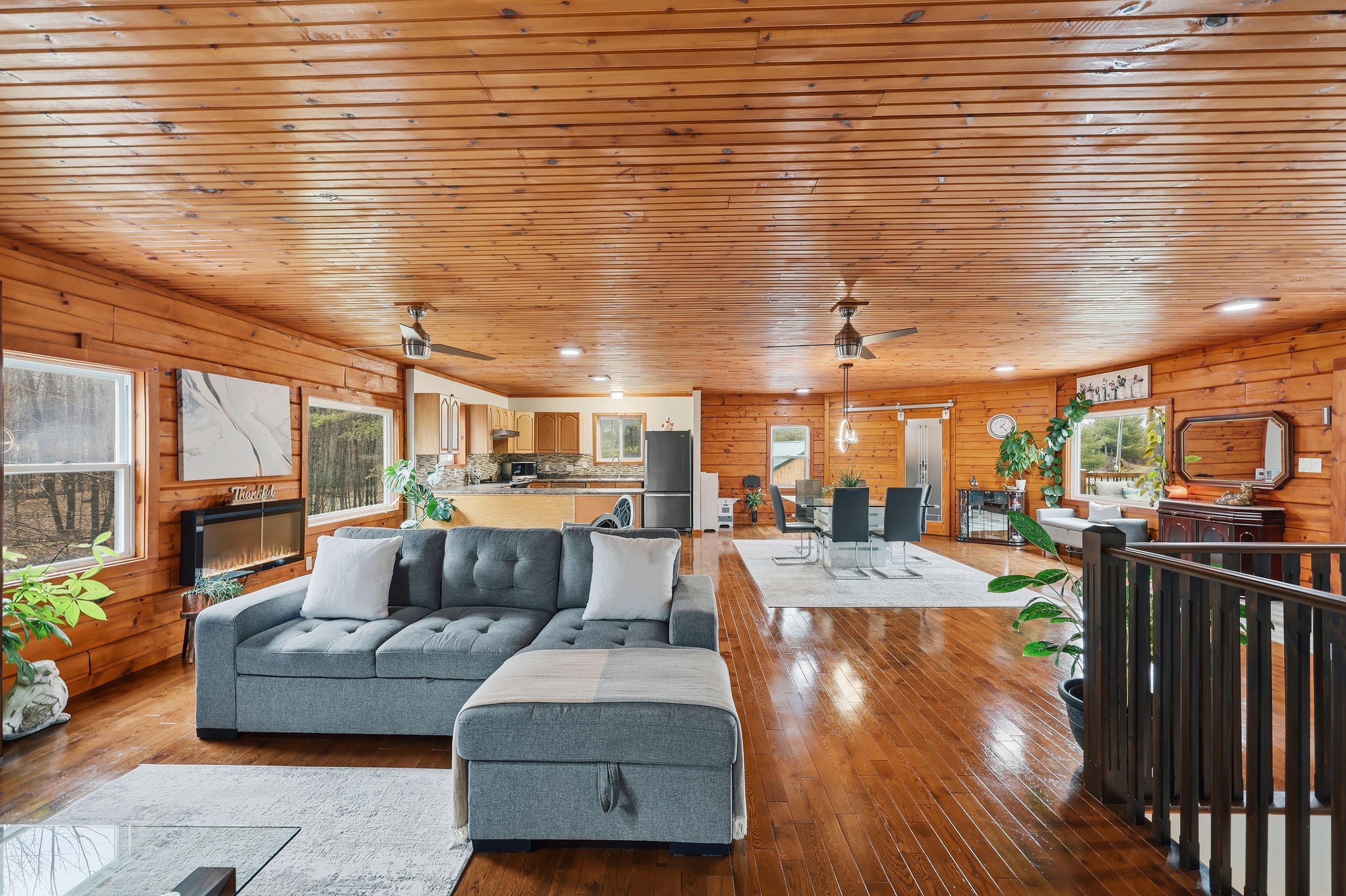 Welcome to your own private escape-59 acres of wooded paradise complete w/serene ponds, winding trails, and abundant wildlife. This exceptional property is a dream for nature lovers, offering unmatched privacy just 35 mins. From kingston and mins. To frontenac provincial park. A beautiful square log home sits among the trees. Main level features open-concept design where the kitchen, dining, and living areas flow seamlessly together. Expansive windows at both front and rear invite the outdoors in, showcasing breathtaking views in every season. Spacious w/i pantry adds convenience to the kitchen offering ample cabinetry and working counter space. Large primary bdrm. Offers a true retreat with a w/i closet, cheater ensuite, and direct access to a private balcony. M/f laundry offers added convenience. Fully finished lower level w/walkout is suited for an in-law suite or extended family living. Includes partial kitchen, two bdrms., generous full bathroom, separate laundry, and cozy living area w/wood stove. The walkout patio door allows you to enjoy outdoor views. A separate entrance offers convenient access to parking. Outdoors, the possibilities are endless. Enjoy the expansive front deck, unwind in the hot tub (as is), or explore your own network of private trails. A detached double car garage and an impressive insulated, heated quonset hut with car hoist provide incredible space for hobbies and storage. Additional features include a new chicken coop, dedicated workshop, wood storage, large open shelter and an outdoor wood-burning furnace. Wildlife enthusiasts will appreciate the frequent visits from deer and other wildlife. There is access to 12 lakes within a 15-min. Drive, this property is a rare opportunity to experience the best of rural living without sacrificing convenience. Recent updates include a new propane furnace (2024), outdoor wood furnace (2019), and central a/c (2020). A truly unique offering -where privacy, nature, and lifestyle come together.