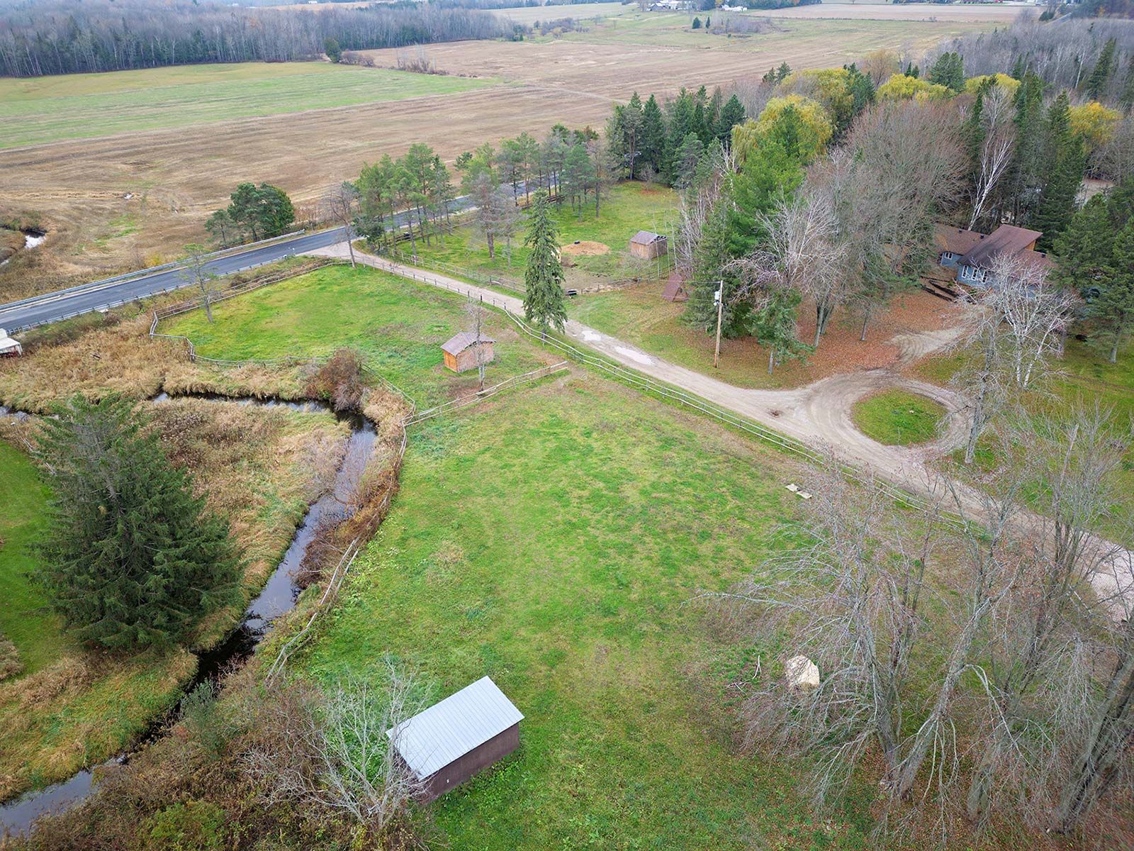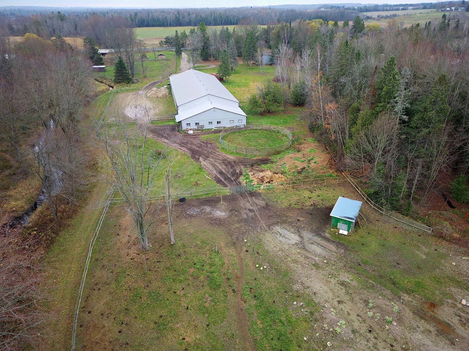 Welcome to an exceptional opportunity to own a unique bungalow featuring two side-by-side separate units, nestled on approximately 20 acres of breathtaking flat land. This expansive property is not just a home; it's a sanctuary for those who appreciate nature and the outdoors. As you explore the land, you'll discover an amazing 12-stall barn and another 6-stall barn behind the riding ring! Yes!! A 60 ft 120 ft riding ring provides the perfect space for year-round riding, training, and events regardless of the weather. Ideal for horse lovers and animal lovers alike. A gorgeous stream gracefully winds its way through the east side of the property, adding to the serene atmosphere and offering a picturesque setting for relaxation and enjoyment. Imagine spending your afternoons by the water, surrounded by the sounds of nature and the beauty of your surroundings. With ample space, it offers incredible potential for customization or simply creating your own private retreat. The expansive land allows for numerous possibilities, whether you're looking to create a family compound or a hobby farm. Located just 11 minutes from innisfil beach, you'll have easy access to recreational activities, water sports, and stunning waterfront views. This prime location combines the tranquility of rural living with the convenience of nearby amenities. Don't miss out on this rare opportunity to make this stunning property your own! Schedule a viewing today and envision the possibilities. Your dream property awaits! See additional remarks to data form **extras** none-sold as is as per schedule "a"