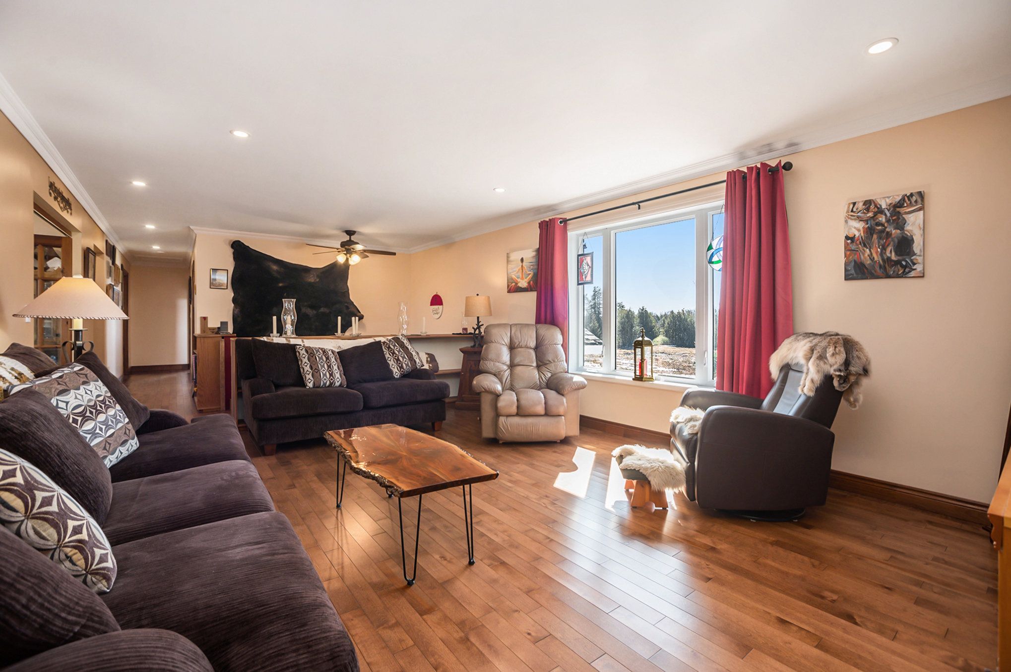 Welcome to this incredible country home nestled on over 26 acres of privacy and endless possibilities. Recent updates have made this home exceptional, including a new cedar deck off dinning room, new 200 amp electrical service, a 22 kw generac generator ensures you'll never be without power, a new steel roof with snow guards, ridge cap vent, and two maxi vents that will keep your home protected forever, a new furnace with heat pump offering efficient heating and cooling for your comfort and new gravel was spread across the driveway and parking areas along with 2 rock retaining walls. Inside, you'll be greeted by hardwood flooring that flows seamlessly throughout the entire home, creating an inviting and elegant atmosphere. Freshly painted from top to bottom, this home feels brand new and ready for you to move in and make it your own. The beautiful living room exudes warmth and comfort and opens to a huge family room that's ideal for relaxing or entertaining, with a cozy wood stove that adds a touch of rustic charm. The heart of the home is the kitchen, which has been completely renovated with custom cabinets and equipped with newer appliances and a garburator for convenience. Attached to kitchen is a charming dining area, perfect for family meals, also features a spacious laundry room and large pantry for all your storage needs. The master bedroom features a walk-in closet and ensuite bathroom for your privacy. Both bathrooms have been completely renovated to offer a fresh, modern feel. The basement is a blank canvas with endless potential, this expansive space can be transformed into anything your heart desires whether its a home theater, gym or extra bedrooms. The double-car attached garage provides inside entry to the basement. For the outdoor enthusiast, the property features a cleared trail around the perimeter, complete with two bridges. You'll love spending time outdoors on the newly built 30x12 patio, perfect for enjoying those peaceful country evenings.