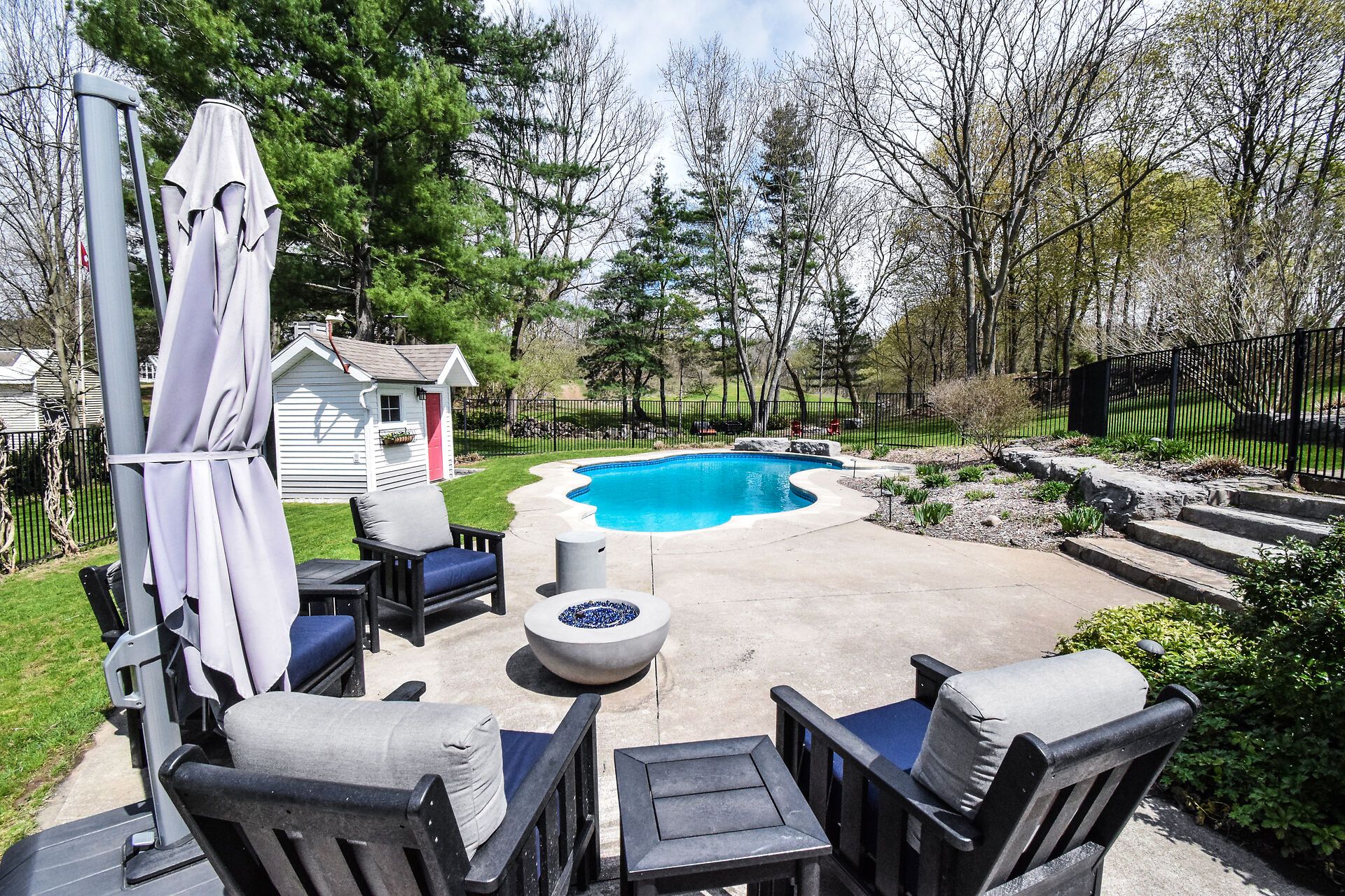 One of a kind!! Located in one of the most sought-after locations in pelham. This impressive 5 bedroom, 5 bathroom, 1. 15 acre estate home will astound you with breath-taking finishes. Gourmet eat in kitchen with restaurant style, built-in fridge, 5 burner gas cook top, built in double oven, large island prep area, leading to a unique under window cozy banquette bench seating area. Formal dining room creates an elegant environment. Relax in the bright family room with wood burning fireplace, cathedral ceiling, skylights. Pluses include main floor mud/laundry, walk in pantry, 3 season sunroom with views & access to a backyard oasis, hardwood & porcelain flooring throughout, whole-home water softening with chlorine removal, reverse osmosis drinking water. Main floor primary bedroom suite with cozy sitting room &fireplace, 5 pc ensuite with soaking tub, double vanities, large glass shower and walk in closet. Upstairs boasts 2 large bedrooms with ensuites, and walk in closets. Handy walk in linen closet finishes the upper level. The lower level features a large rec room with billiards area, gas fireplace, kitchenette, 2 more bedrooms and a 3 pc bathroom perfect set up for an in-law suite. From this level just walk out to your fully private backyard retreat where you will enjoy beautiful perennial gardens, heated in ground pool & bon firepit. Roast marshmallows or enjoy quiet time with your glass of wine or favourite beverage. Adding to the homes attached double car garage is an additional detached 2 car heated garage a great mancave or separate workshop. Close proximity to schools, shopping, golf courses, winery, hiking and cycling trails. Don't miss out on owning your perfect dream home!