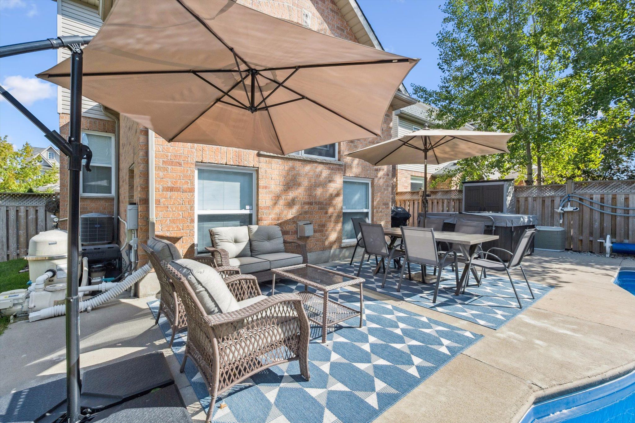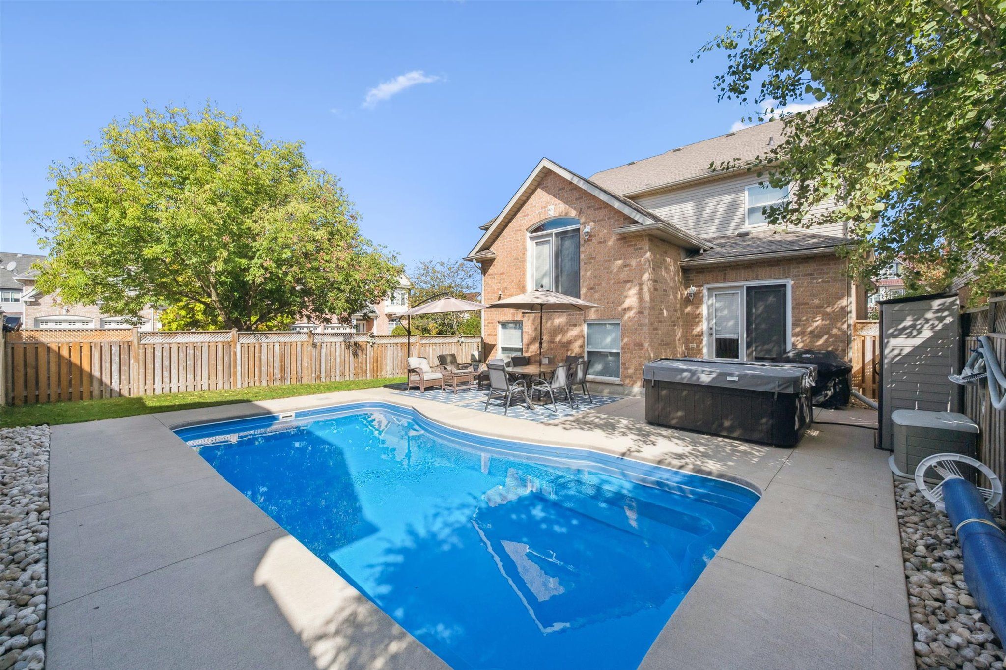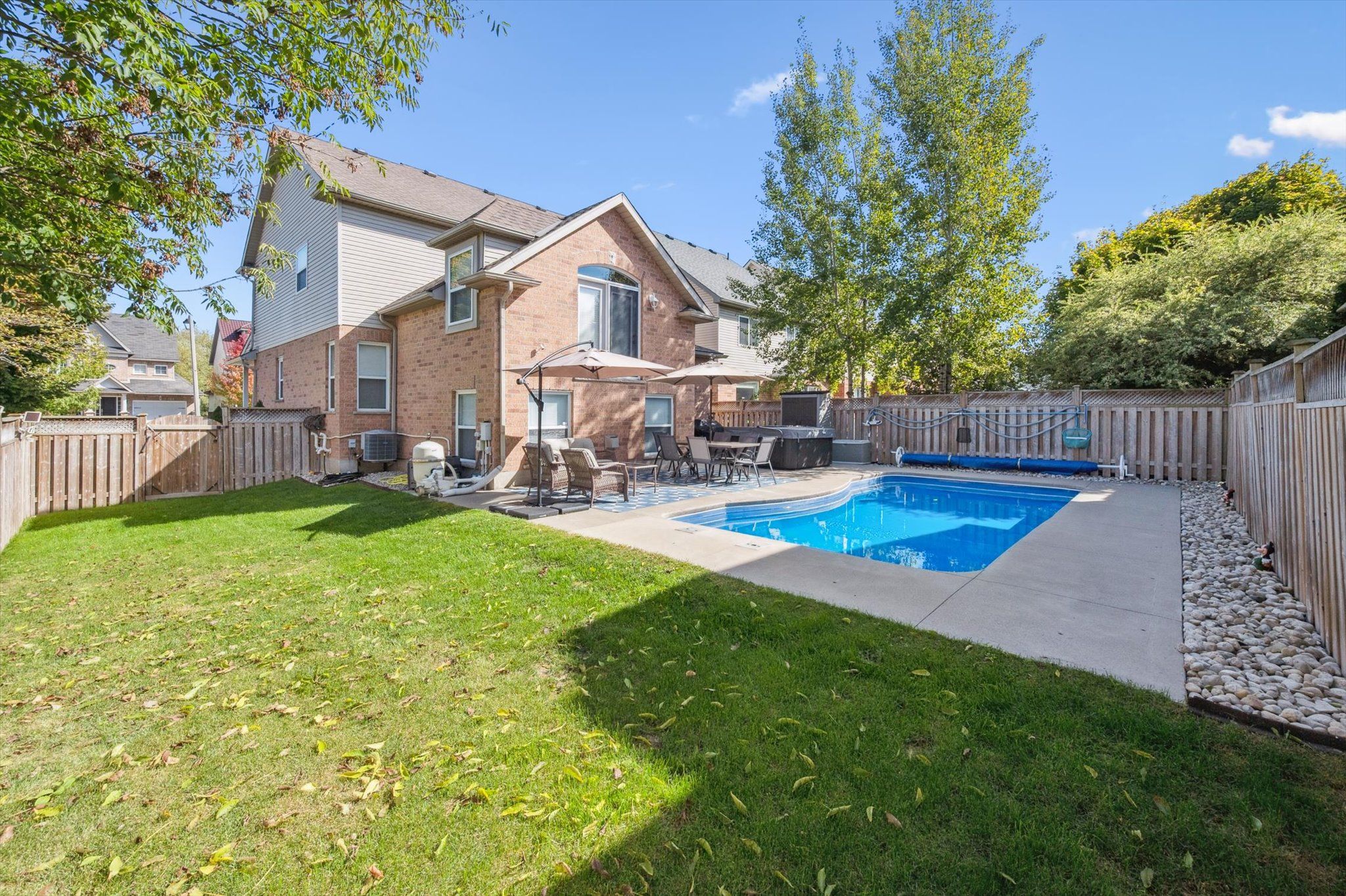 Beautifully updated terra view former model home set on a desirable corner lot in sought-after kortright west. This 4+1 bedroom, 3. 5 bathroom home offers a thoughtfully designed floor plan that truly works for modern family living. The attractive brick and stone exterior welcomes you into a bright foyer complete with a coat closet, custom built-in storage, convenient powder room, and main floor laundry. Rich hardwood flooring flows into the formal dining room - an inviting space for hosting holidays and special gatherings. The refreshed eat-in kitchen features granite countertops, stainless steel appliances, and updated finishes, while the bright breakfast area walks out to the rear yard, creating a seamless connection between indoor and outdoor living. Just steps away, the cozy lower-level living room with fireplace is the perfect place to unwind. Upstairs, the spacious family room offers incredible flexibility for movie nights, a playroom, or a quiet retreat. The generous primary suite includes a walk-in closet and dedicated ensuite with a newly updated shower. Three additional bedrooms share a beautifully renovated family bathroom complete with new quartz countertops and modern fixtures. The finished basement expands your living space even further with a fifth bedroom, a full bathroom, and a versatile bonus area ideal for a home office, gym, or recreation space. Outside, the fully fenced backyard is a private oasis. Spend summer days by the inground pool, relax in the hot tub, or entertain friends and family on the patio. Recent updates include new basement flooring, a full basement bathroom renovation, a new primary ensuite shower, new quartz countertops, sinks and faucets in the main bath and ensuite, a kitchen and powder room refresh, and fresh paint throughout. Ideally located close to hartsland market square, parks, schools, and public transit, this is the home your family has been waiting for.