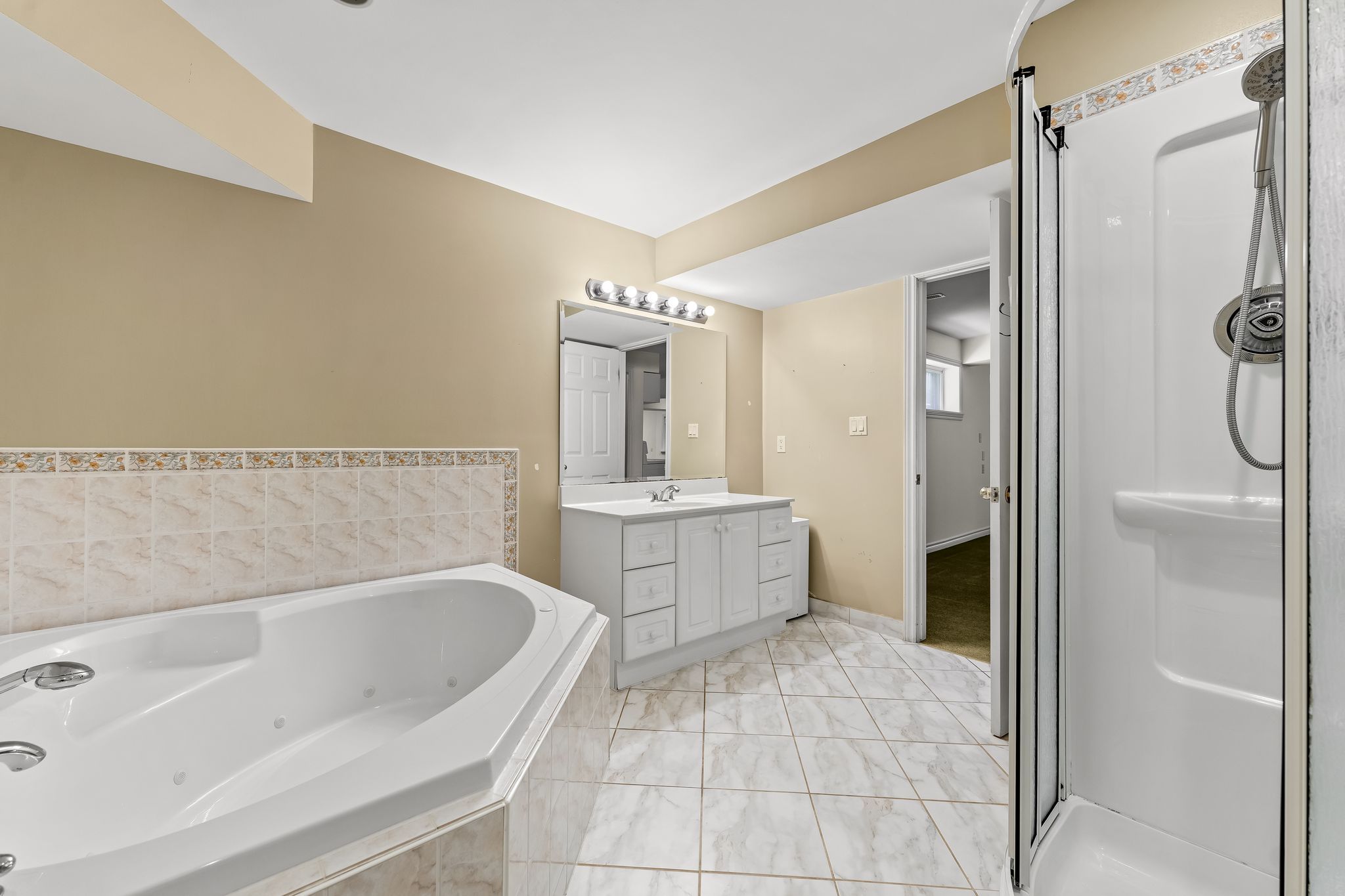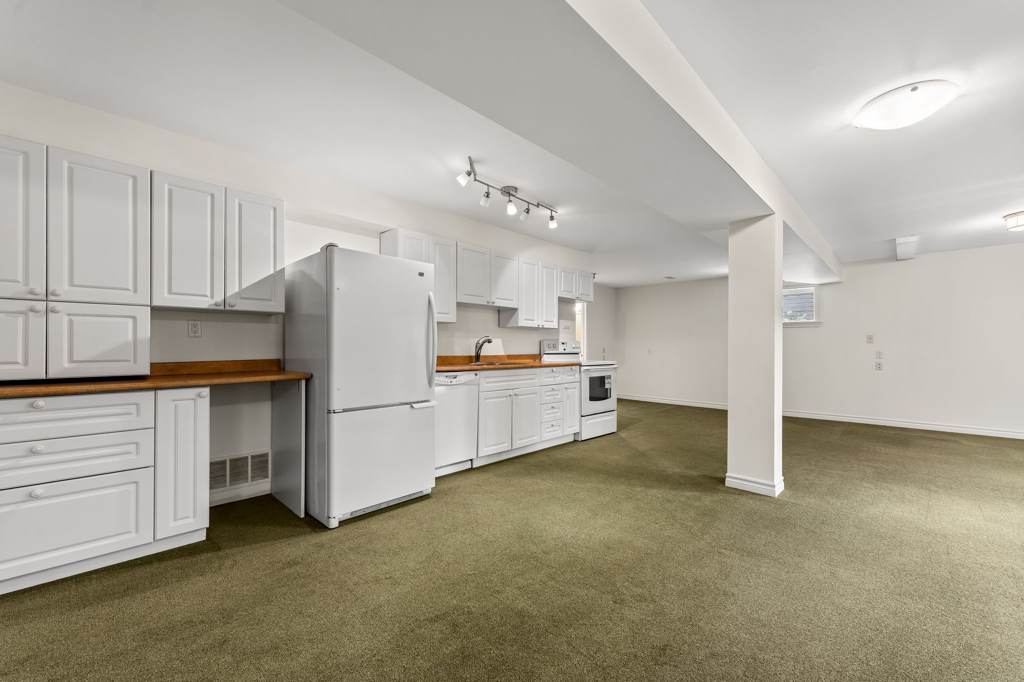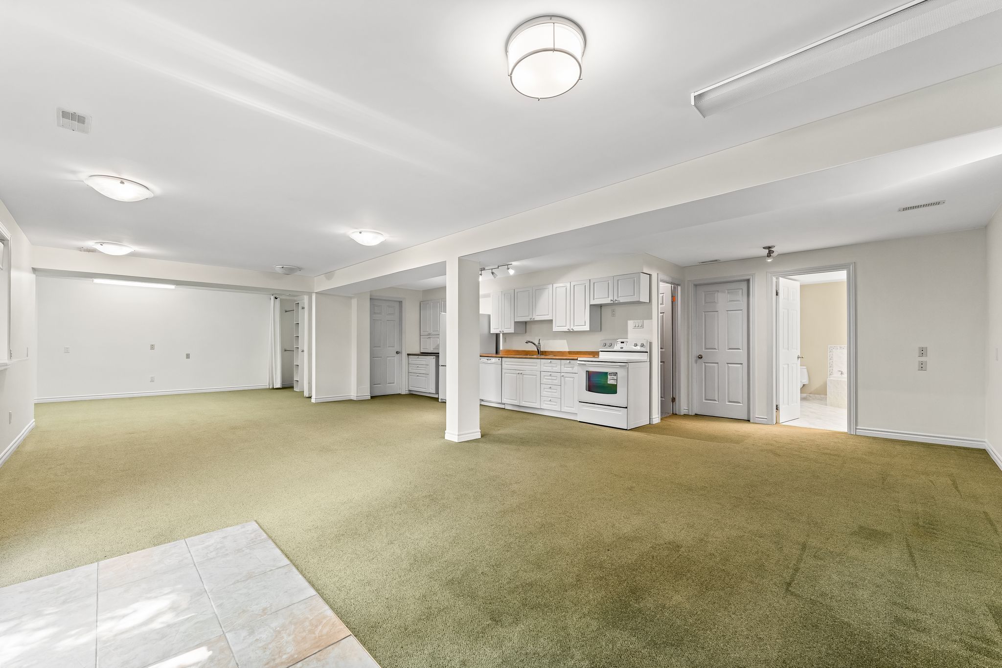 • Finished basement with family room, full kitchen, additional bedroom, and office space.