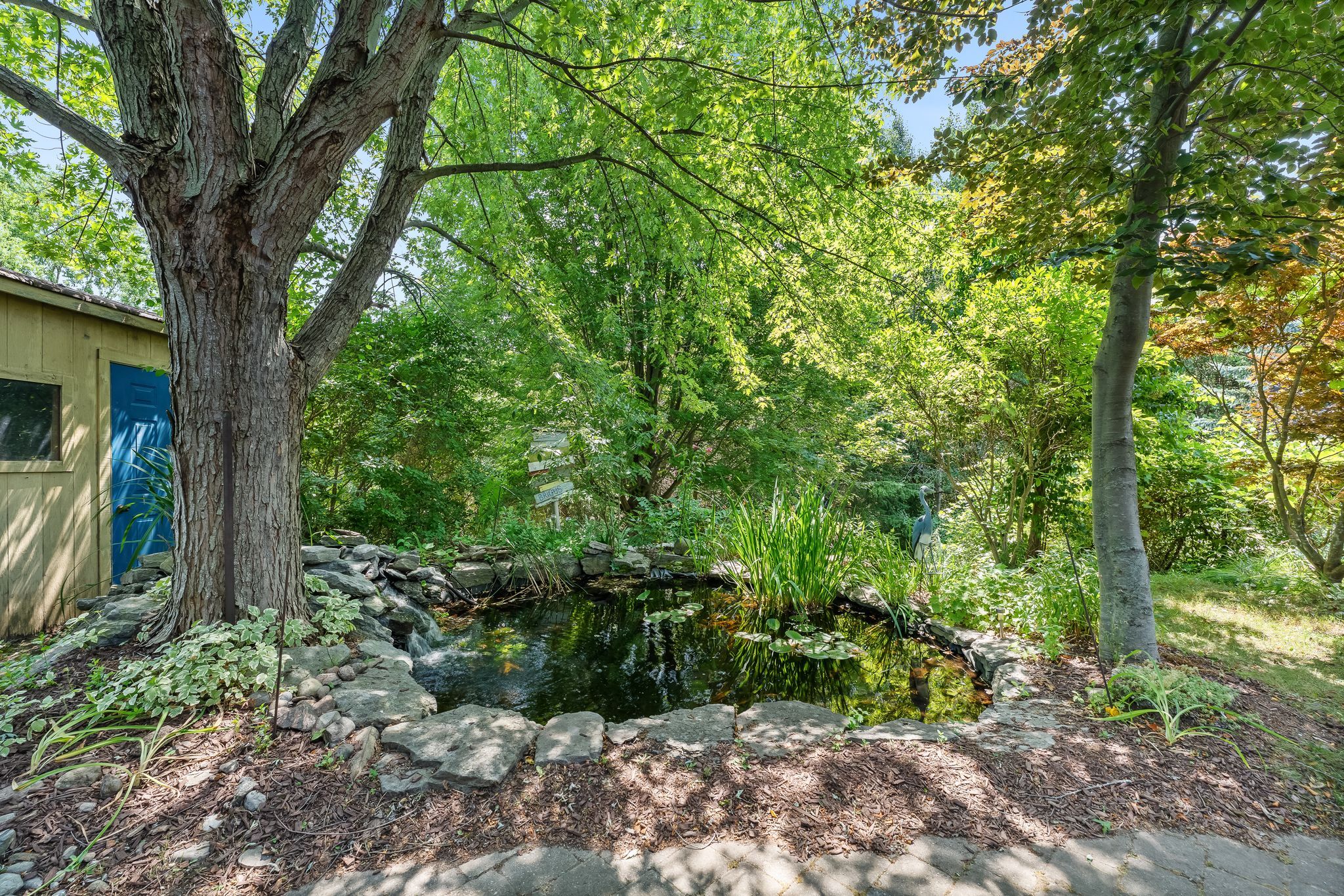 • Exterior includes a terrace, serene patio, and personal pond surrounded by gardens.