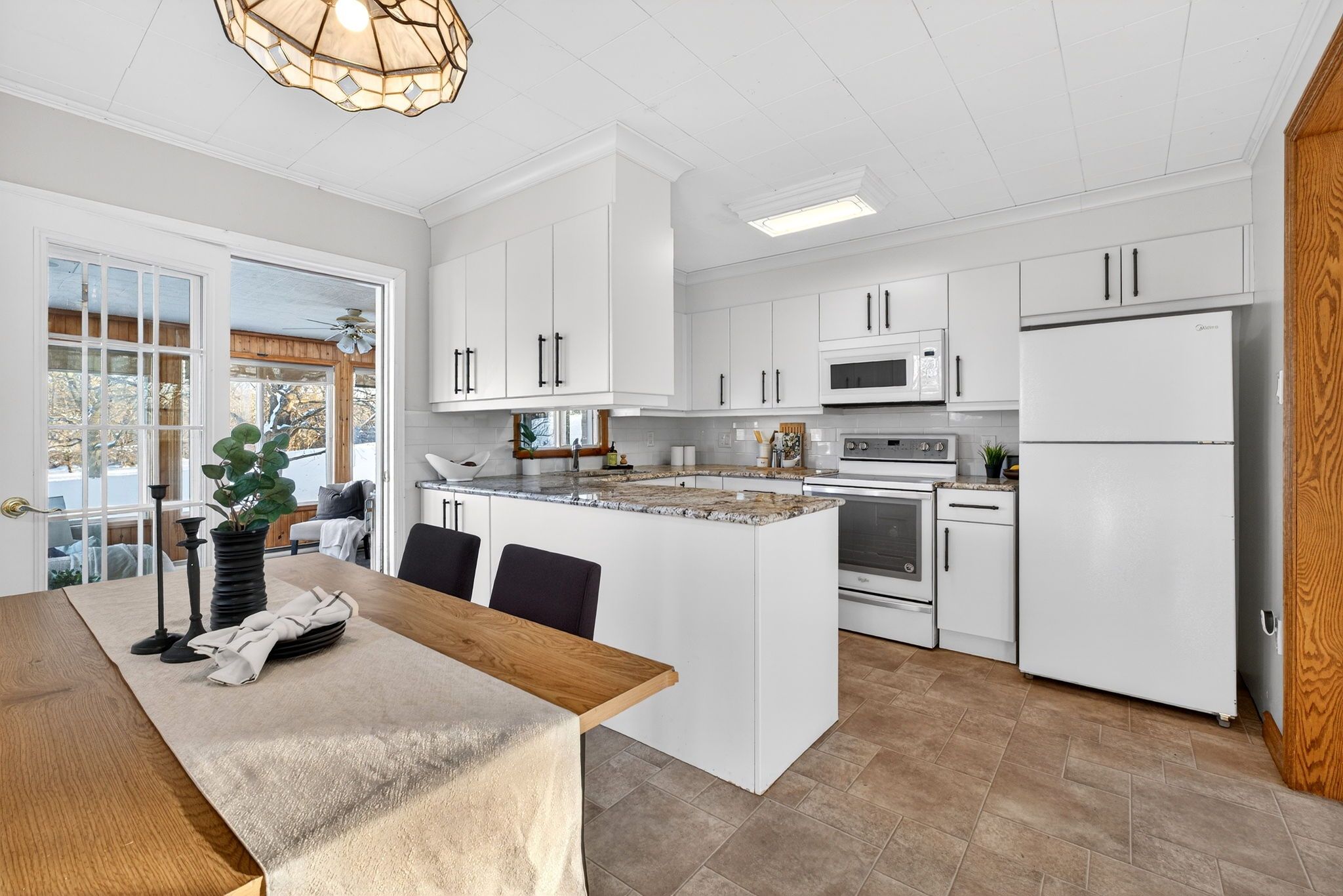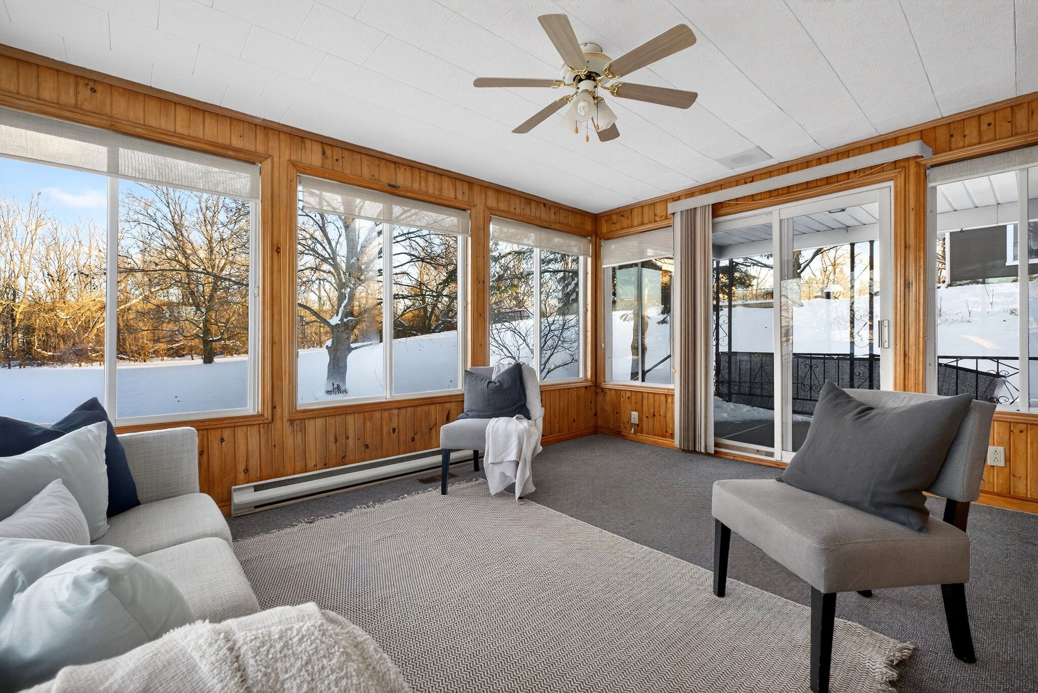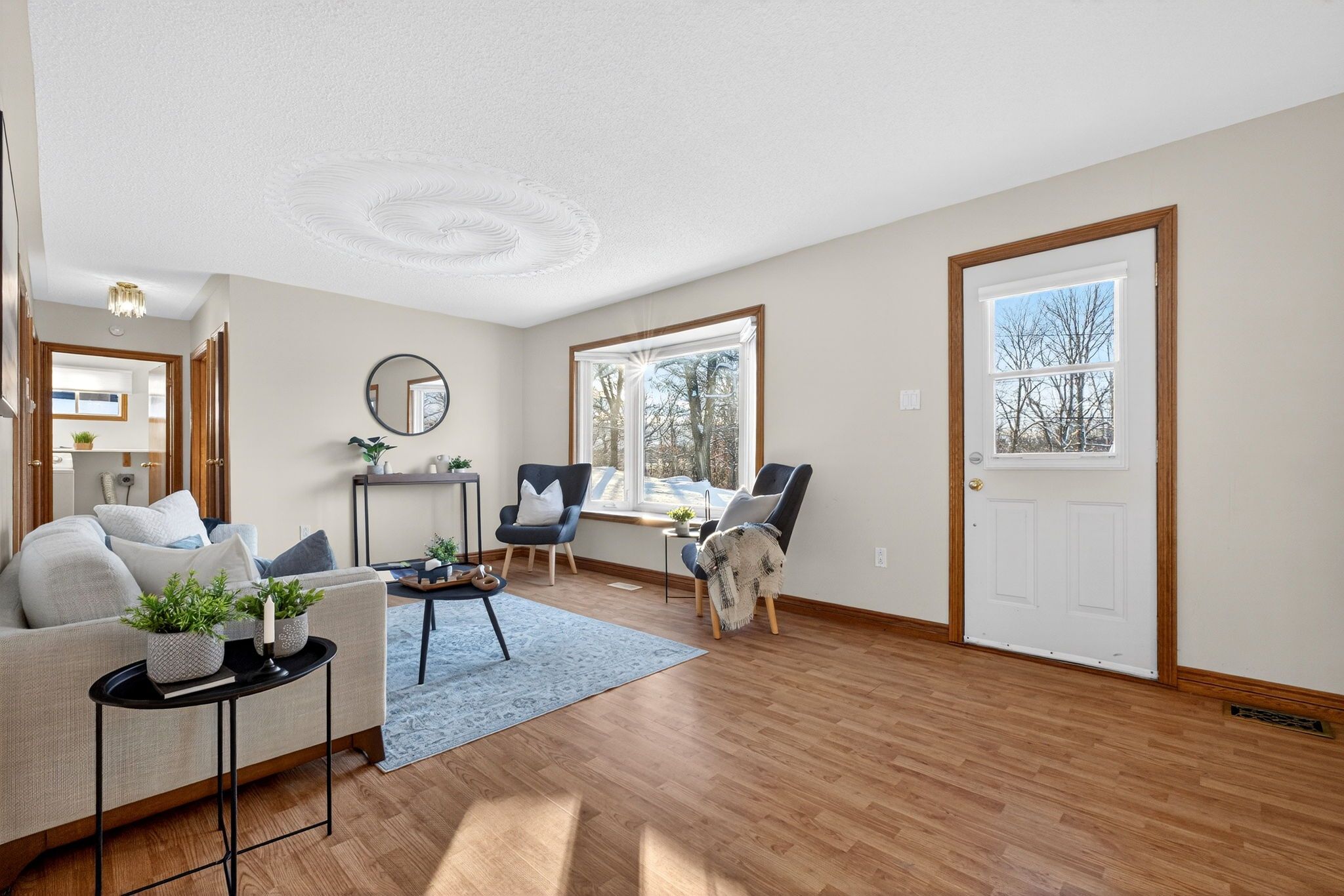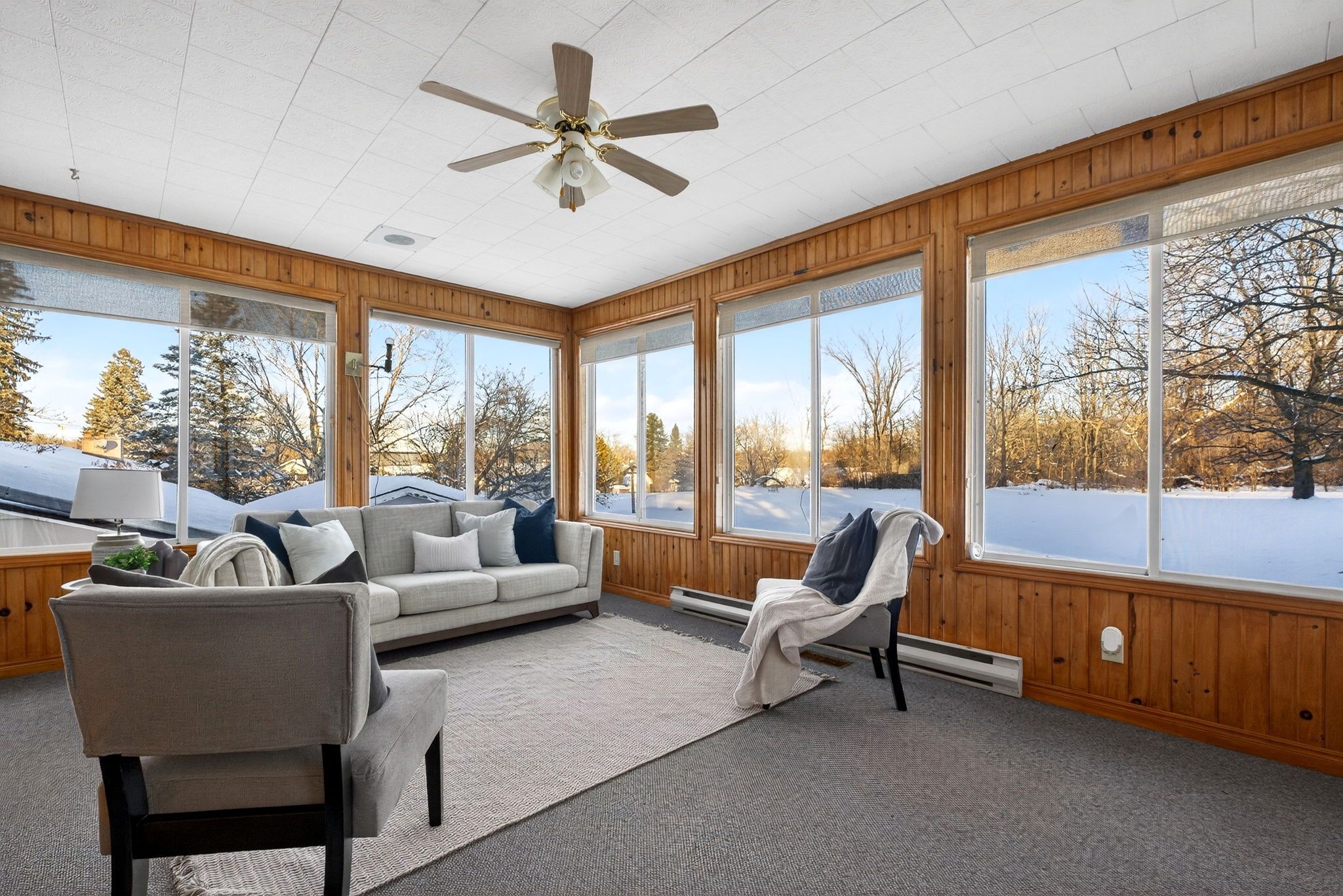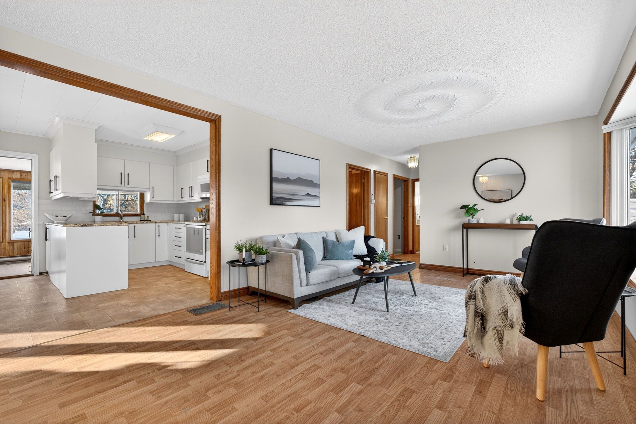 Move-in ready home offering the best of town and country living - enjoy the best of both worlds with this well-maintained, move-in ready home located at the edge of town. You are just a short walk to local walking trails and town amenities, yet surrounded by the peace, privacy, and open feel of country living. The home is bright and spacious, with an open-concept layout that connects the eat-in kitchen to the living room, making it ideal for everyday living and entertaining. A finished basement adds valuable extra space and features a cozy gas stove, perfect for relaxing evenings or hosting family and friends. Start your mornings in the three-season sun-room overlooking the large backyard, a quiet spot to enjoy coffee and fresh air. The yard offers plenty of room for kids, pets, or gardening, while still maintaining privacy. This is a comfortable, welcoming home in a great location and truly a must see.