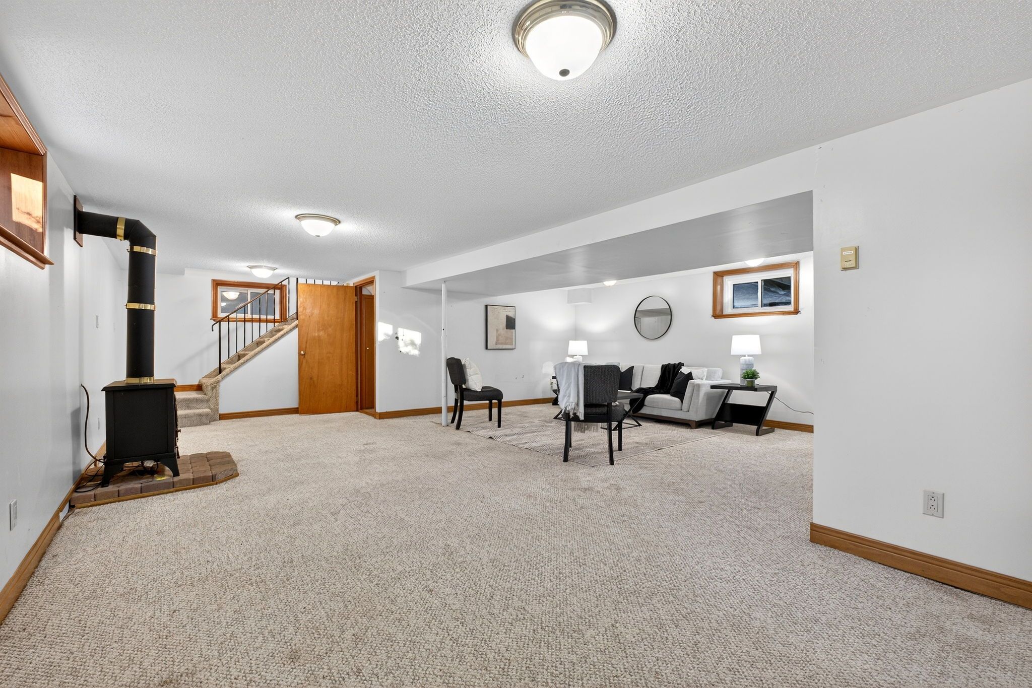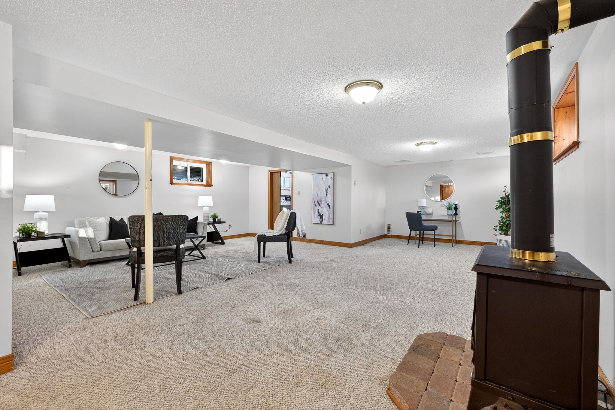 • Finished basement with a gas stove for cozy evenings and gatherings.