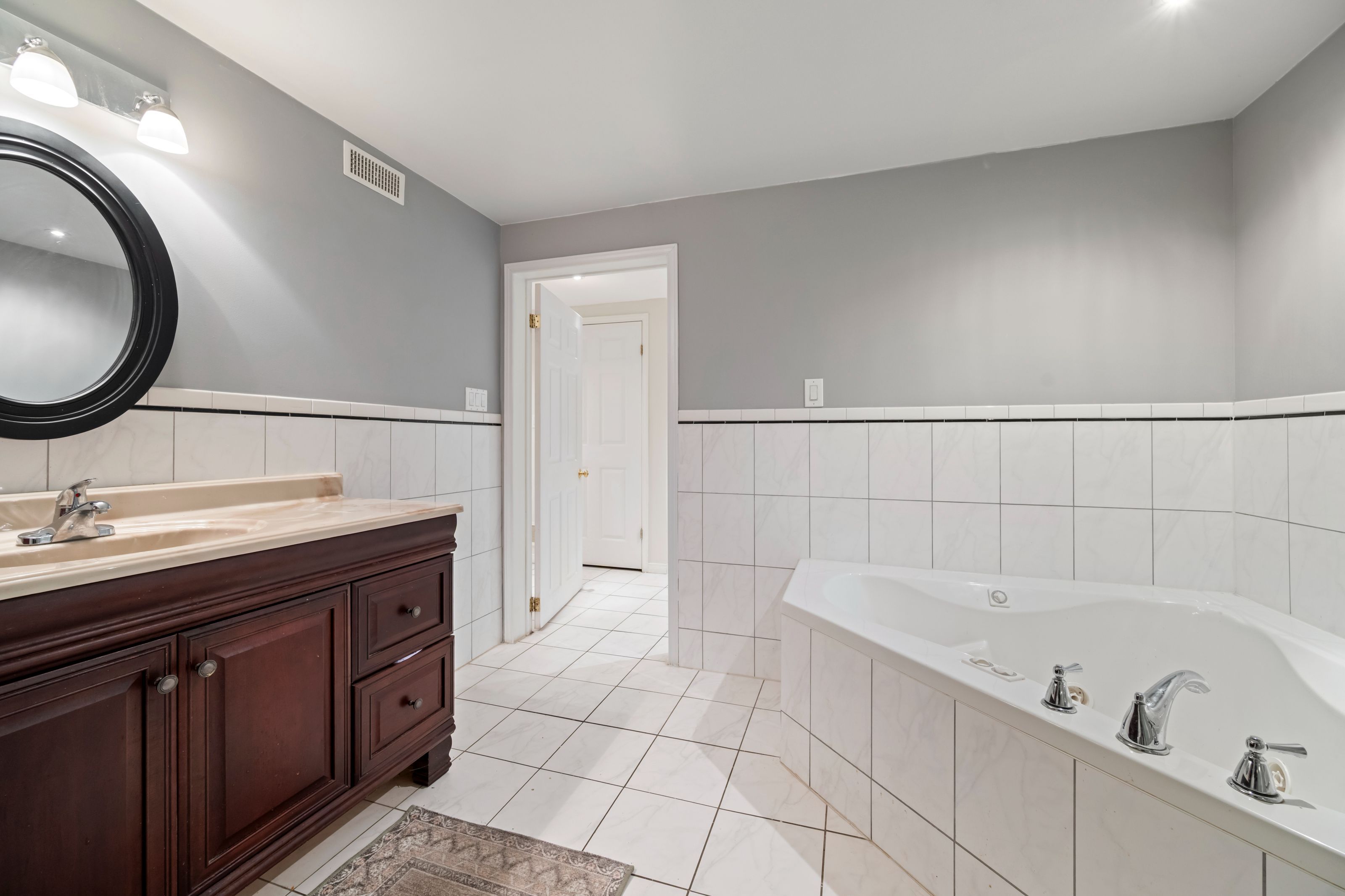 • Finished basement includes a large rec room and additional bedroom.