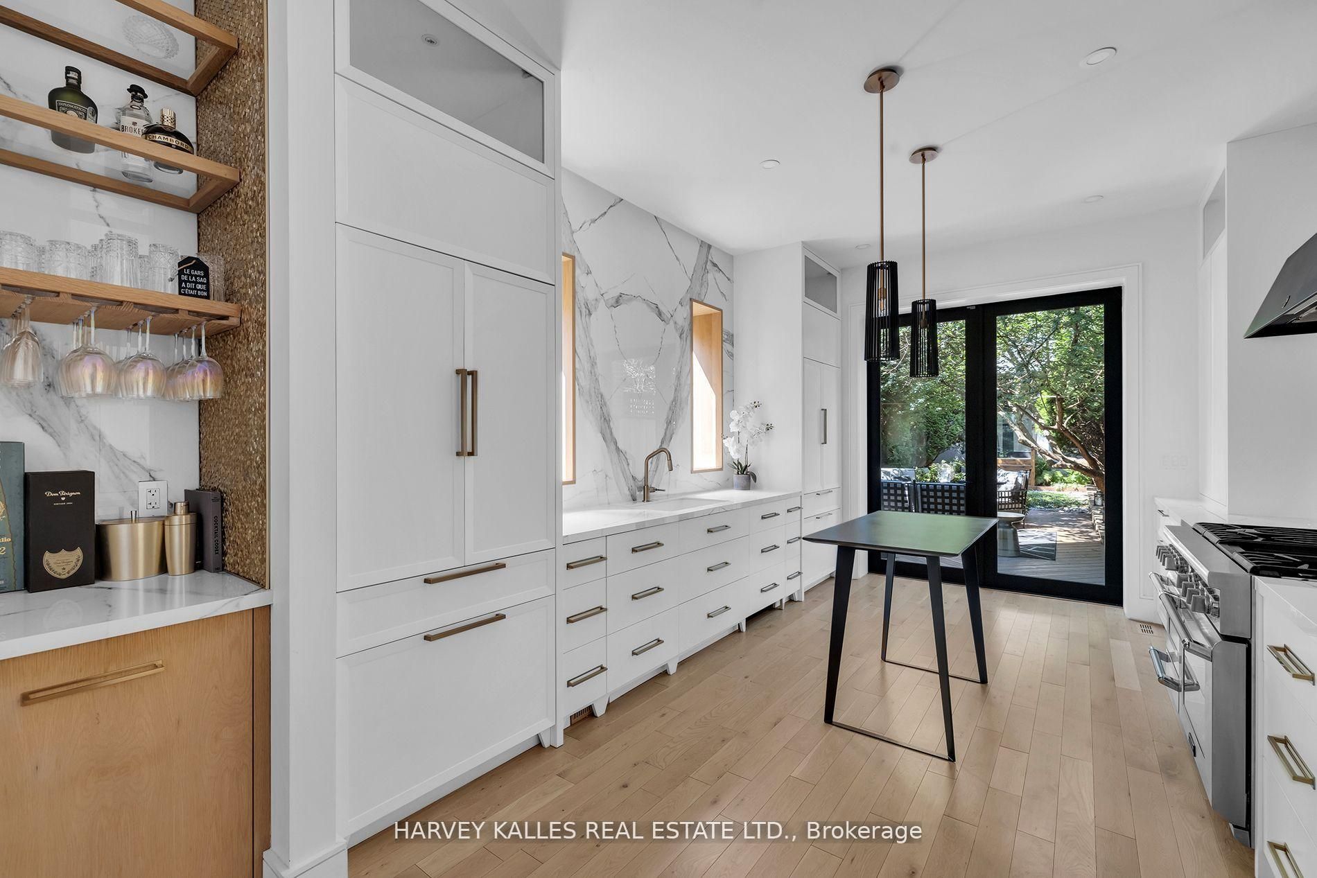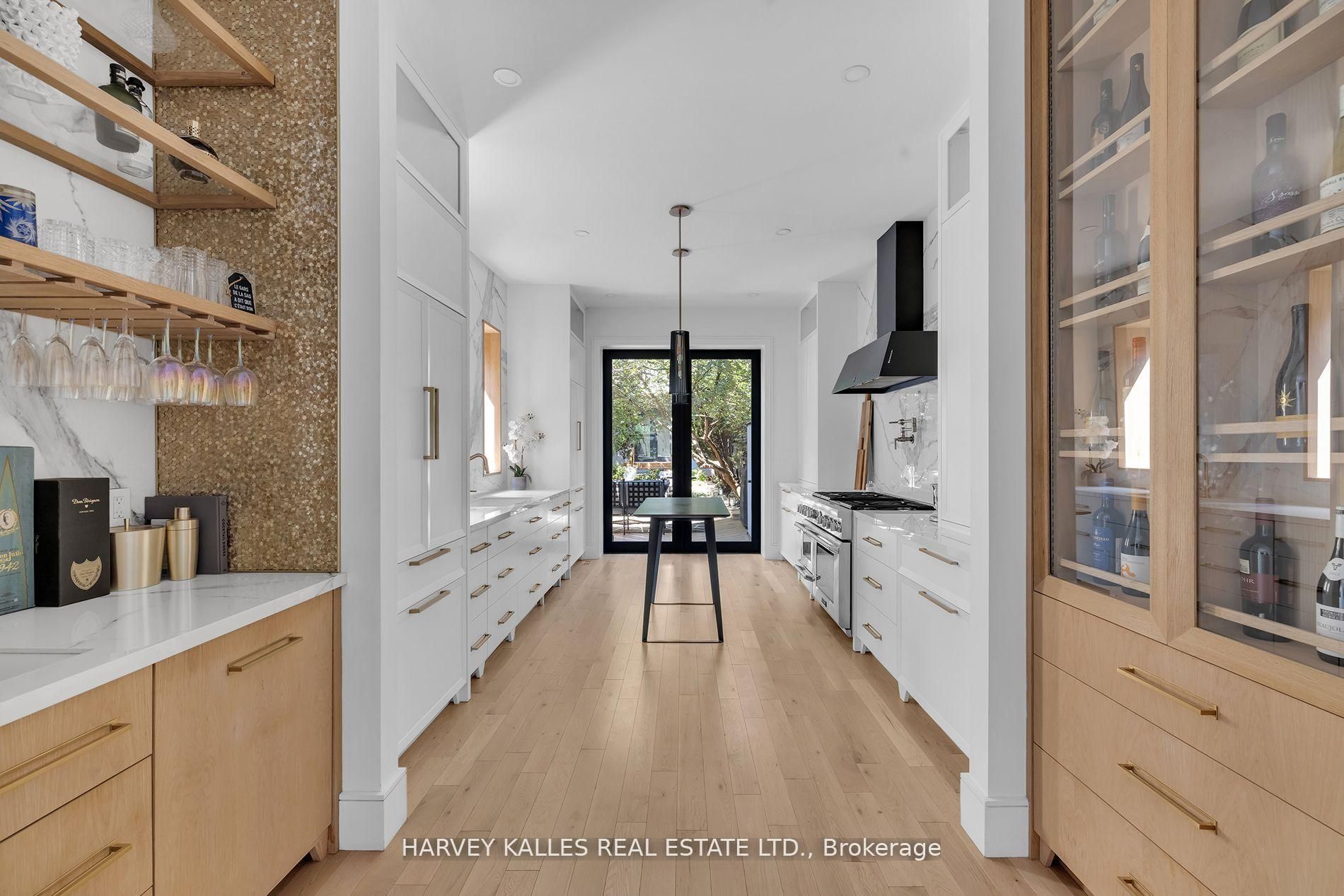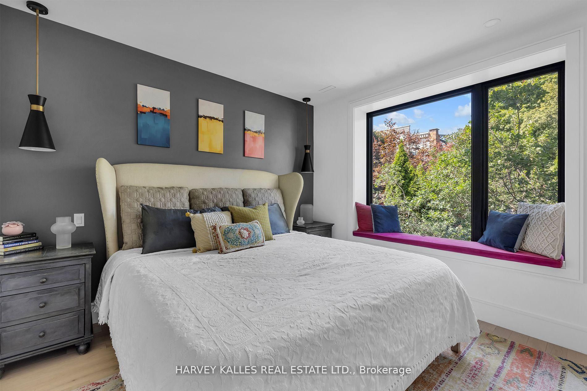 Known as one of the "painted ladies, this end-row victorian has undergone an award winning exterior restoration and its interiors brought back to the studs for a renovation to the absolute highest standard. Located on one of the best blocks in cabbagetown, this 3-storey home is complete with a highly coveted 2 car garage (with ability to add lifts) and a legal lower level apartment for additional income or extended visits. The main floor establishes a jaw-dropping first impression with its soaring ceilings, abundance of light through oversized windows and luxurious details including an 18th century reproduction marble fireplace mantle. The second floor has three generous 'king-size' bedrooms and two gorgeous designer bathrooms. The third floor is fully dedicated to the primary suite, where you are first welcomed into a light-filled bedroom, the ideal place to wake up with views of the lush green gardens and a balcony to enjoy your morning coffee. Through a pocket door you enter a dazzling and luxurious primary ensuite, with inviting heated floors and multiple oversized skylights including inside the double rainfall shower. The south side of this primary suite hosts a spectacular walk-in closet, with custom california closets, and a secondary set of laundry machines for ultimate convenience. Only minutes to the financial district, in close proximity to the best schools in the city and walking distance to riverdale park, this is the ideal urban family home.
