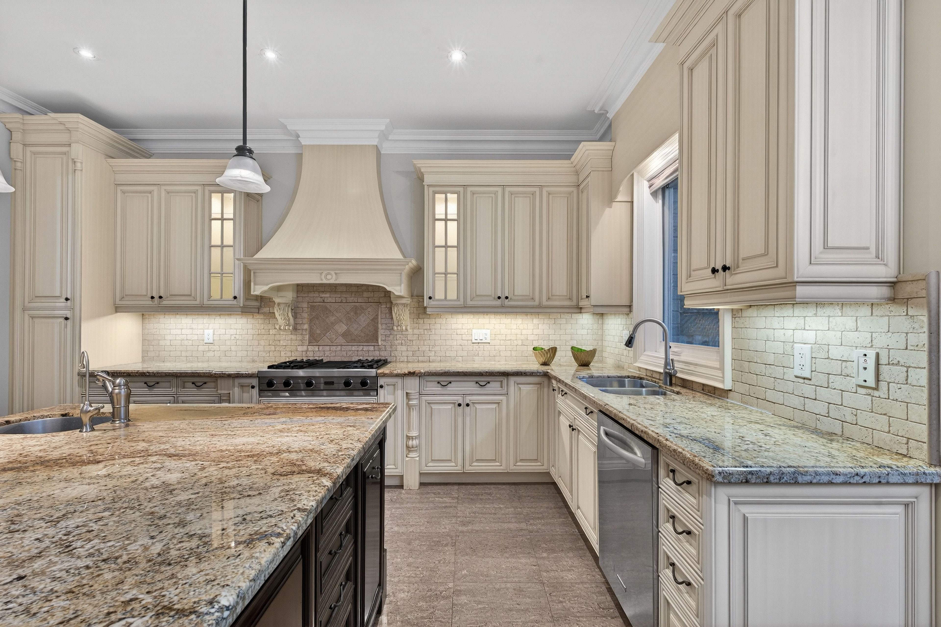 • Gourmet kitchen with granite countertops and stainless steel appliances.