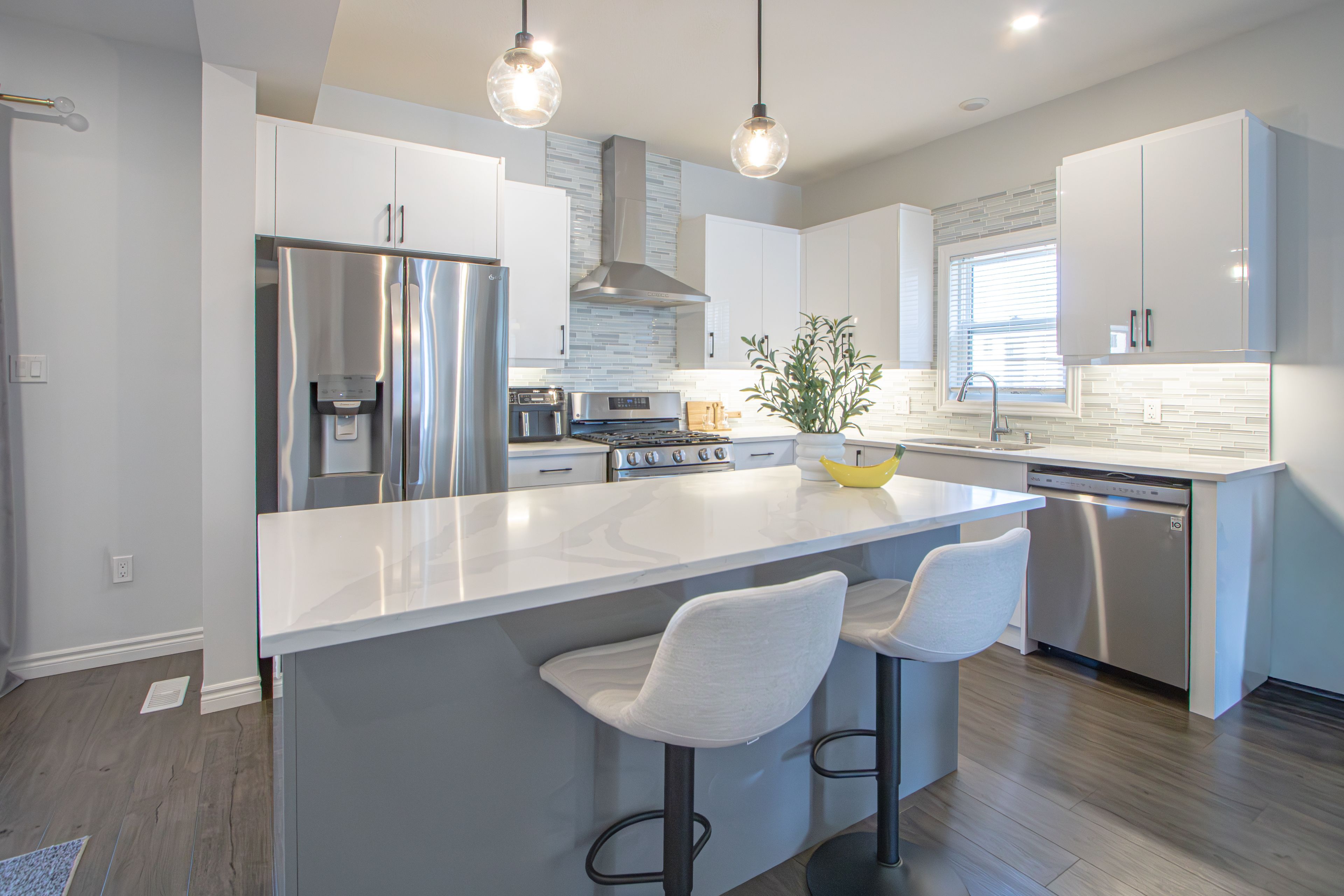 • Open concept layout with upgraded kitchen and stylish quartz countertops.