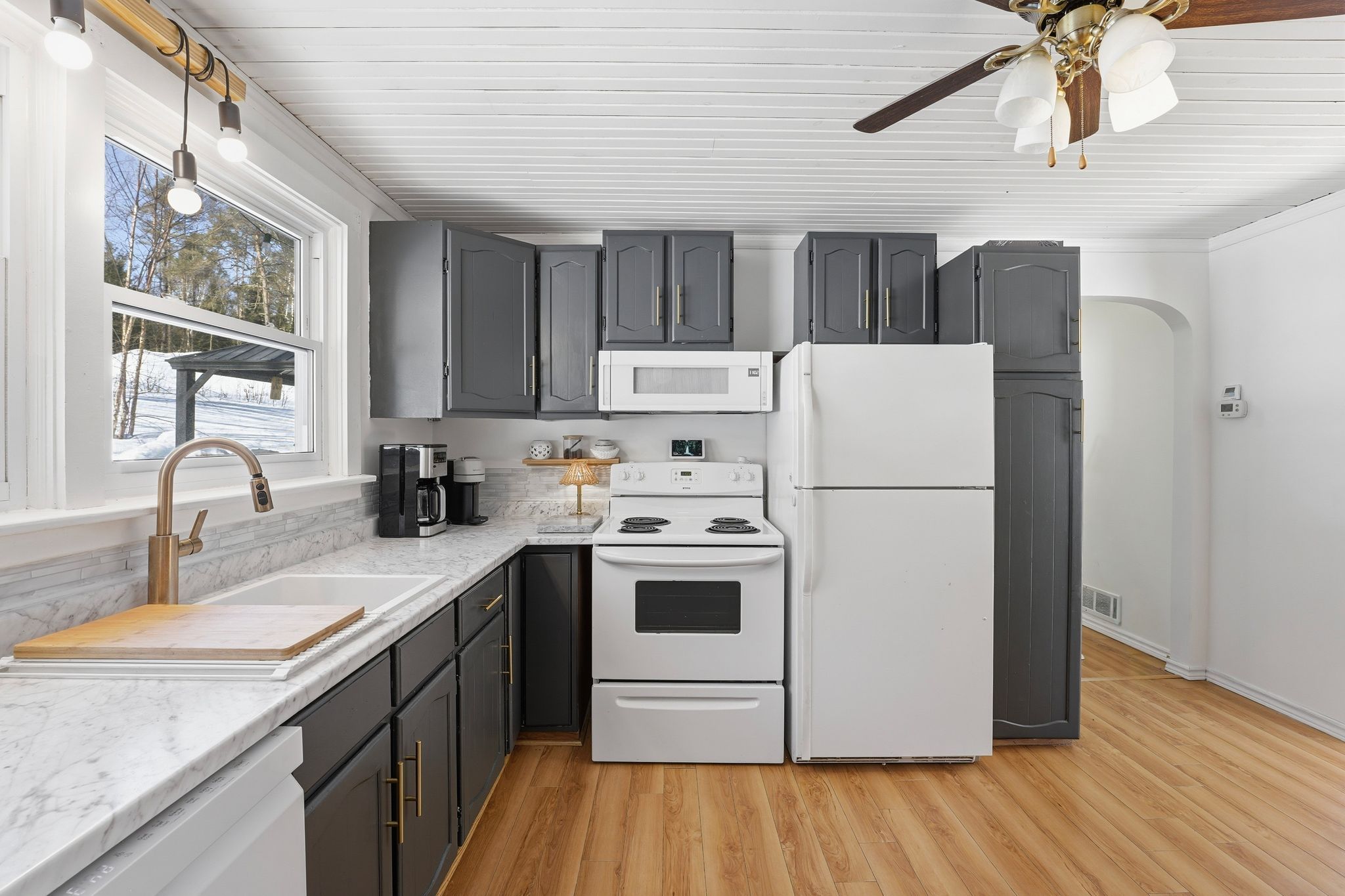 Welcome to this charming and well maintained 3 bed/1 bath bungalow set on a level 0. 69 acre lot. Offering the perfect balance of comfort, functionality, and convenience, this inviting home features a large attached breezeway and single car garage with workbench for seamless everyday living. The bright main level offers spacious kitchen, living, and dining areas ideal for family life and entertaining, as well as 3 bedrooms and a 3 pc bath with walk in shower. Downstairs, the recently updated lower level expands your living space with a large rec room with a cozy propane fireplace, utility and laundry area, plus a bonus room that could easily be converted into a fourth bedroom, office, den or hobby room. Numerous upgrades provide peace of mind, including newer roof, siding, soffit, fascia, flooring, appliances, and bathroom with heated floors for added comfort. Outdoor living is equally appealing with both front and rear decks, a fire pit area for gatherings, and plenty of open space ready for gardening, recreation, or future landscaping ideas. The paved driveway offers easy access and ample parking. Located just minutes from direct access to the ofsc snowmobile/hastings heritage trails, the shopping and services of bancroft, and beautiful l'amable lake with its public beach and boat launch. Enjoy the convenience of a school bus route, weekly garbage and recycling collection along with mail delivery at the end of the driveway. This move in ready bungalow delivers peaceful country living and a wonderful opportunity for families, downsizers, or anyone seeking a comfortable home base in a desirable area.