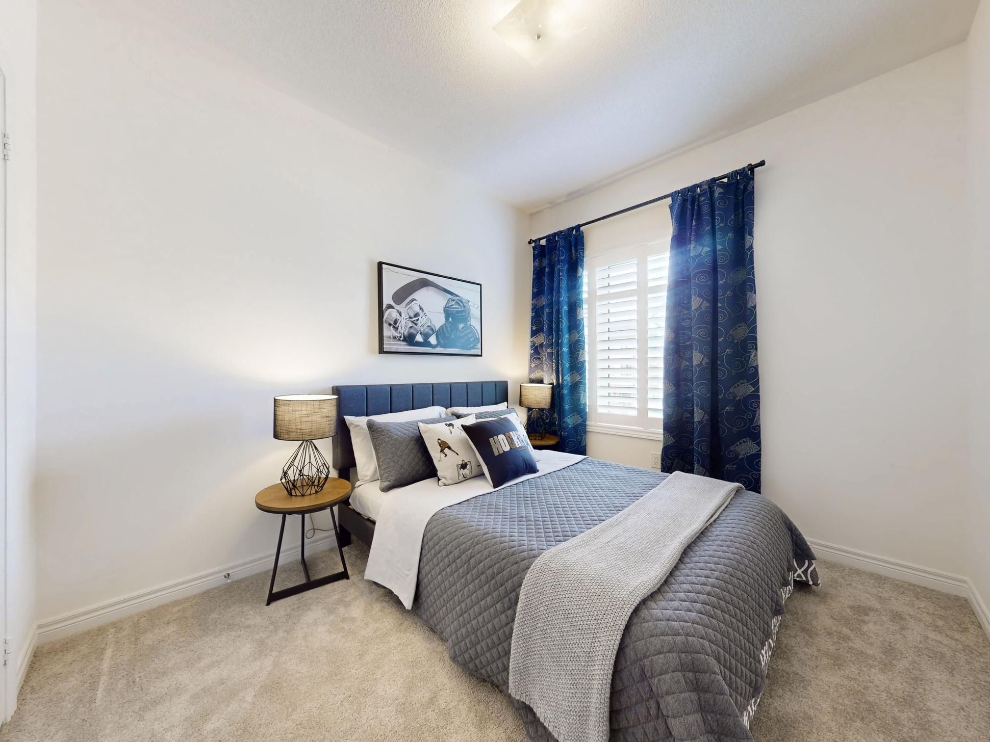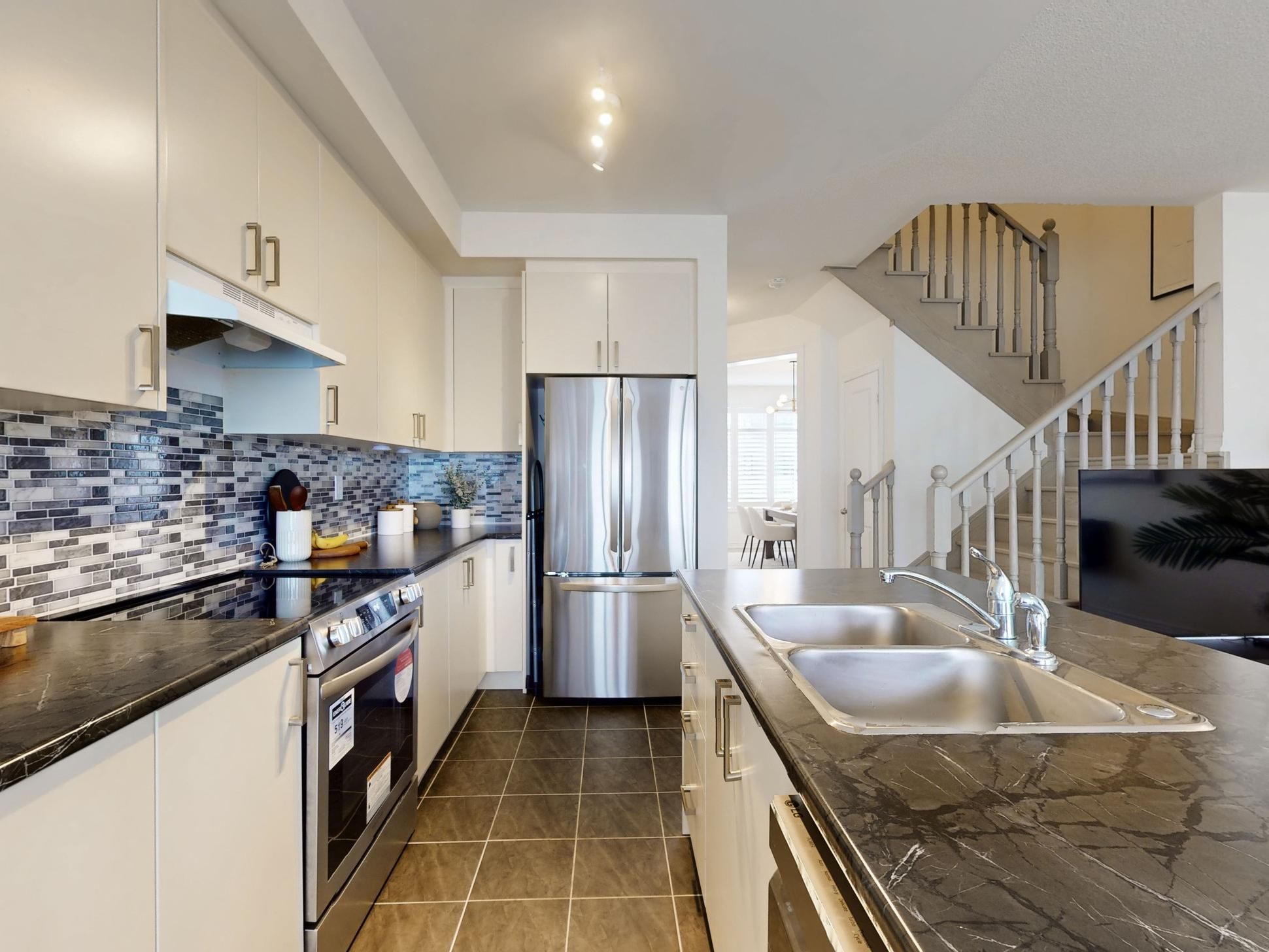 Welcome to this stunning, 2-year-new masterpiece by renowned fieldgate homes in the heart of rural pickering. Spanning 1,766 sq. Ft., this residence perfectly blends modern sophistication with everyday comfort. The open-concept layout is defined by soaring 9ft ceilings on both the main and second floors, accented by large windows and california shutters throughout that provide both elegance and privacy. The chef's kitchen is a showstopper, featuring a flush breakfast bar and a matching slab backsplash, premium stainless steel appliances, and sleek finishes. Relax in the inviting living area anchored by a hardwired-mounted electric fireplace, or ascend the elegant oak stairs to the private quarters. The primary suite is a true sanctuary, boasting a dramatic tray ceiling with a 10' raised area and a spa-like ensuite featuring a luxury free-standing bathtub. Two additional spacious bedrooms provide ample room for family or a home office. This home is packed with high-end mechanical's for year-round comfort, including a heat recovery ventilator (hrv), a furnace humidifier, and a basement dehumidifier. Parking is a breeze with a rare rear-lane double garage plus a 2-car driveway. Enjoy an unbeatable location with public transit at your doorstep, excellent local schools, and beautiful parks just moments away. This is luxury living with effortless connectivity.