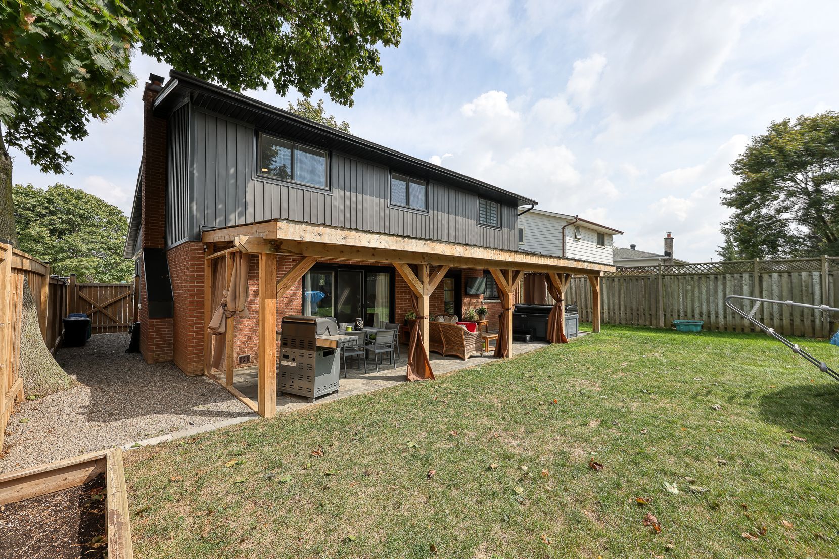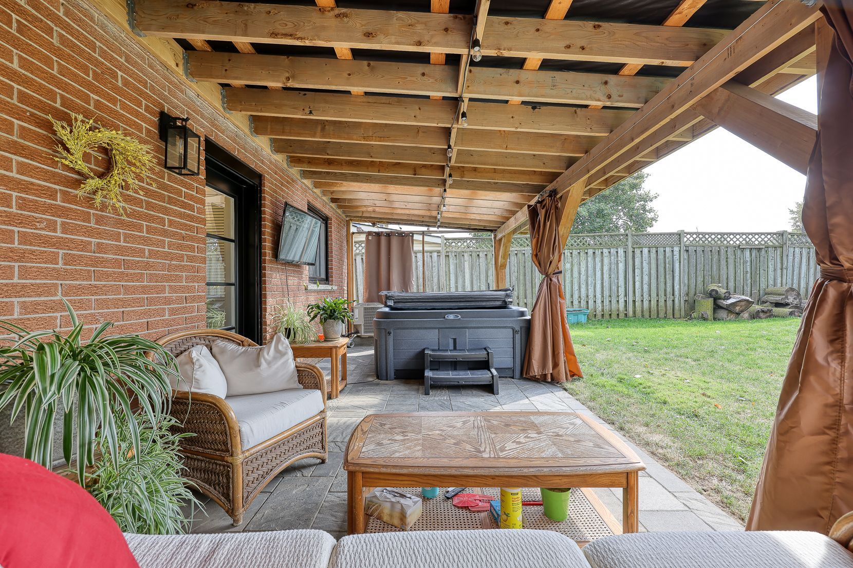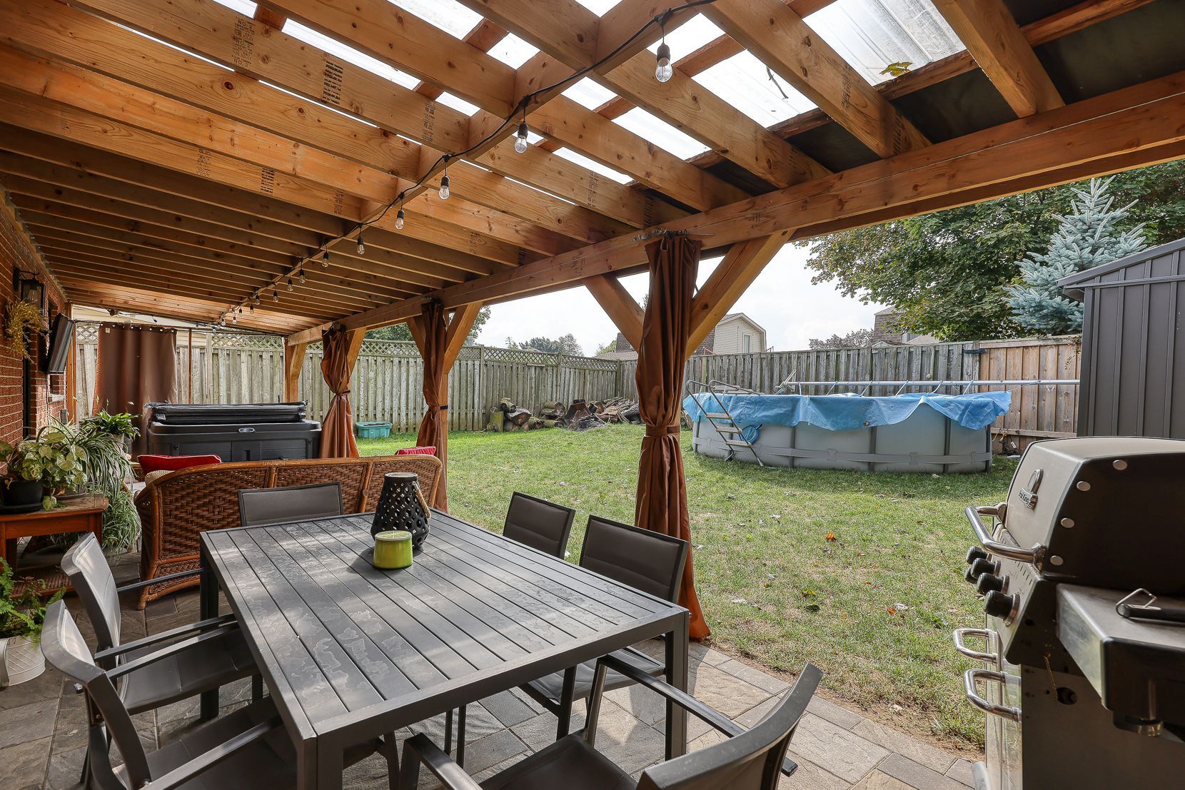 • Enjoy a large fenced yard with a gazebo, hot tub, and above-ground pool.
