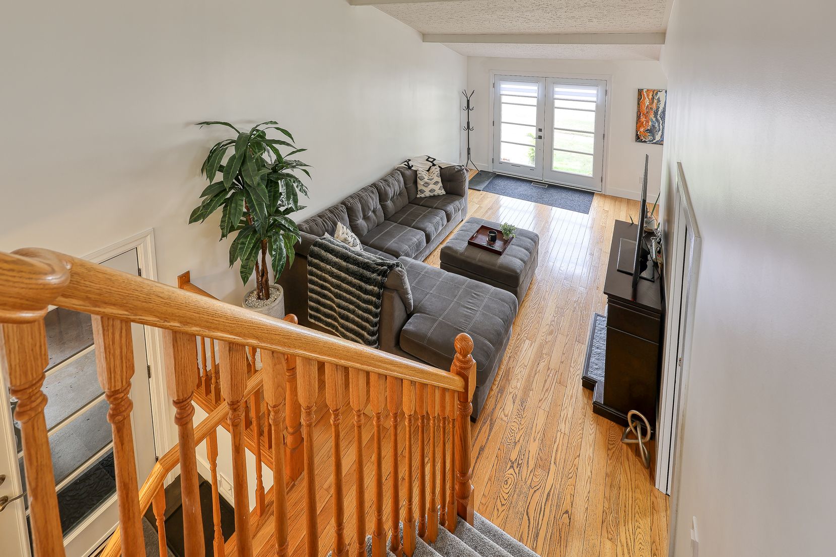 • Open concept living area features high ceilings and ample natural light.