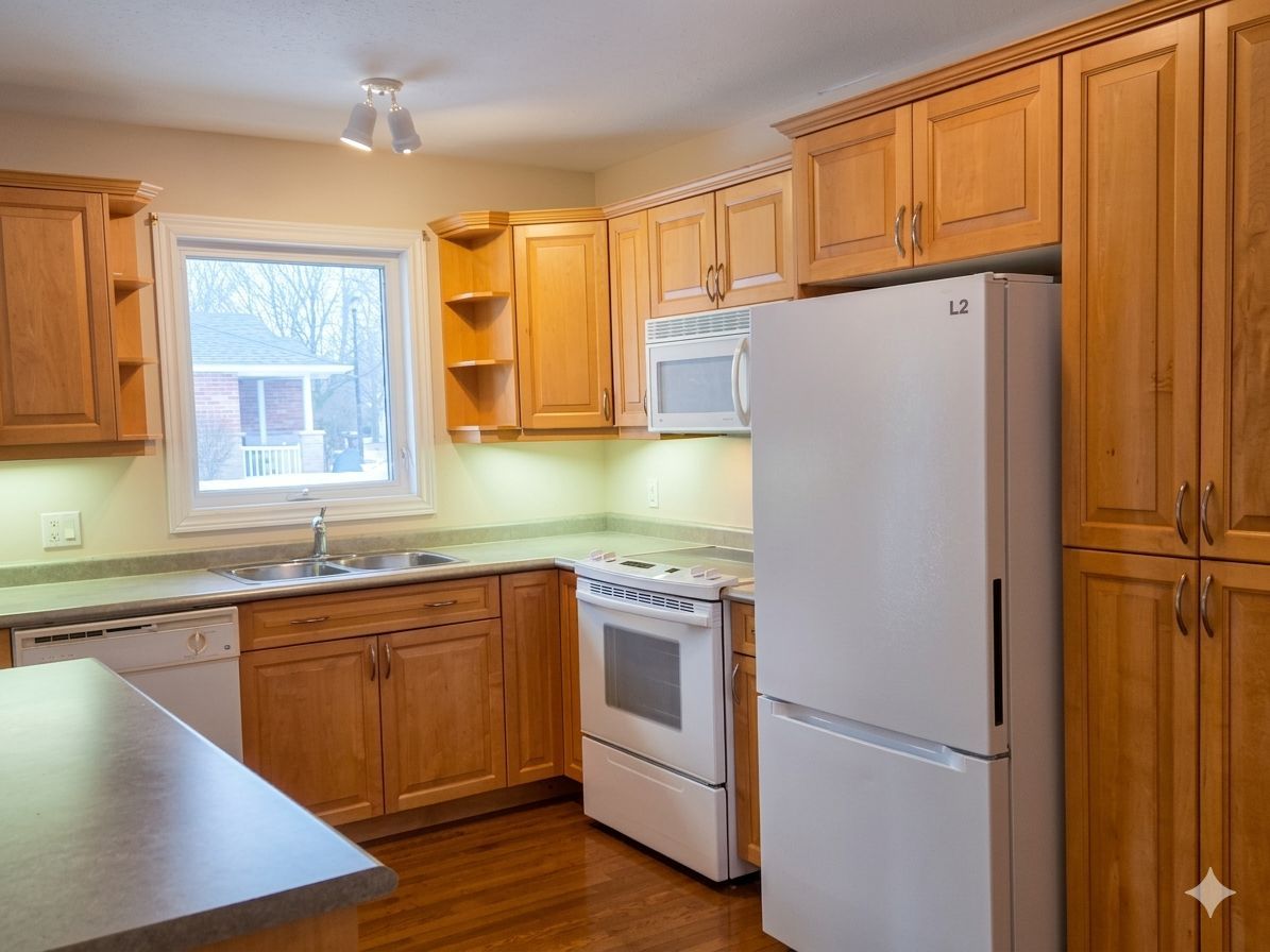Discover the charm of huron meadows, an inviting adult life lease community, offering 58 units, where every detail is designed with your comfort in mind! This bright end unit features an inviting covered front porch and attached garage with inside entry. The spacious1175 square feet layout, boasts a large primary bedroom with a generous 3 piece ensuite, with practical walk-in shower, 2nd bedroom and a 4 pc bathroom. Experience the open concept dining/living room and kitchen, illuminated by a skylight, extra side door and window at your kitchen sink! The kitchen features 4 working appliances. Enjoy your beautiful gas fireplace for added ambience! Relaxation awaits with sliding doors that lead onto a private deck with an awning for you to enjoy the warm days of summer! Privacy galore, with this end unit that backs onto greenspace. Step just across the street to discover the community clubhouse facility, featuring a hall, kitchen, meeting area, relaxing lounge with library,shuffleboard court and more! Embrace worry-free living with maintenance fees covering a range of services including , lawn care, snow removal, water/sewer, clubhouse upkeep and more. Quick closing is available!
