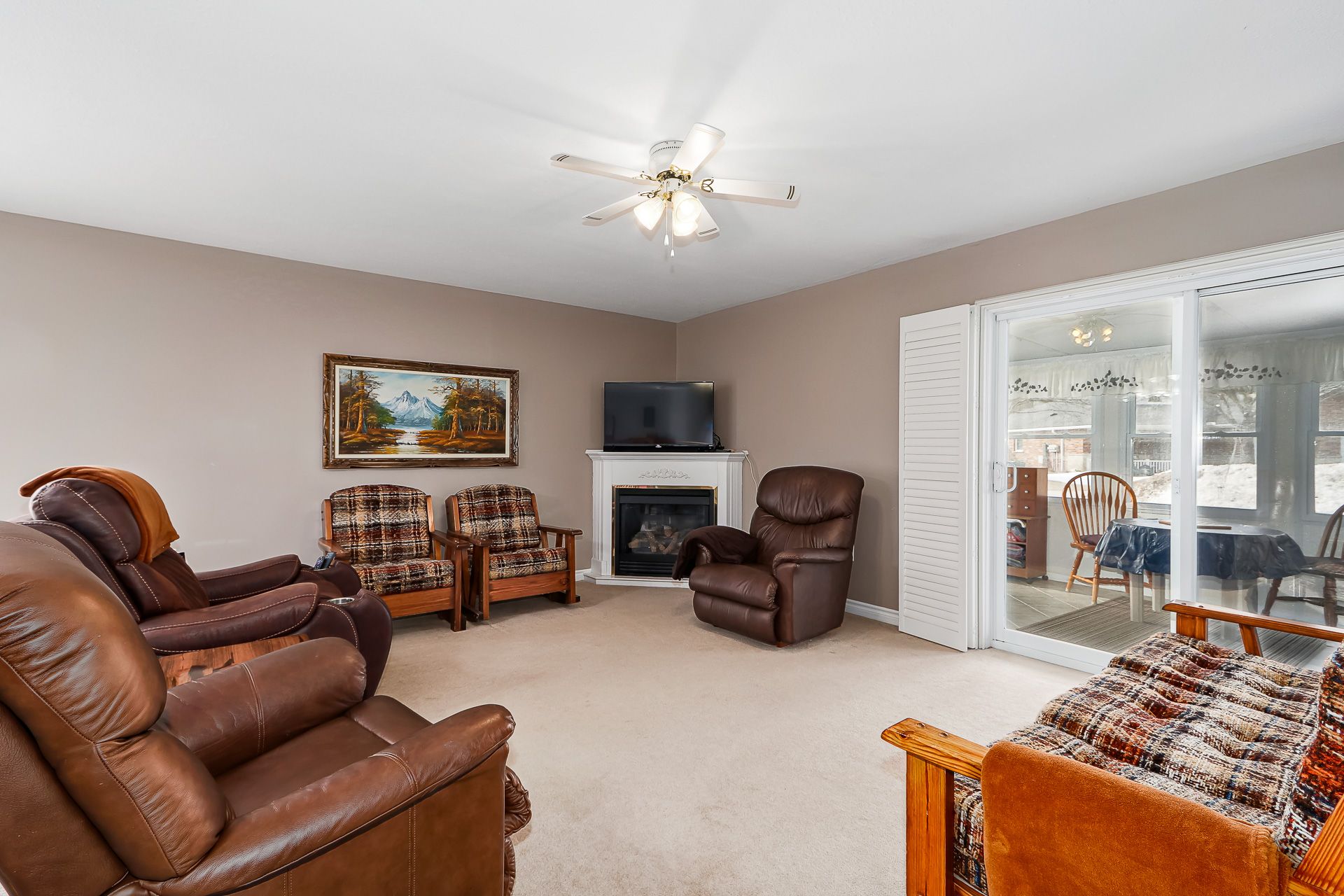 • Bright living room with a cozy gas fireplace for relaxation.