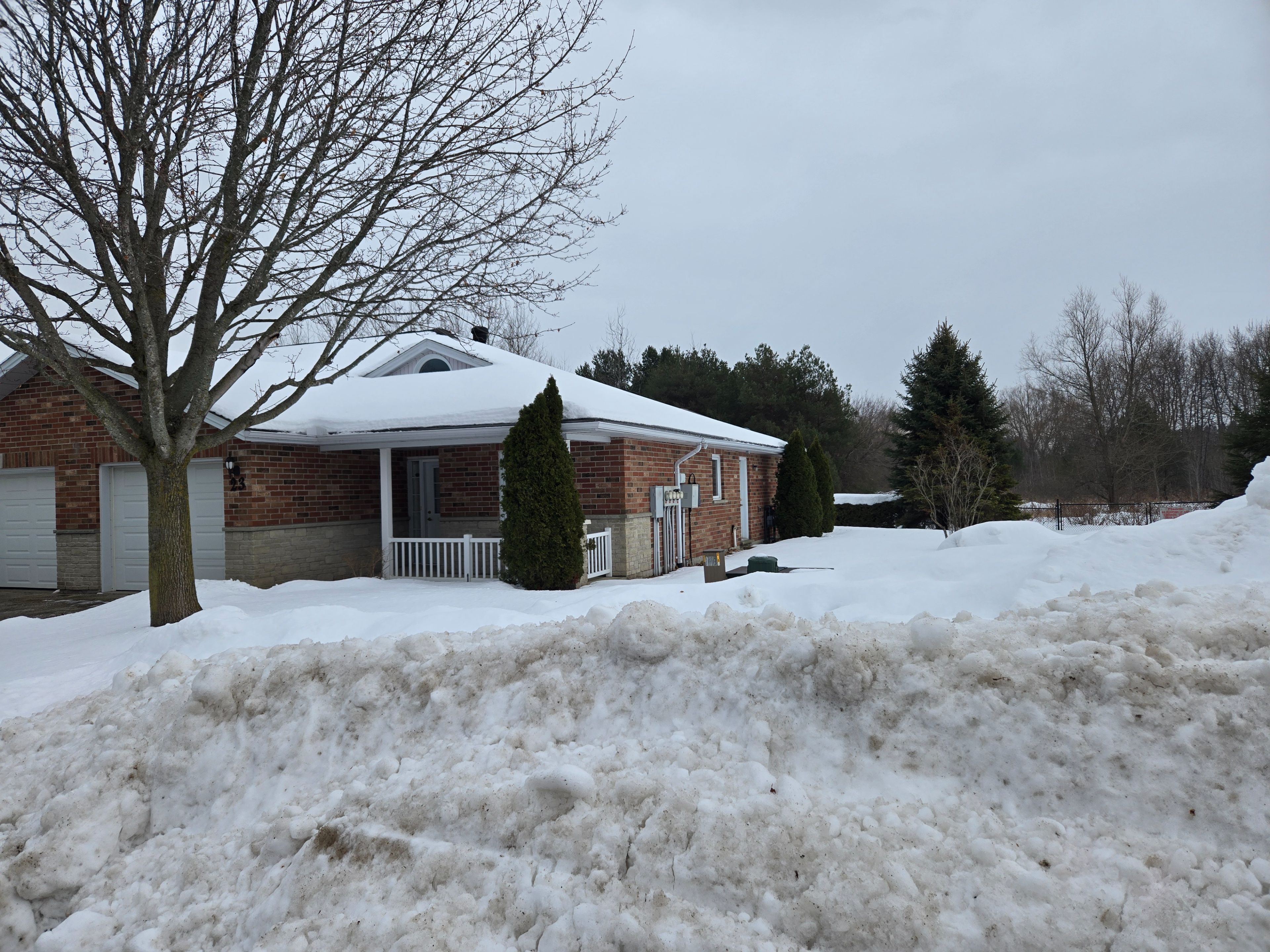 Discover the charm of huron meadows, an inviting adult life lease community nestled in stayner, offering 58 units crafted for comfortable living. Unit #23 is a bright end unit and beckons with its inviting covered front porch and spacious 1175 square feet layout, boasting 2 bedrooms and a generous 3 piece ensuite bathroom complete with a separate walk-in shower. Privacy galore, with this end unit that backs onto greenspace. Entertain effortlessly in the open concept dining/living room and kitchen, illuminated by a skylight. The kitchen features 3 working appliances plus a built in microwave. The bright kitchen with centre island with a practical built in electrical outlet opens onto the large living/ dining area with a beautiful gas fireplace for ambience! Convenience and relaxation await with patio doors that lead onto a private deck with an awning for you to enjoy the long lazy days of summer! Enjoy the ease of a single attached garage with inside entry, perfect for hassle-free grocery runs. Step just across the street to discover the community clubhouse facility, featuring a hall, kitchen, meeting area, relaxing lounge with library and a shuffleboard court. Embrace worry-free living with maintenance fees covering a range of services including , lawn care, snow removal, water/sewer, and clubhouse upkeep. Welcome home to huron meadows, where every detail is designed with your comfort in mind. Quick closing is available!