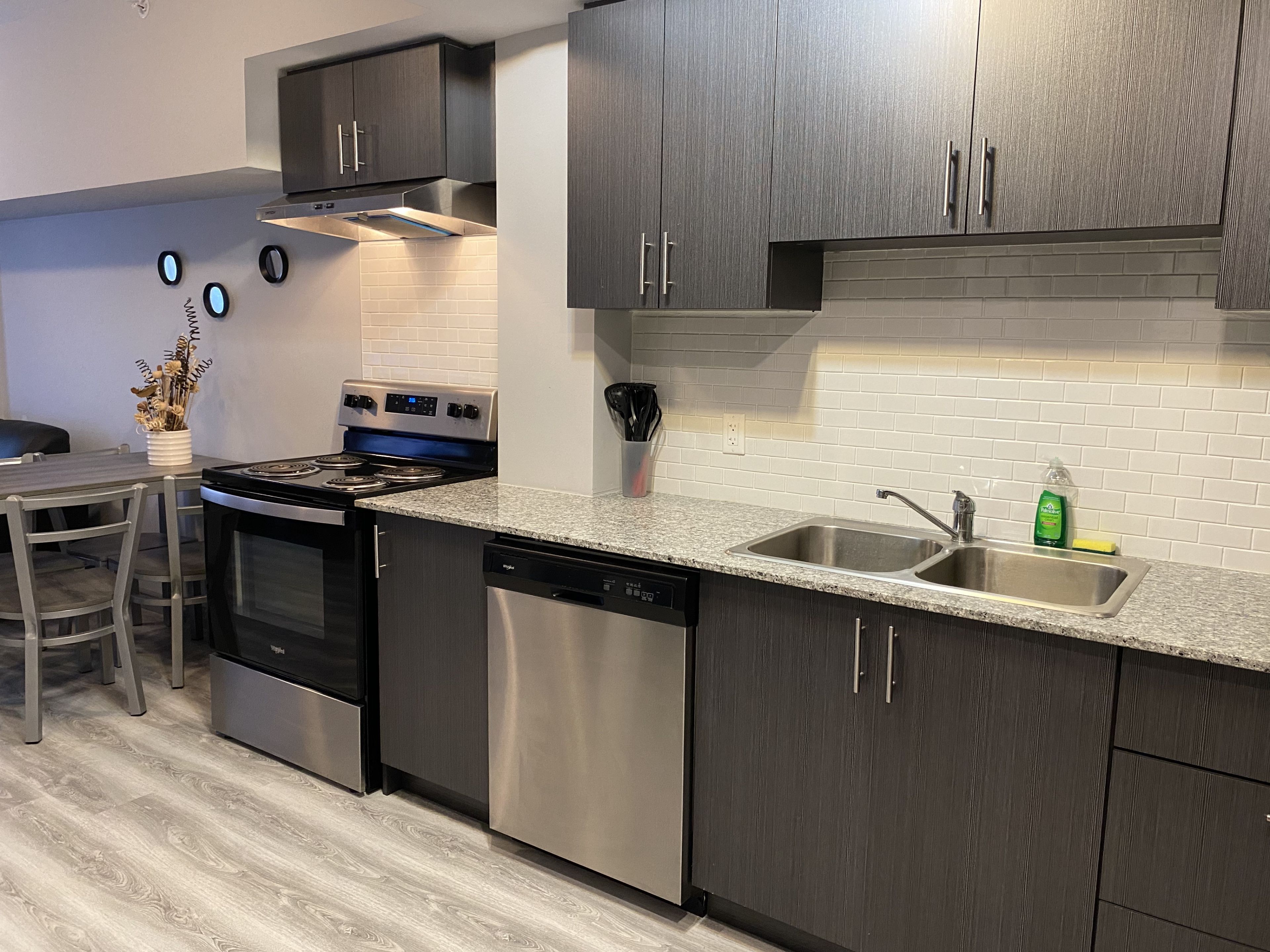 • Modern stainless steel kitchen appliances included for convenience.