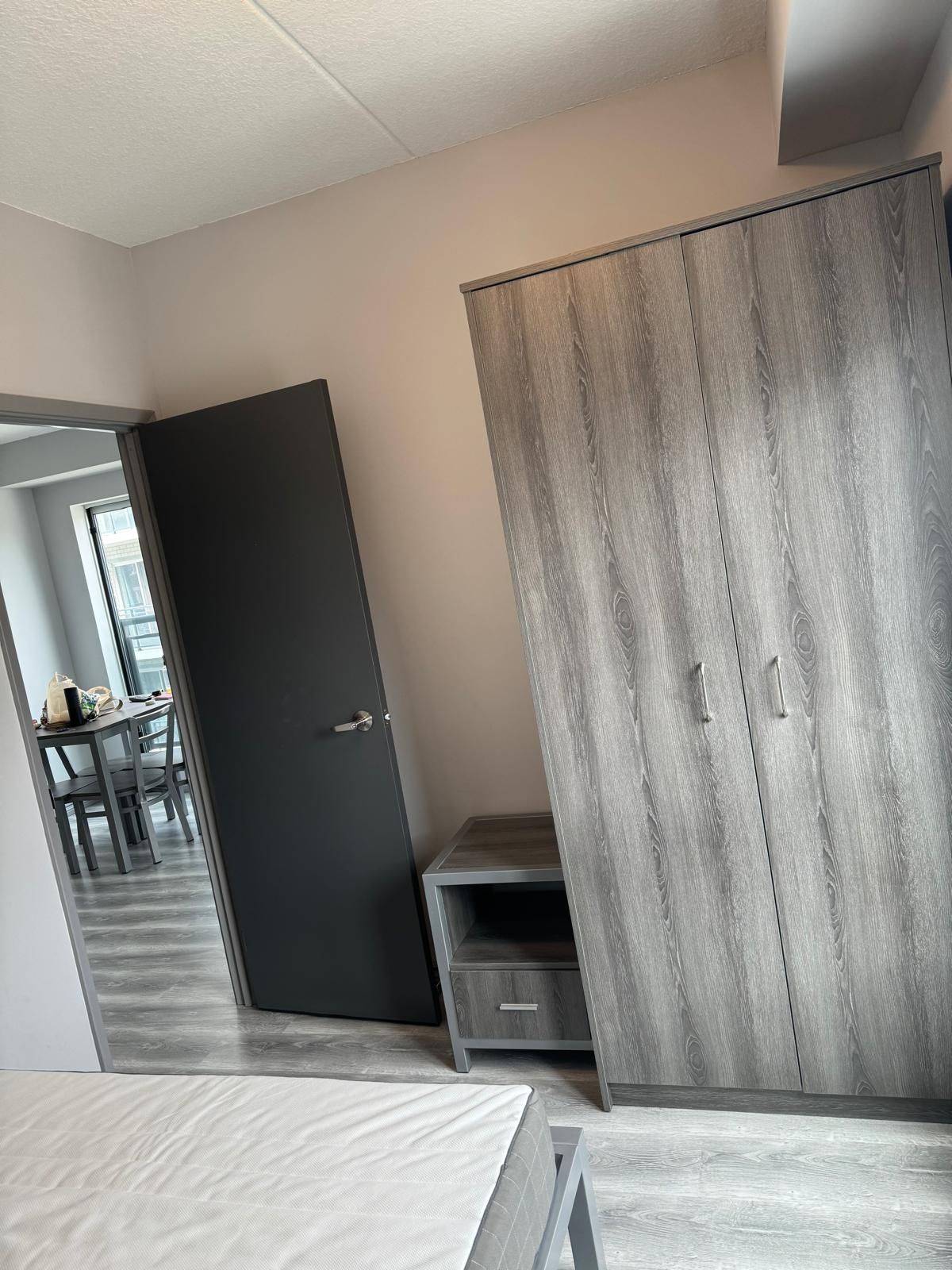 One bedroom in a two-bedroom apartment, spacious and fully furnished student/young professional condo - corner unit with plenty of light- spacious living area and dining, private bathroom, 5 appliances (fridge, stove, dishwasher, washer, dryer), fully furnished (common areas and bedrooms) couch, dining table, chairs, bed/mattress, desk & chair, plenty of natural light throughout, walking distance to conestoga, laurier, and university of waterloo. Tenant to pay hydro and internet. Short term until aug 30, 2026