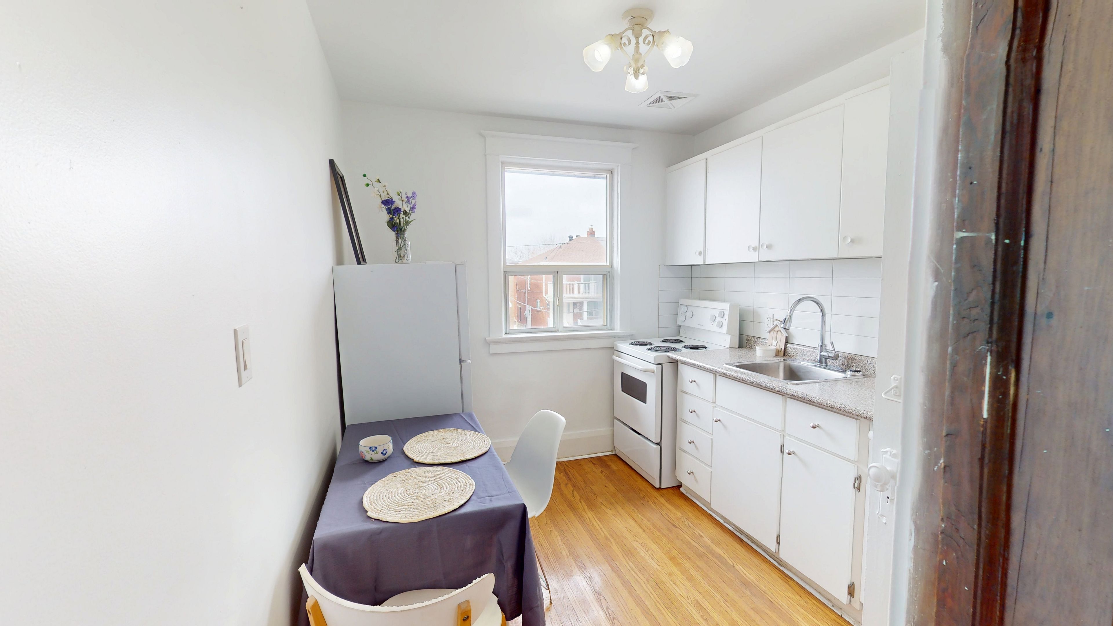Bright and spacious one-bedroom upper-level apartment, ideally located in a residential neighbourhood near oakwood ave & st. Clair ave w. This charming unit is filled with natural light and features beautiful wood accents that preserve its traditional hardwood character while offering a clean, modern appeal. The living area provides a comfortable and inviting space, complemented by air conditioning for year-round comfort. The well-designed layout offers both functionality and warmth. The unit includes a newly renovated bathroom. The blend of classic details and updated finishes creates a welcoming and timeless living environment. Enjoy the convenience of being just a short walk to ttc transit, including the new line 5 eglington lrt, as well as a variety of restaurants, cafés, schools, and everyday amenities along st. Clair west. Residents also have access to a shared backyard-perfect for relaxing outdoors-and coin-operated laundry facilities conveniently located on-site. Experience comfortable city living in a well-connected and desirable neighbourhood. Inclusive of all utilities. Don't miss out on this unit, is move-in ready, and won't last!