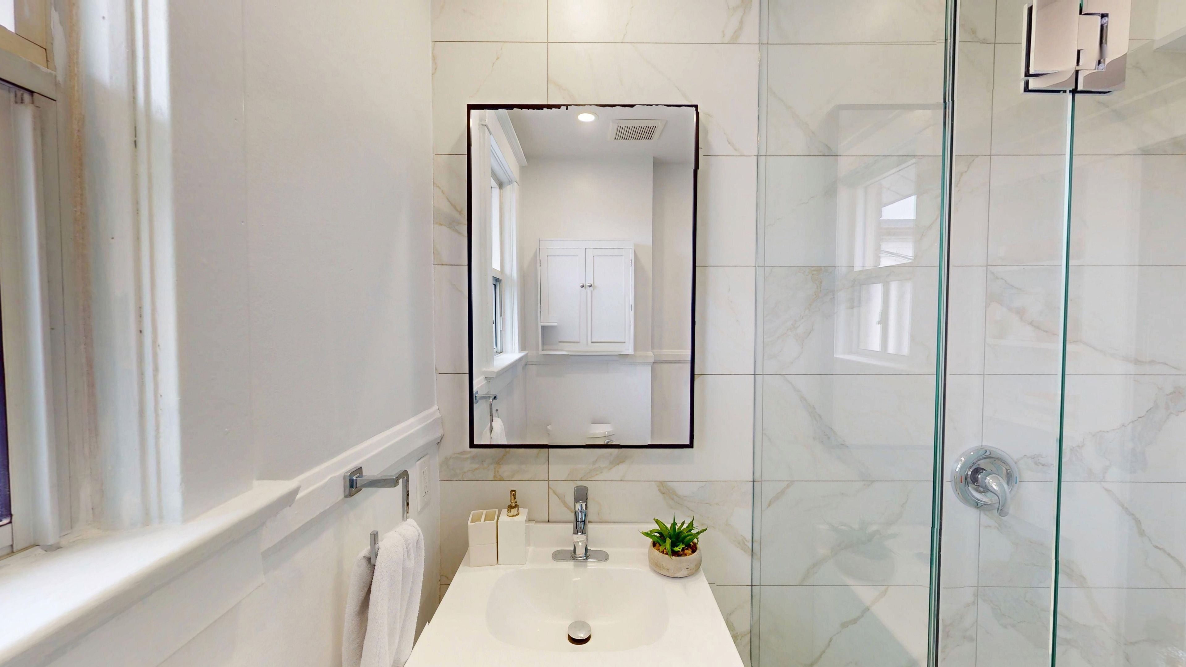 • Newly renovated bathroom adds modern convenience.