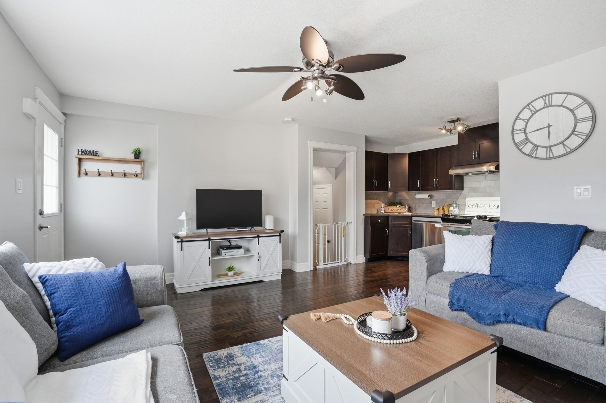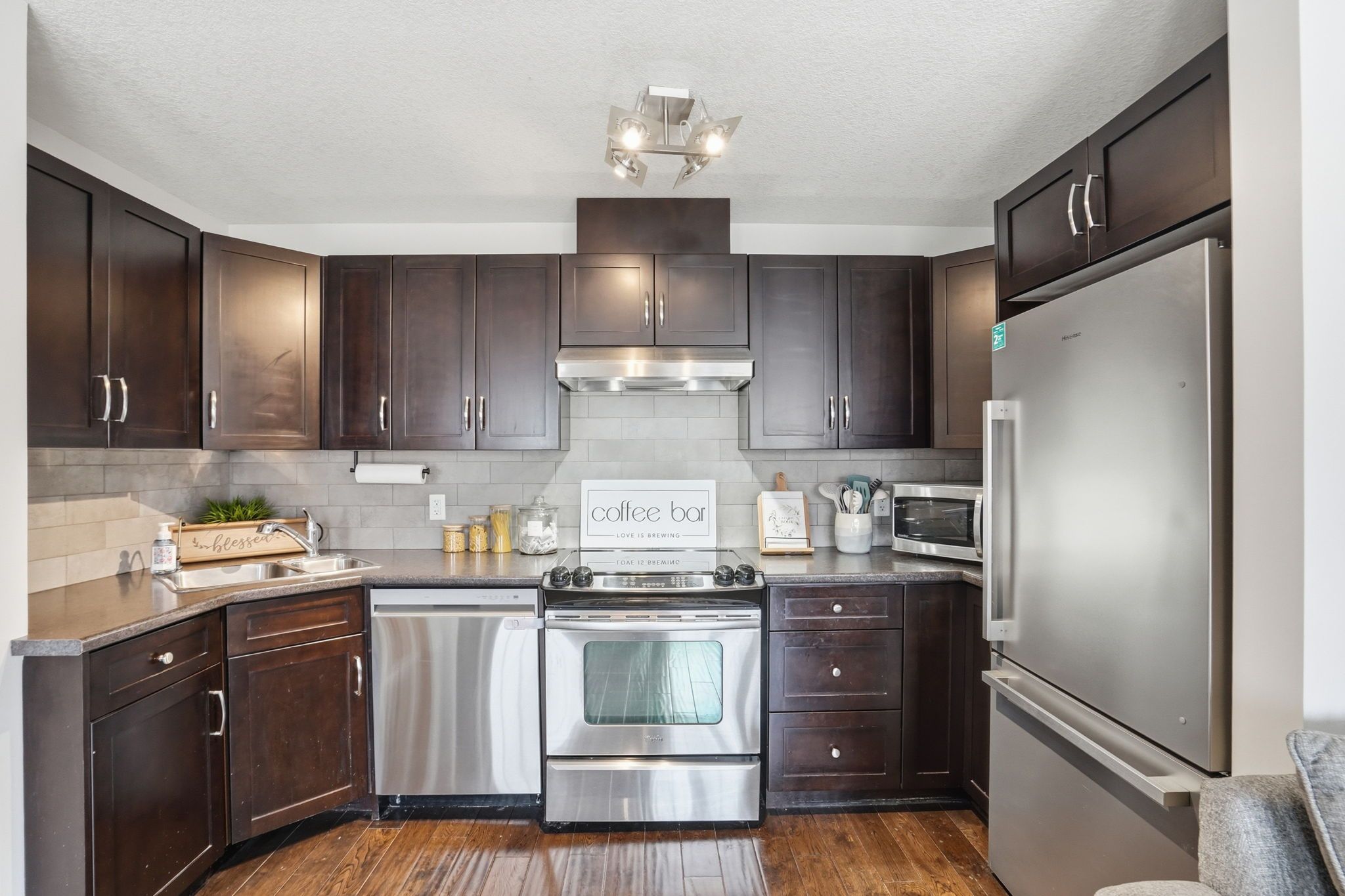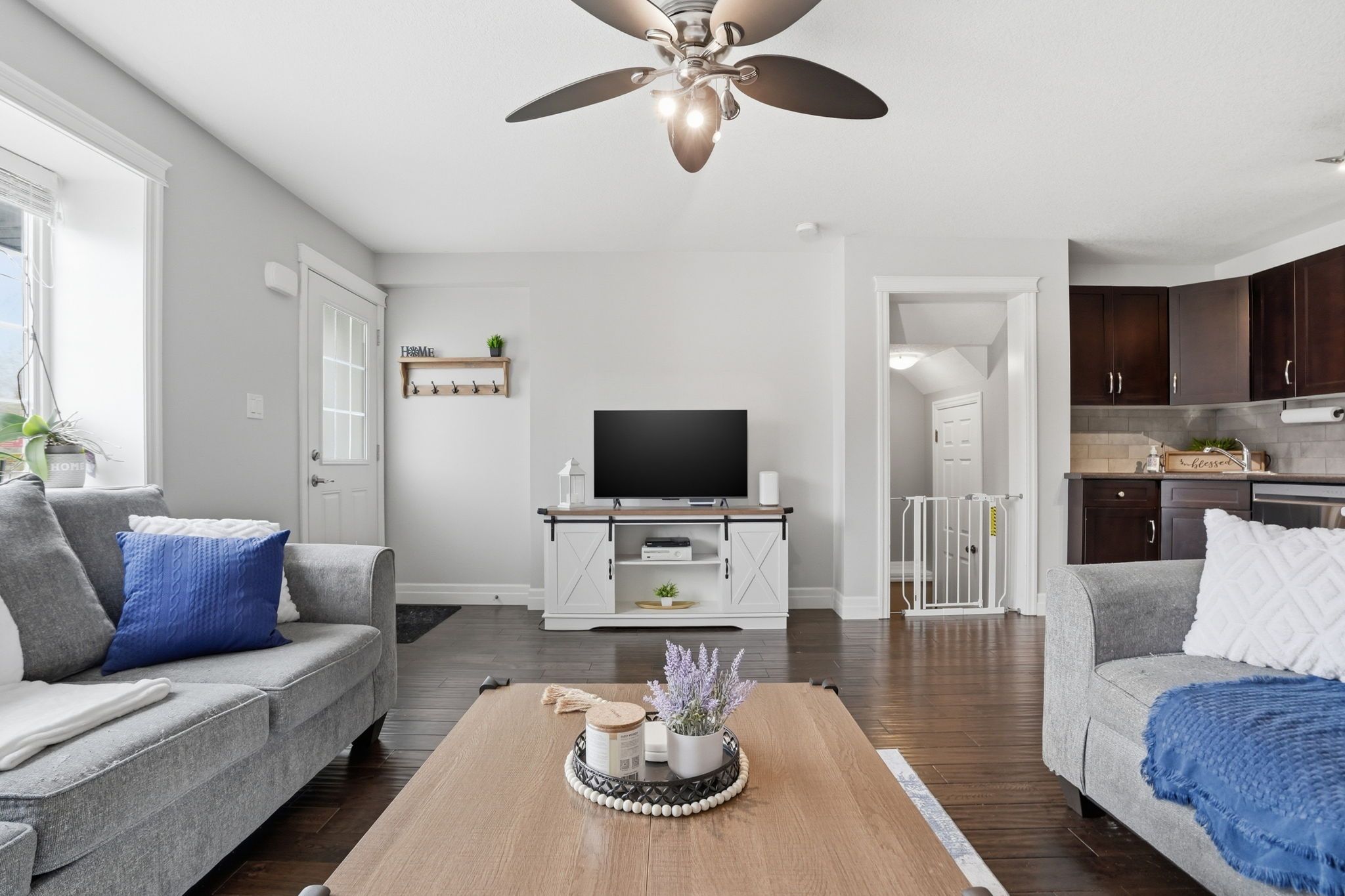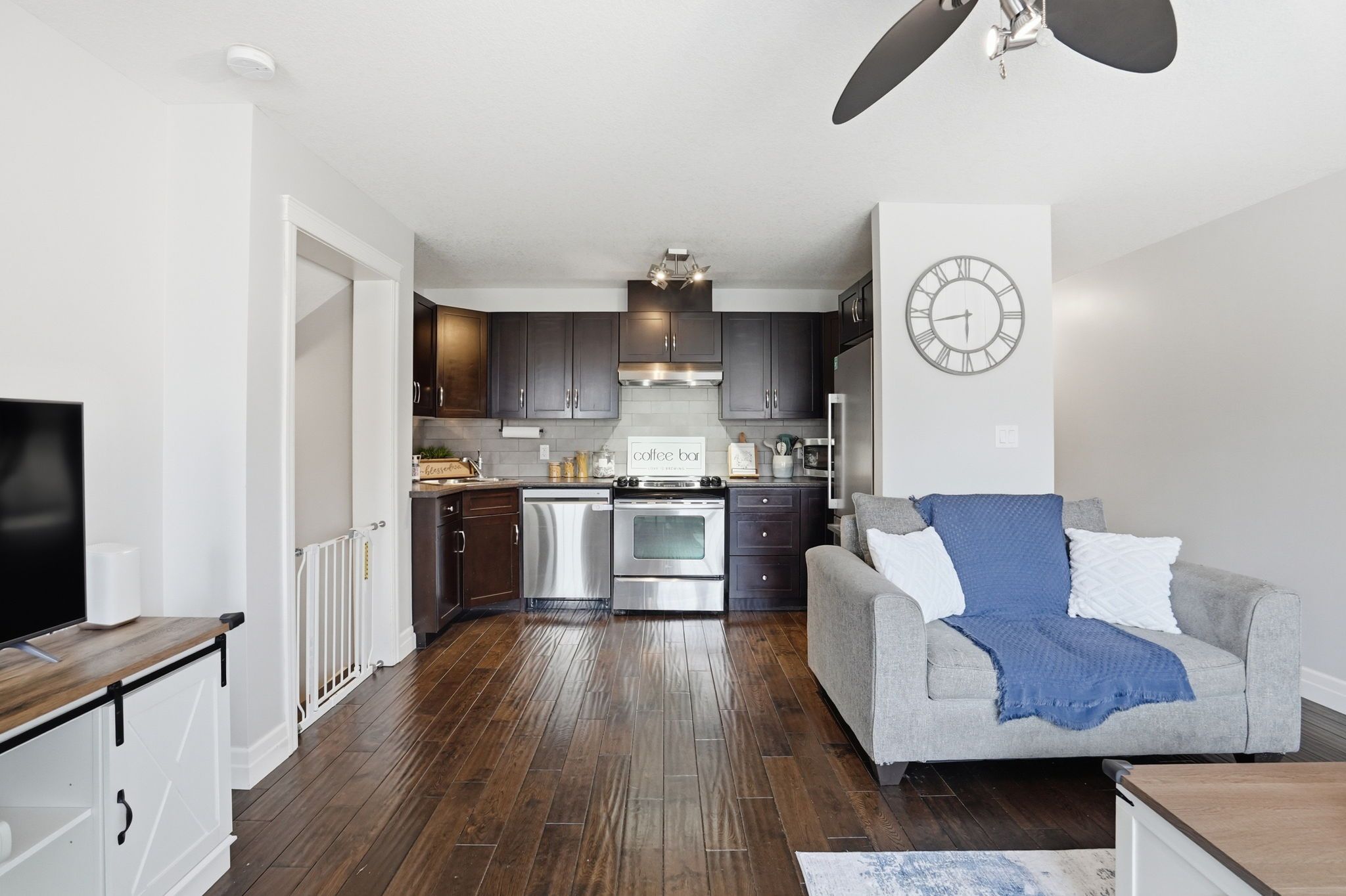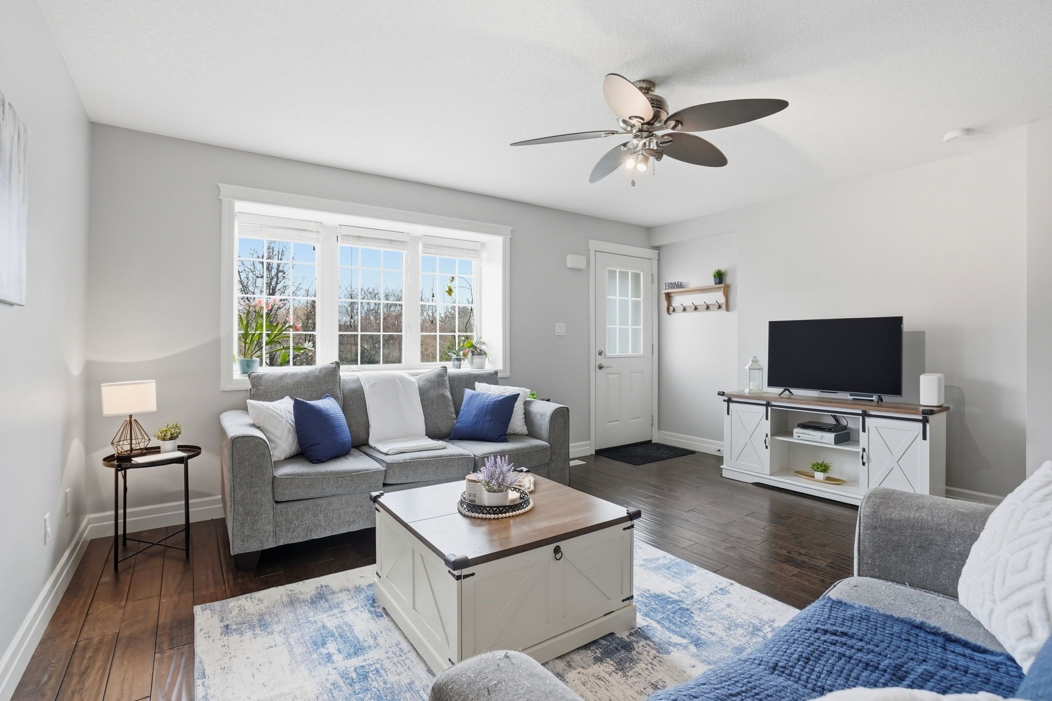 Welcome to 275 old huron rd #16. Discover comfortable, low-maintenance living in this beautiful 1+1 bedroom, 2-bathroom condo townhome with garage in kitchener's desirable huron park community. Perfectly situated for commuters, this home offers quick and convenient access to highway 401, making daily travel simple and efficient. The bright and spacious main level offers an open-concept layout that seamlessly connects the living room and eat in kitchen, boasting dark wood flooring and a picturesque window. This level also includes a half bathroom and direct access to your own private garage. The generously sized primary bedroom features a private ensuite bath and a large walk-in closet, providing both comfort and functionality. You'll also enjoy the recently finished den space, perfect for a home office or child's bedroom. Finished with stylish modern touches throughout, this home is a fantastic opportunity to enter the market.