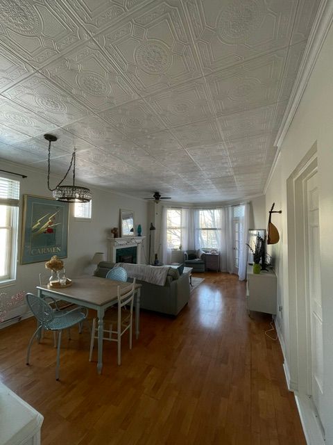 Step into timeless character and modern comfort in this adorable yet surprisingly spacious2-bedroom, 1-bathroom apartment nestled within a stunning heritage building. Brimming with beauty and charm, this home offers the perfect blend of historic elegance and thoughtful updates. Enjoy warm afternoon sunlight streaming through large west-facing windows, creating a bright and inviting living space throughout the day. The private courtyard provides a peaceful outdoor retreat perfect for morning coffee, evening relaxation, or entertaining guests. Inside, you'll find generous room sizes, classic architectural details, and tasteful updates that make everyday living effortless. The home features lifetime warranty windows, a brand-new furnace and air conditioning system installed last year, as well as a new washer and dryer(2025). The kitchen is equipped with a new stove (2023), blending modern convenience with timeless style. Additional highlights include dedicated parking and ample storage, making this charming residence as practical as it is beautiful. Don't miss the opportunity to own a truly special home full of warmth, character, and lasting value.