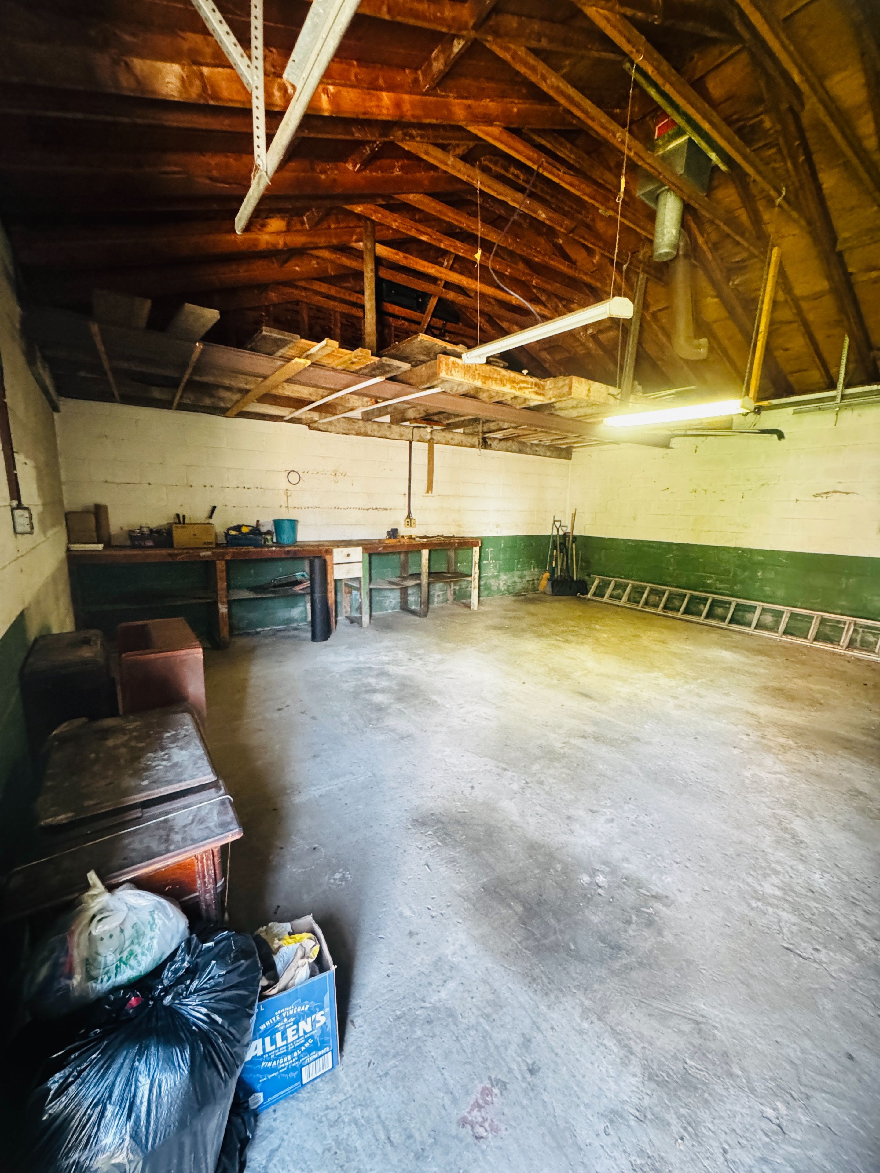 2 car garage at back. Right of way shared by 3 properties. 2nd floor tenanted. Showing for ground floor and basement which is vacant for now. Property sold in "as is" condition. Buyer take over 2 tenants on 2nd floor.